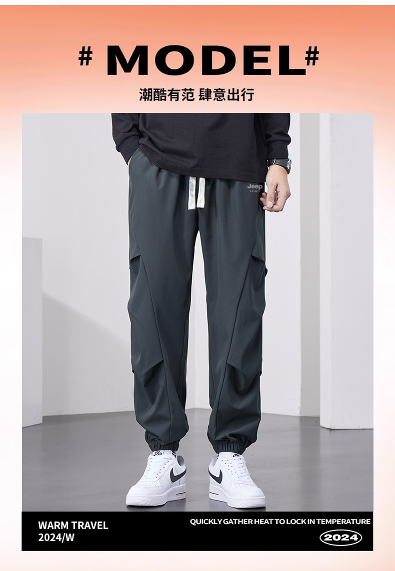 Jeep Pants Men's Outdoor Pants 2025 New Autumn and Winter Loose Jogger Cargo Pants Fleece-Lined Sports Casual Pants