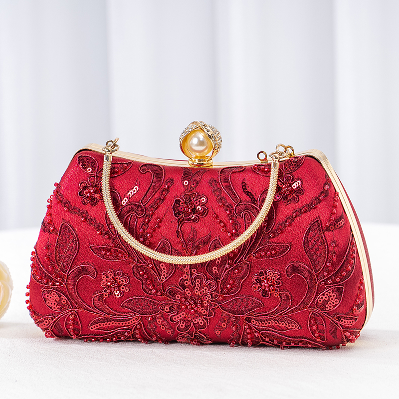 Mother-In-Law's Wedding Banquet Clutch Evening Bag Cheongsam Bag New Chinese Style Mother-In-Law's Clutch Bag Beaded Embroidery Banquet Bag Hand-Held