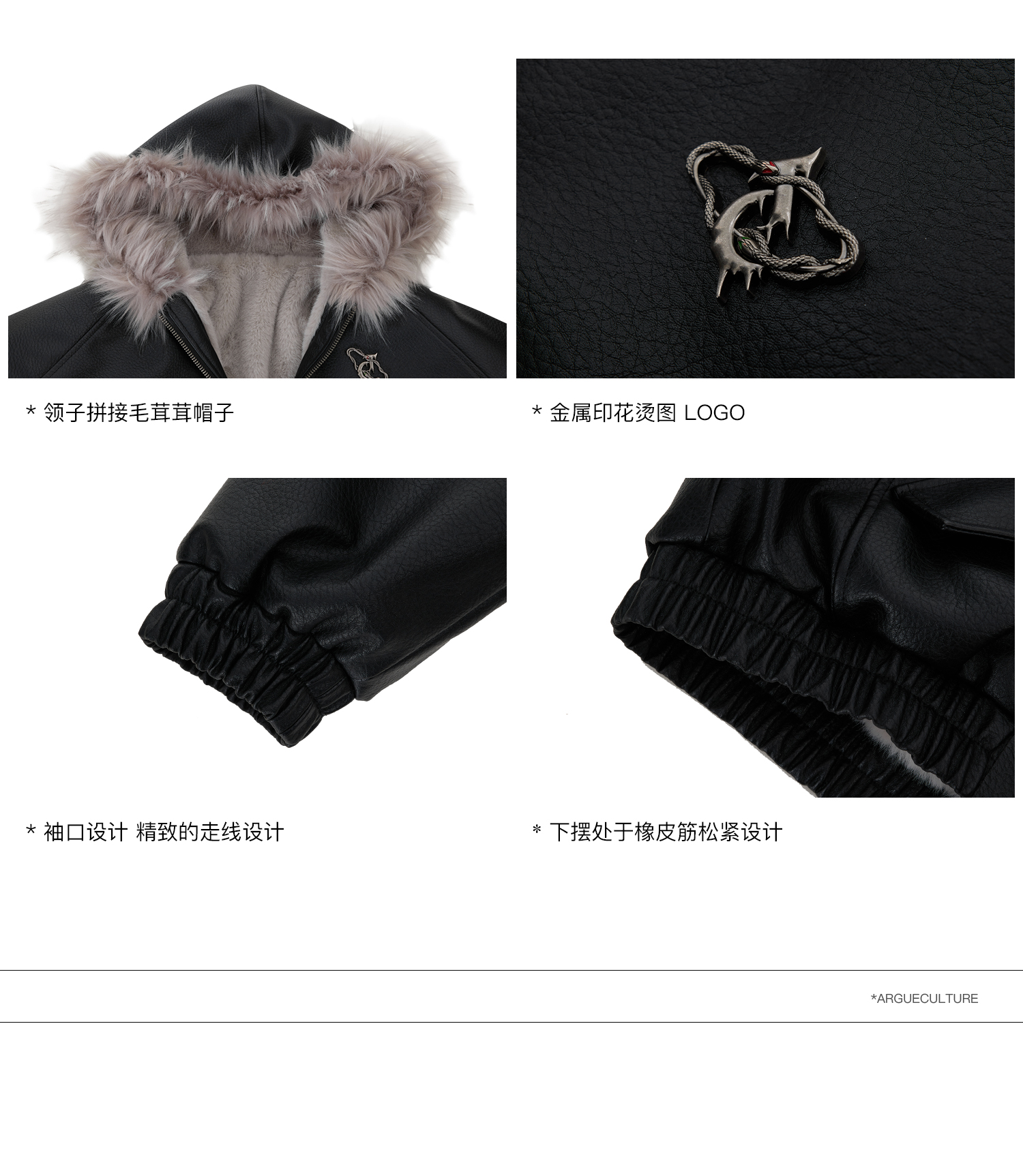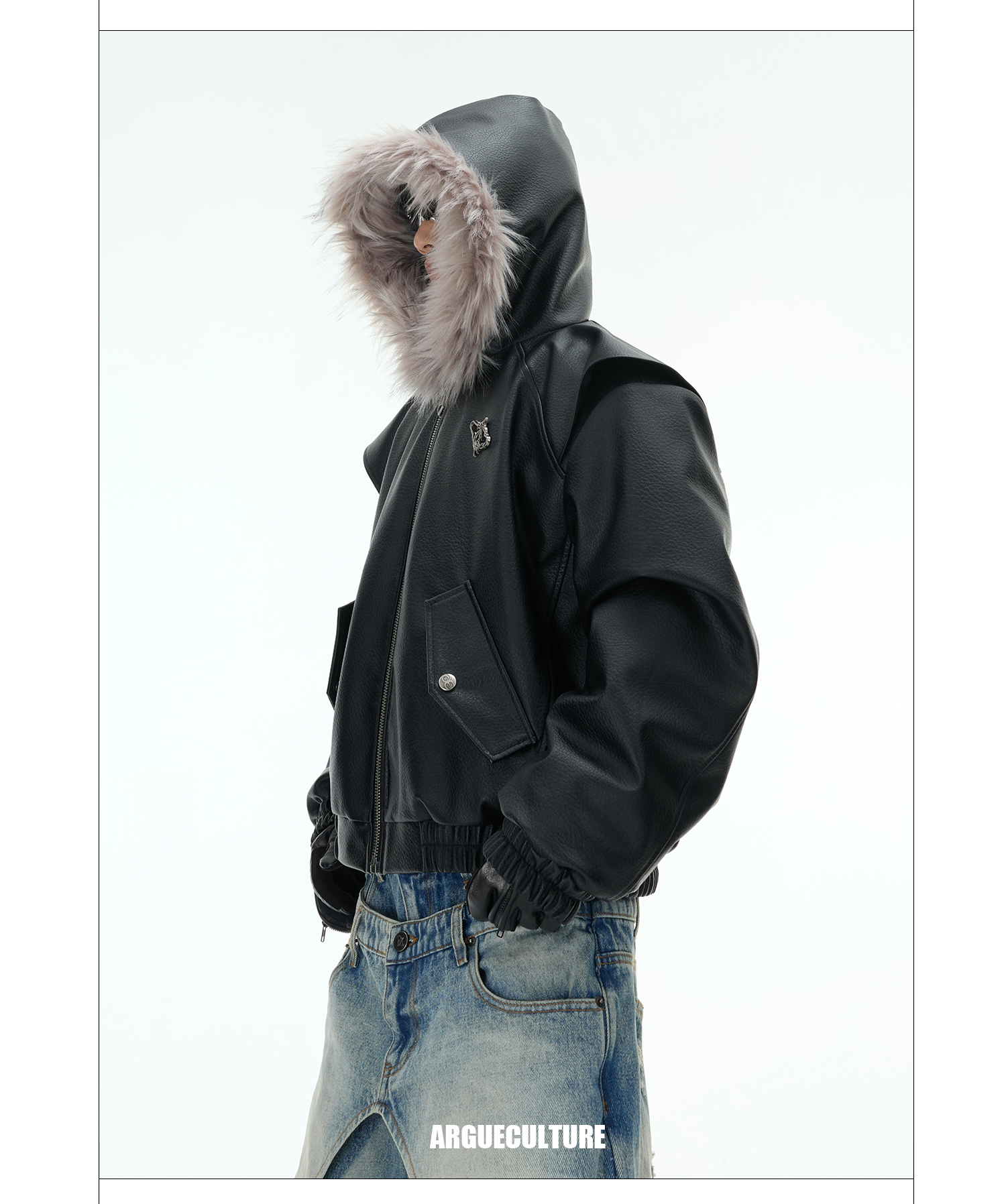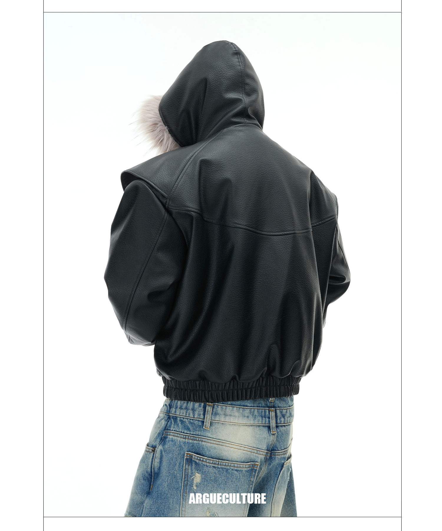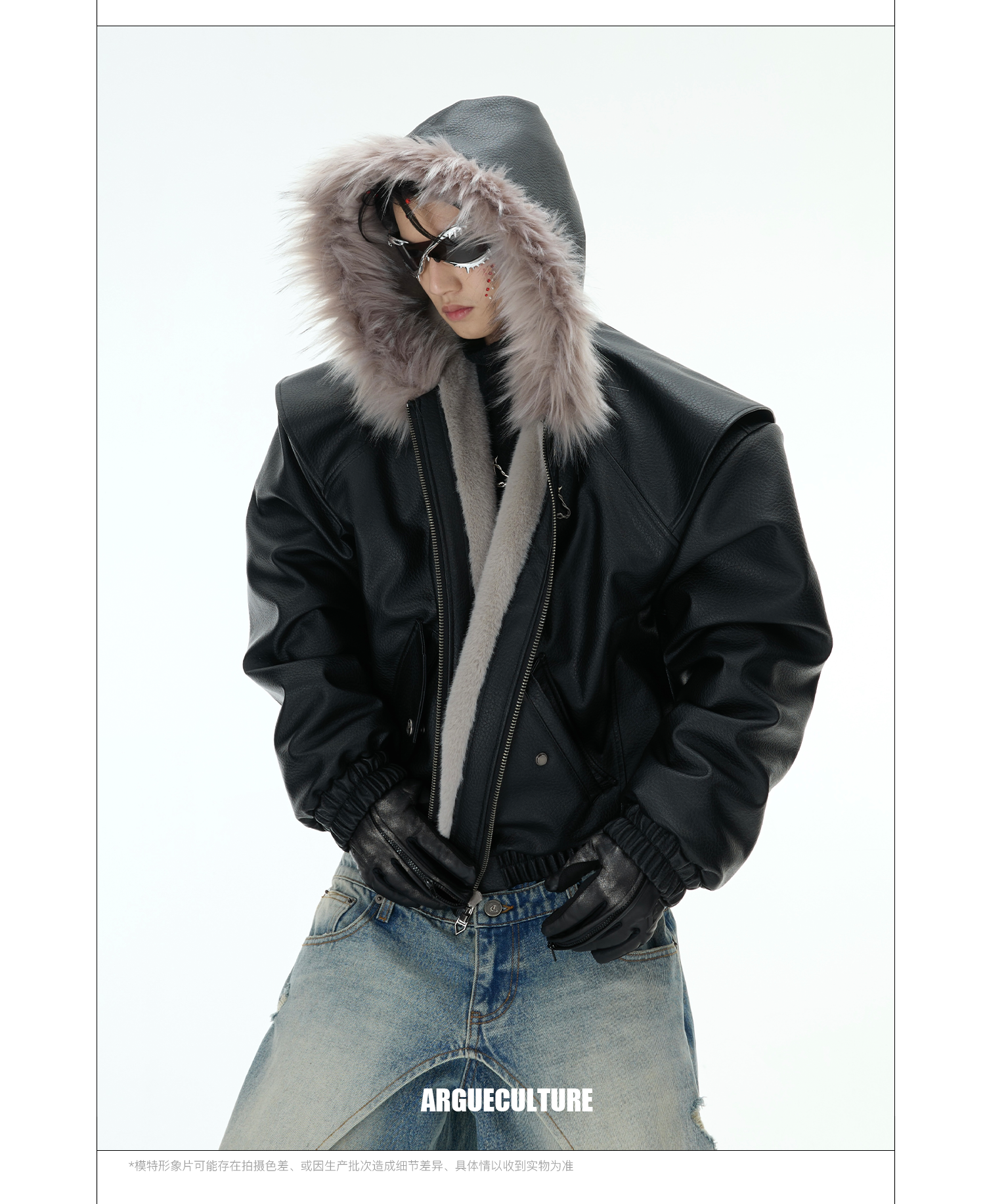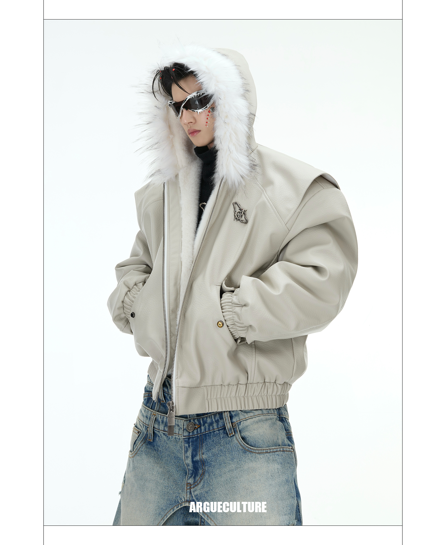Argue Culture Niche Fur Collar Double-Sided Thickened Jacket Pu Leather Hooded Cotton Jacket for Men