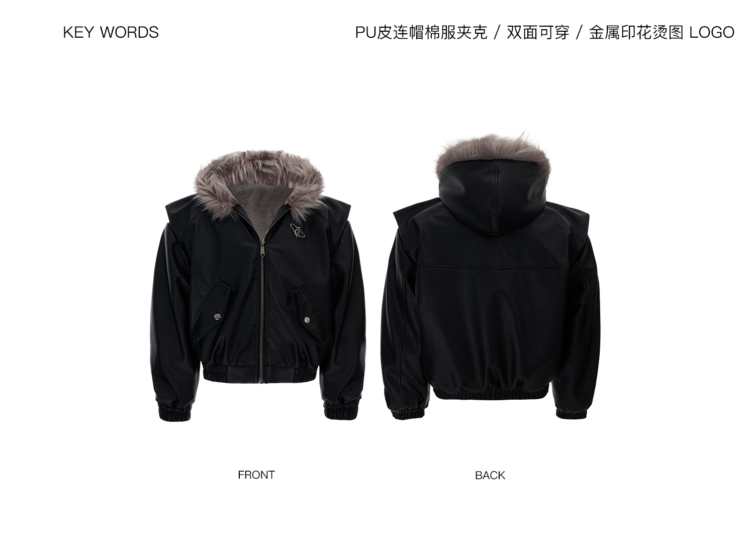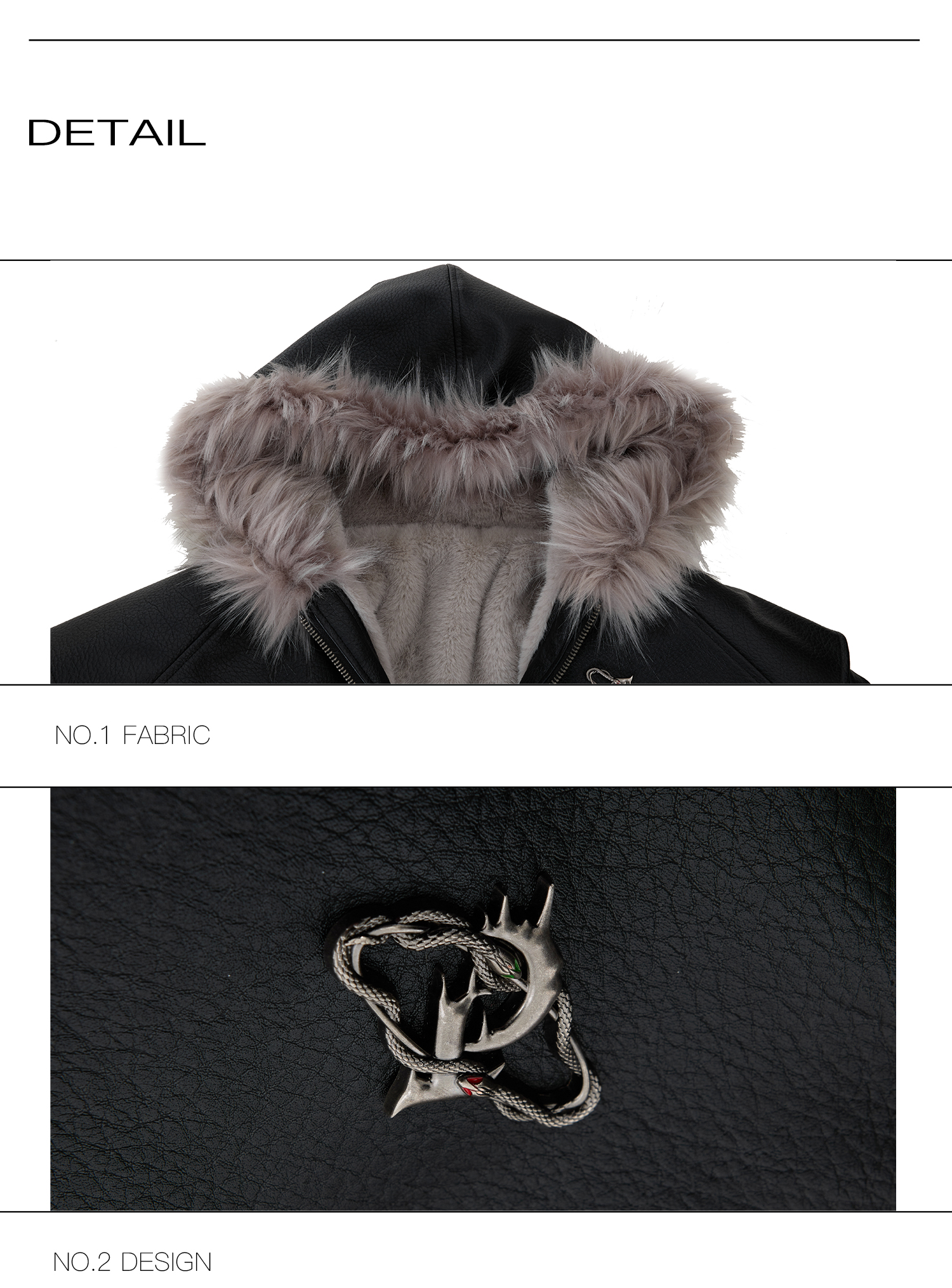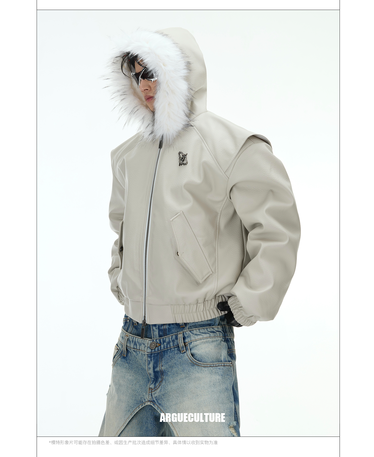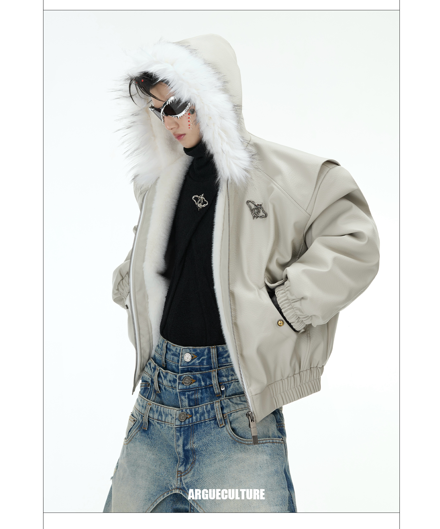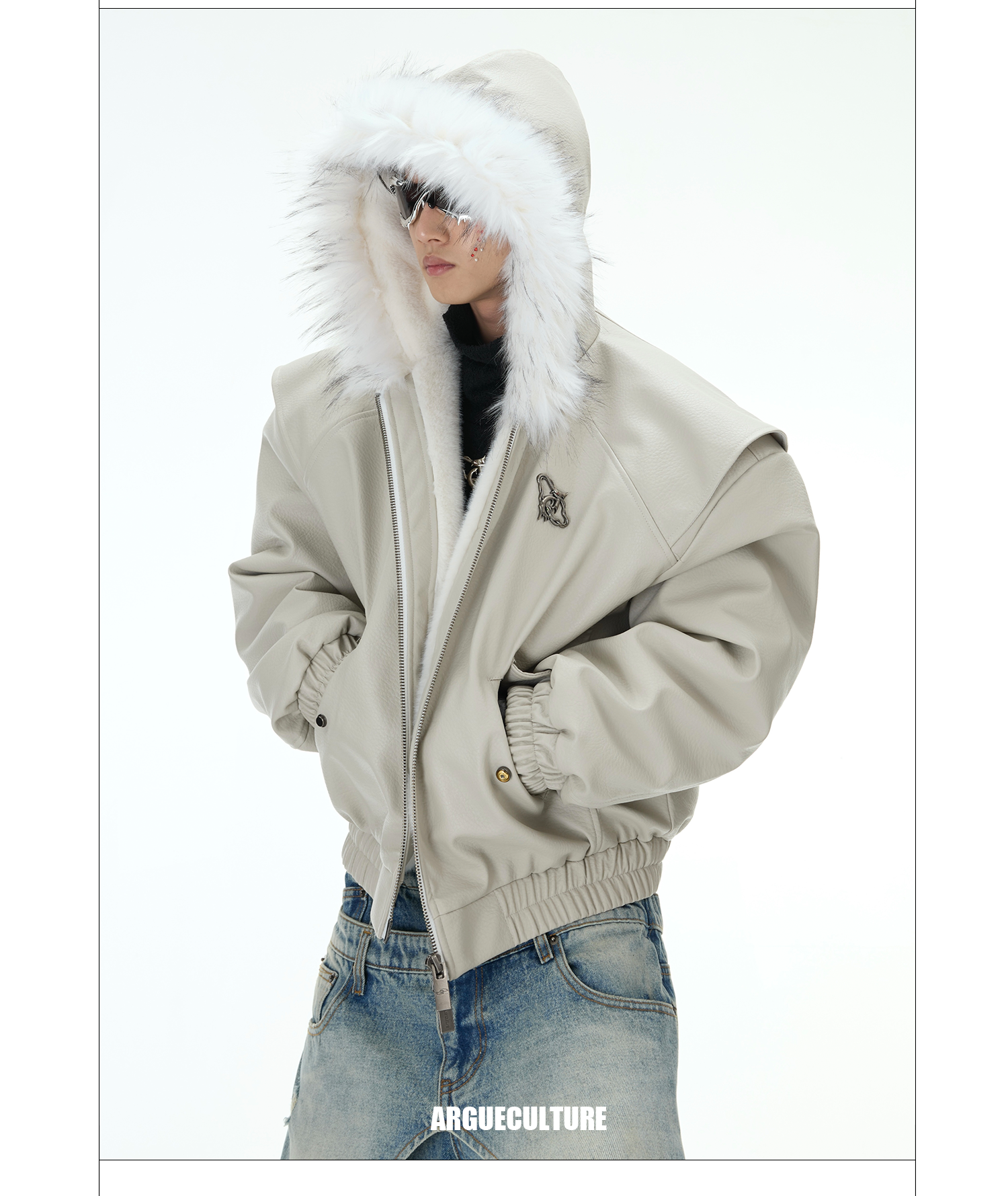 Argue Culture Niche Fur Collar Double-Sided Thickened Jacket Pu Leather Hooded Cotton Jacket for Men