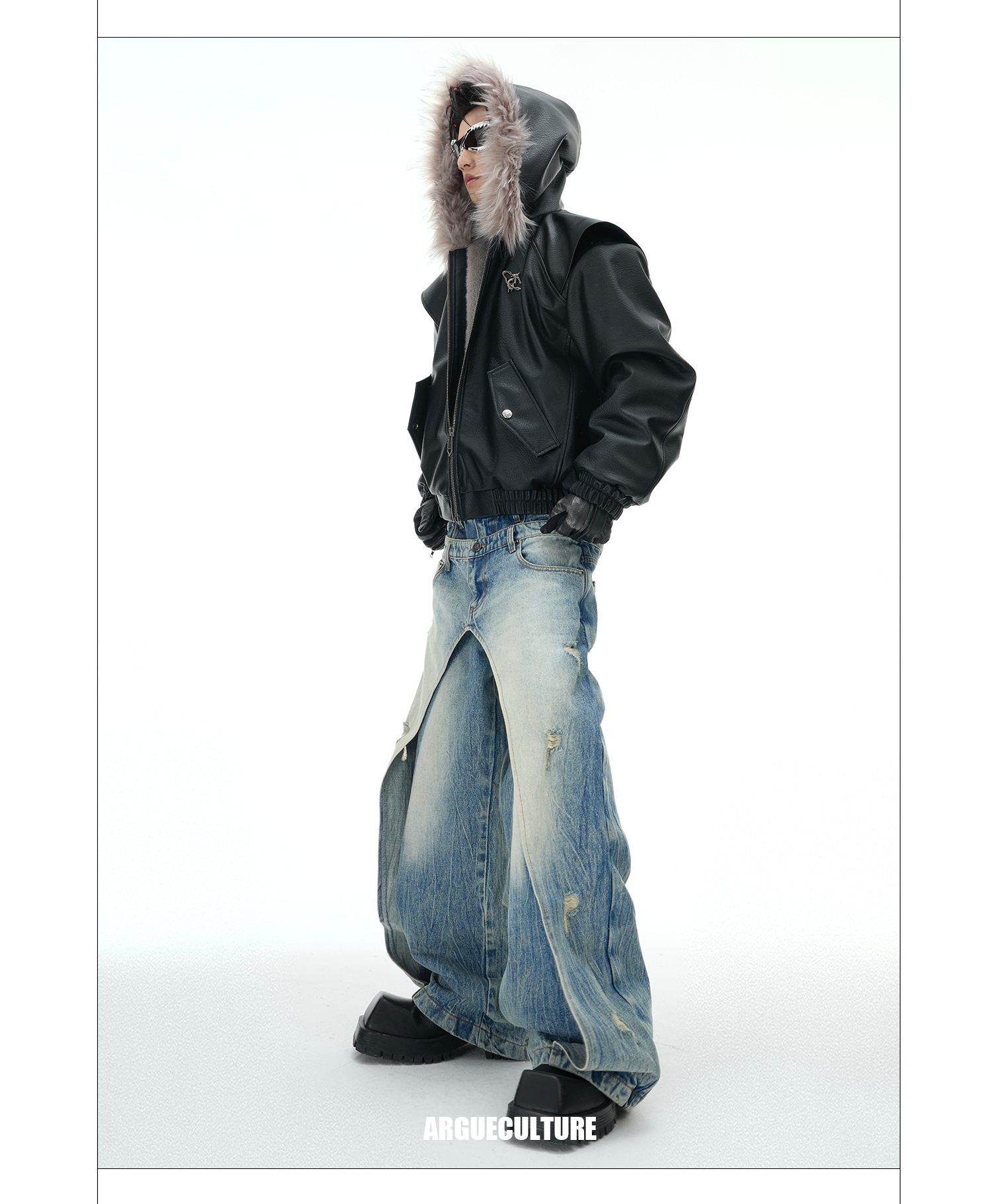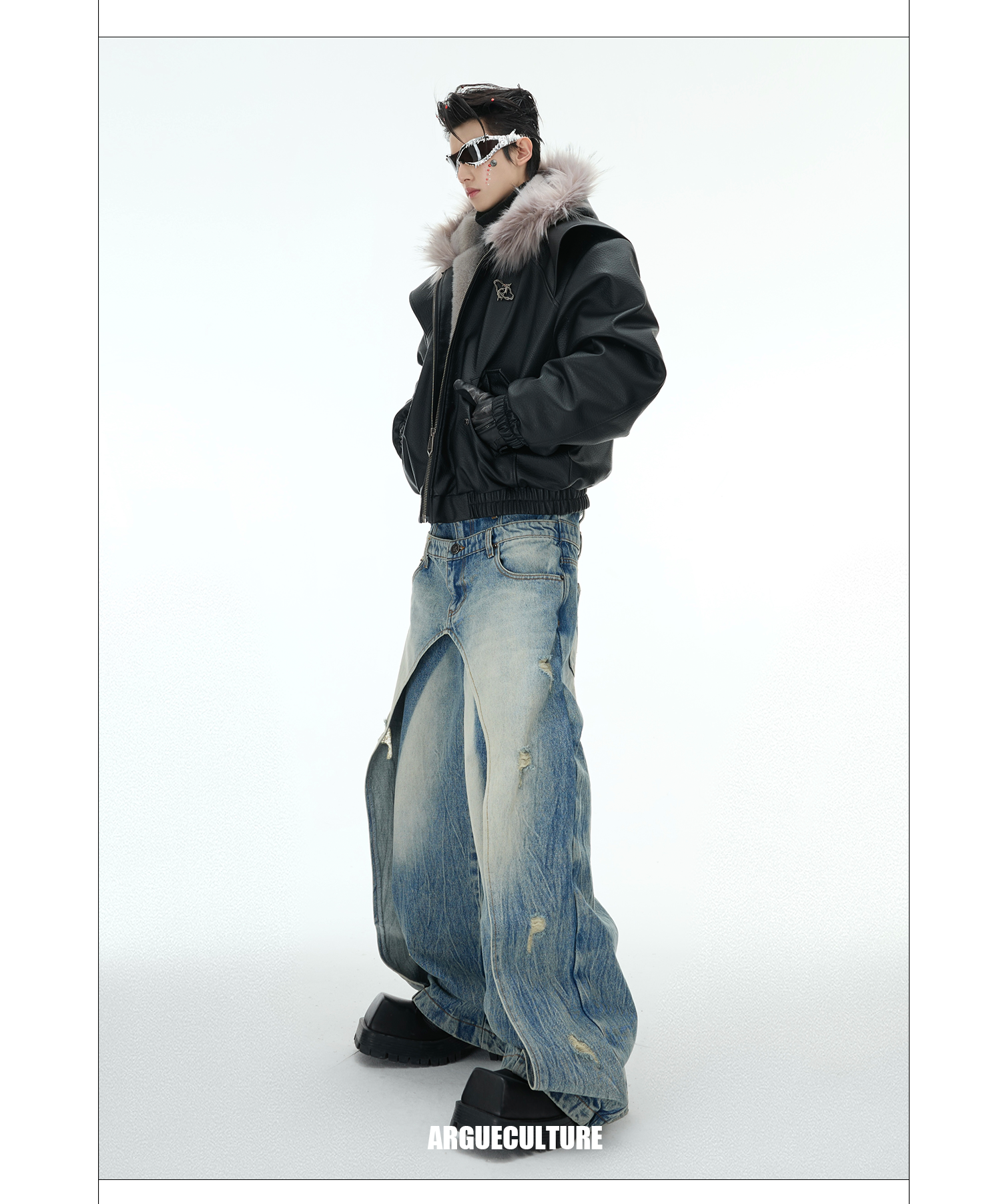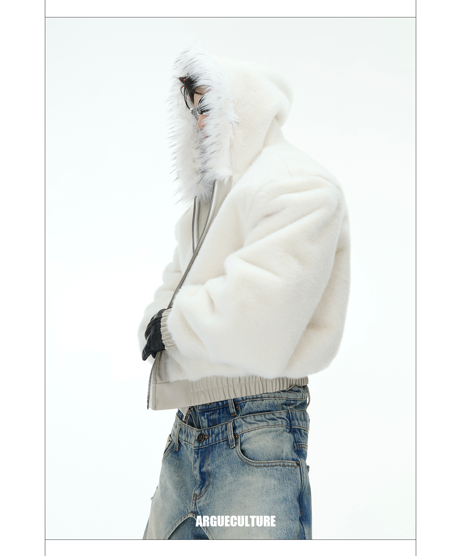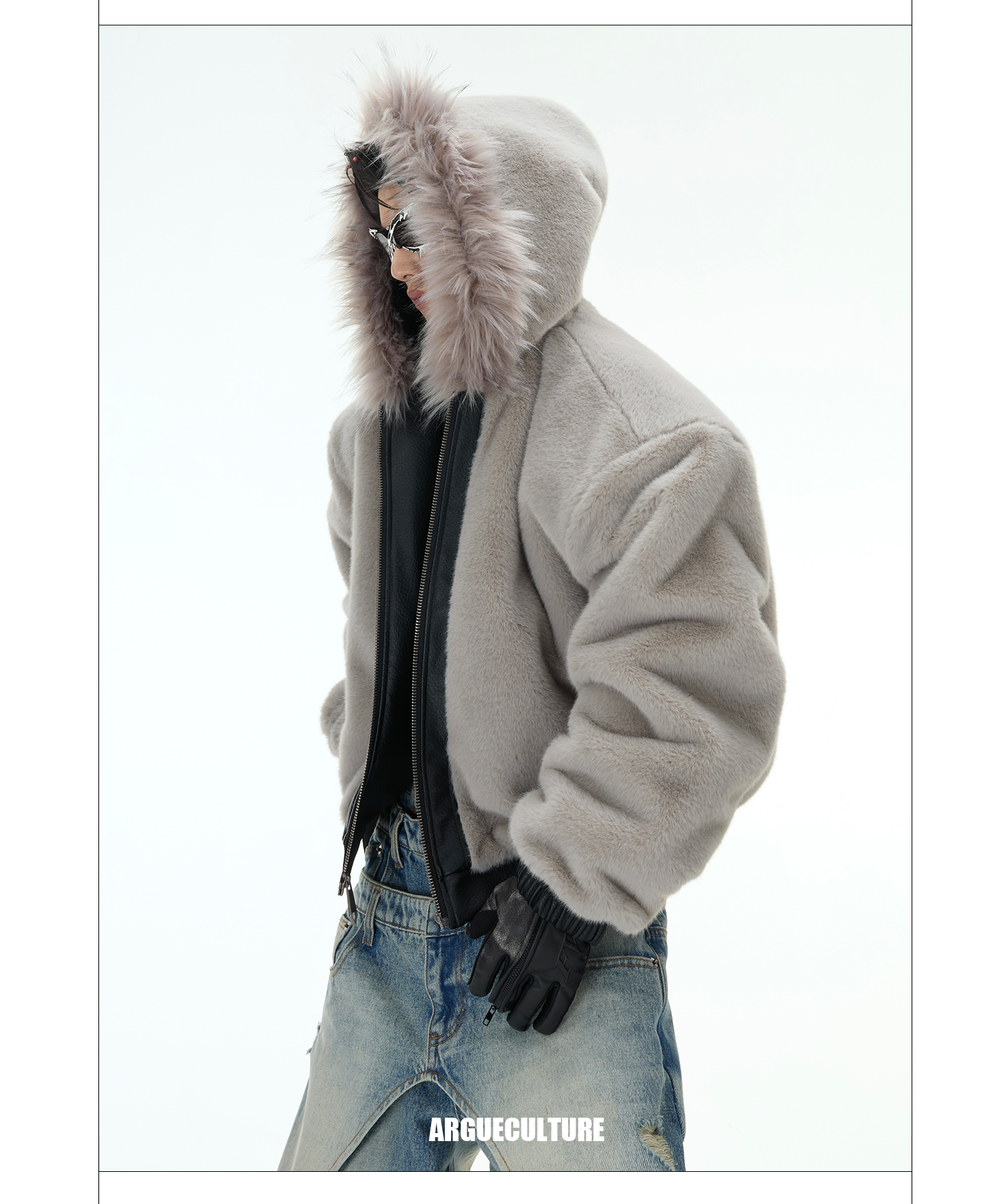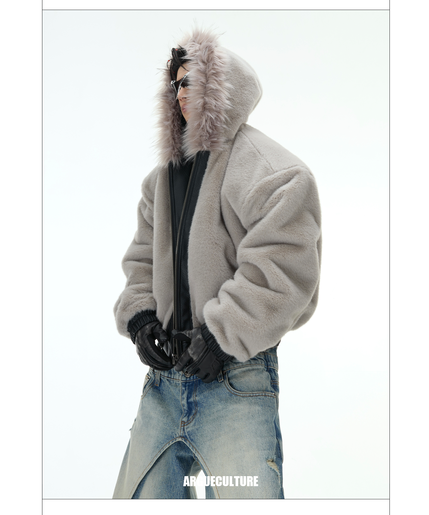 Argue Culture Niche Fur Collar Double-Sided Thickened Jacket Pu Leather Hooded Cotton Jacket for Men