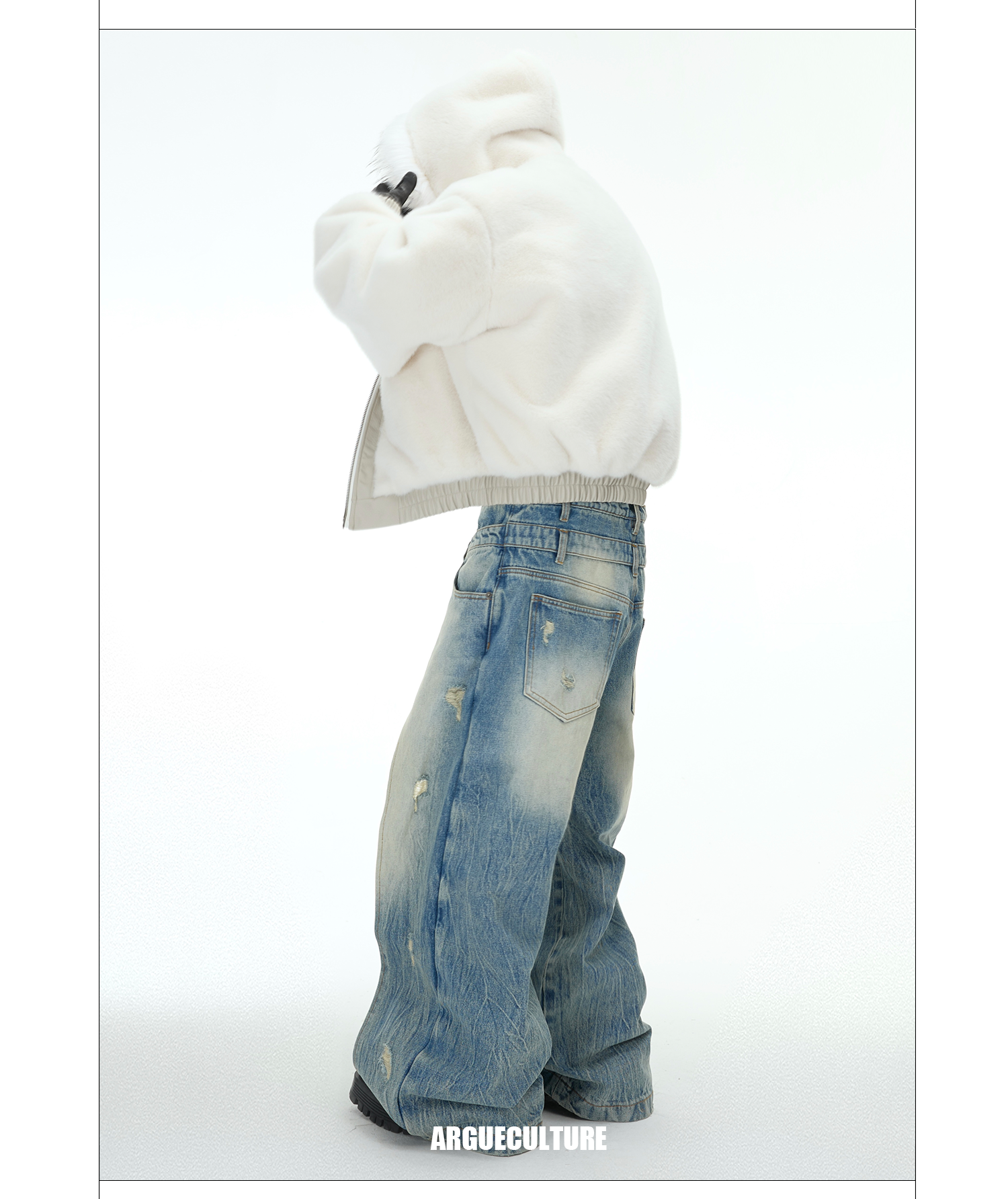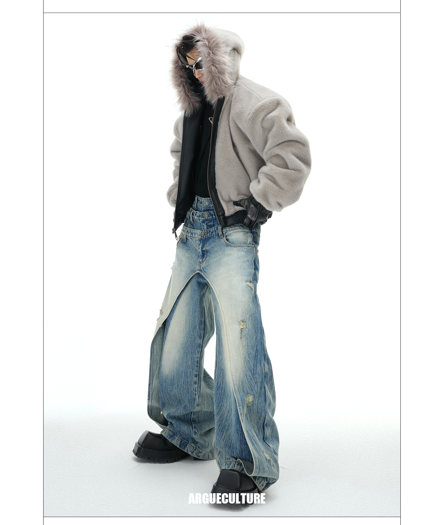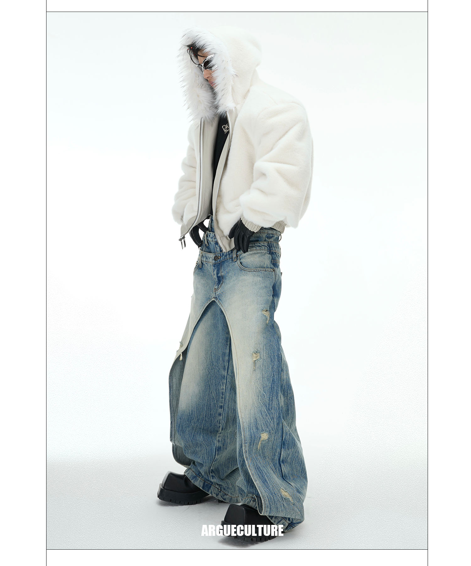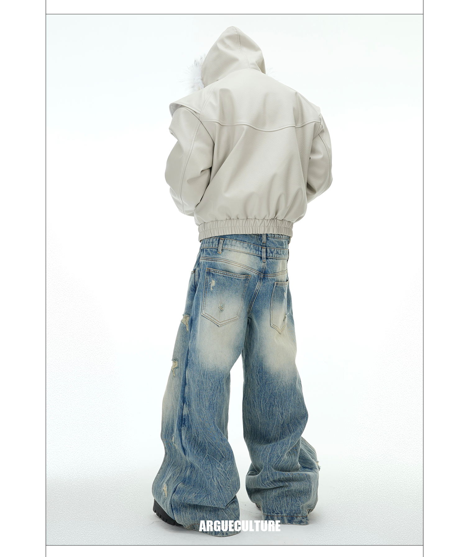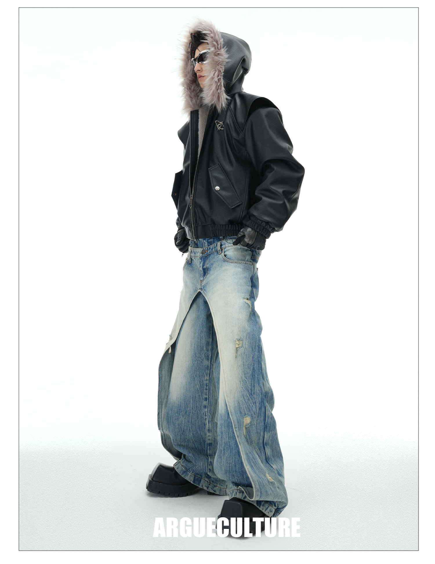 Argue Culture Niche Fur Collar Double-Sided Thickened Jacket Pu Leather Hooded Cotton Jacket for Men