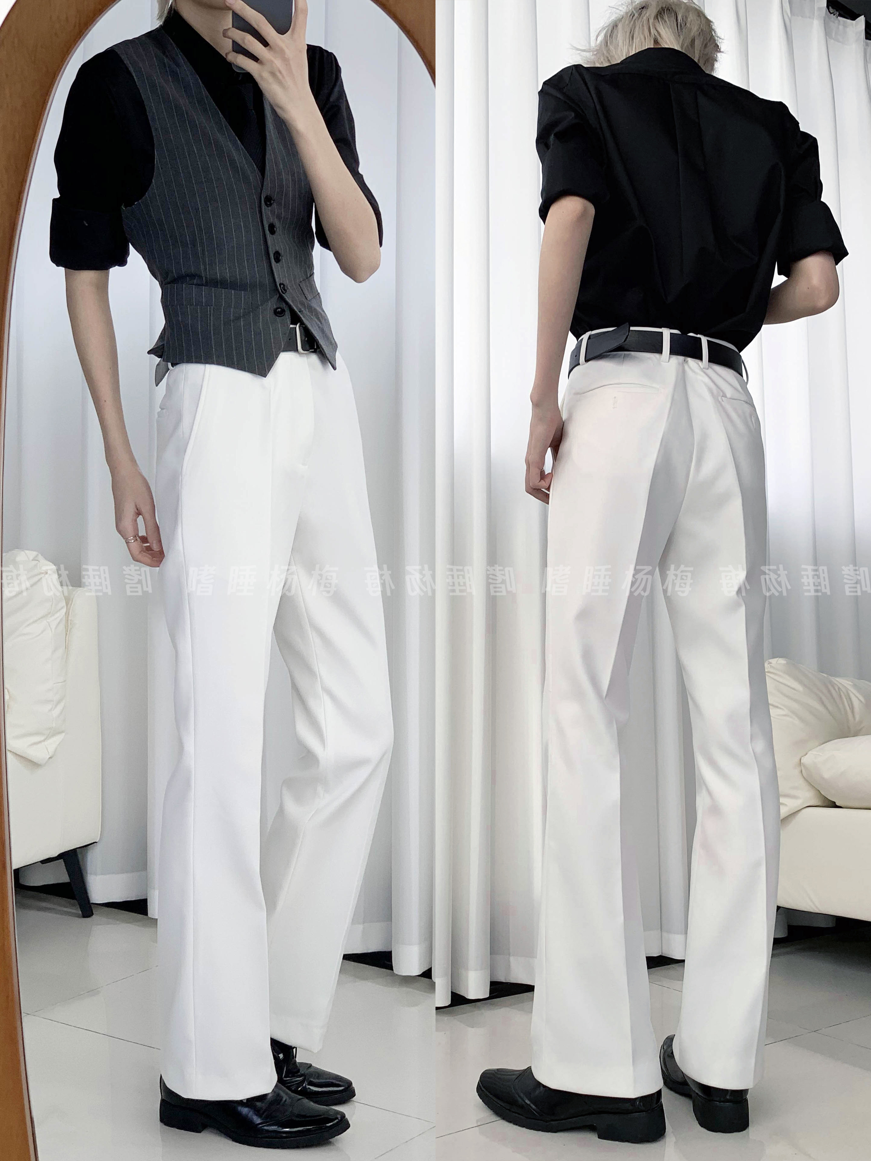 Ym White Flared Pants, Extra Long, Slim Fit, for Tall People, Spring and Autumn, Solid Color, Japanese Style, High-End Feel, LAOSHU Floor-Length Suit Pants