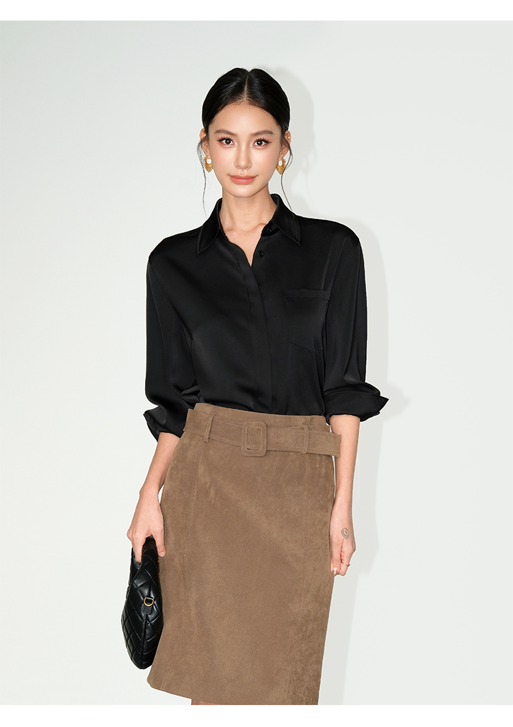 Neva Hu High-End Satin Long-Sleeved Shirt for Women, New Loose-Fitting Elegant Shirt with a Unique Design