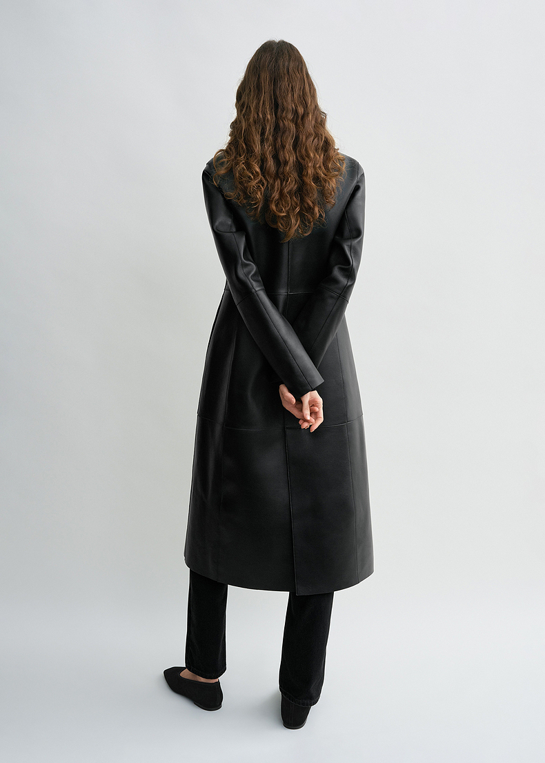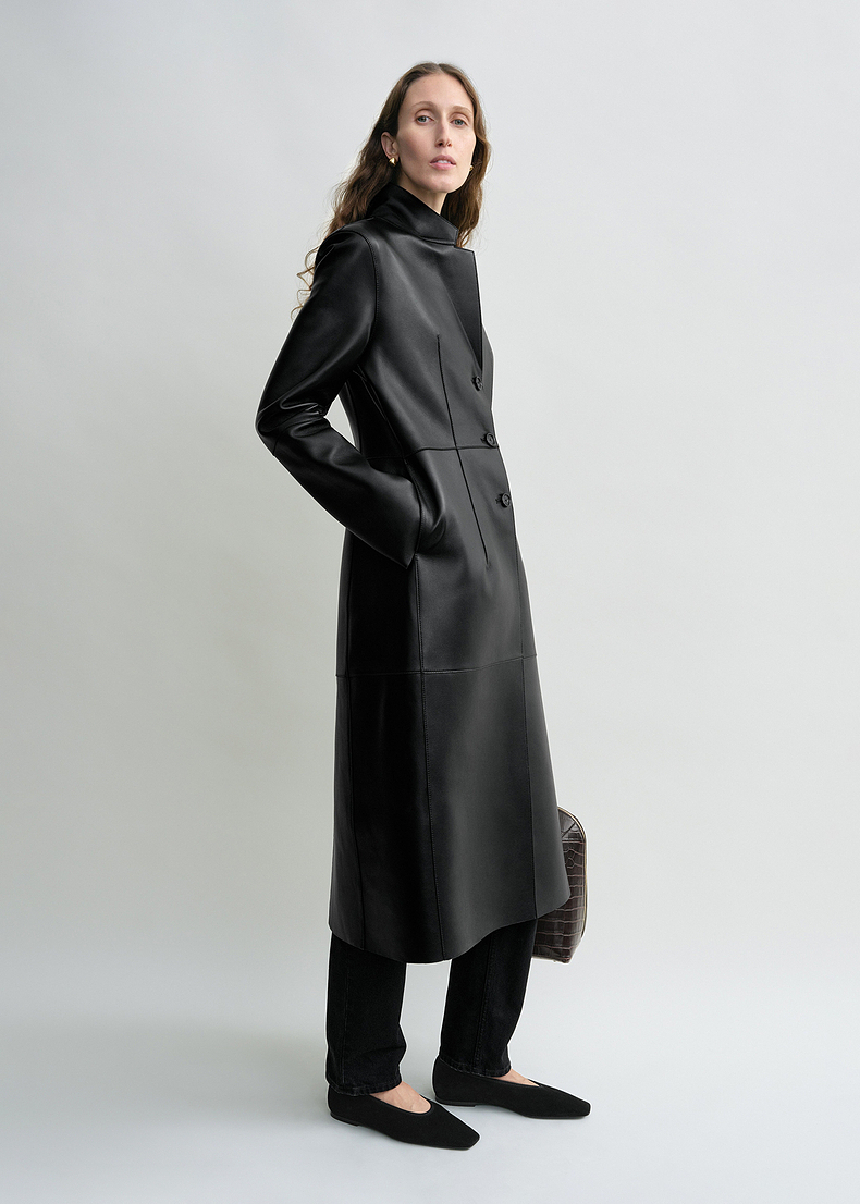 Toteme Women's Clothing Black Lambskin Glossy Leather Patchwork Pleated Coat