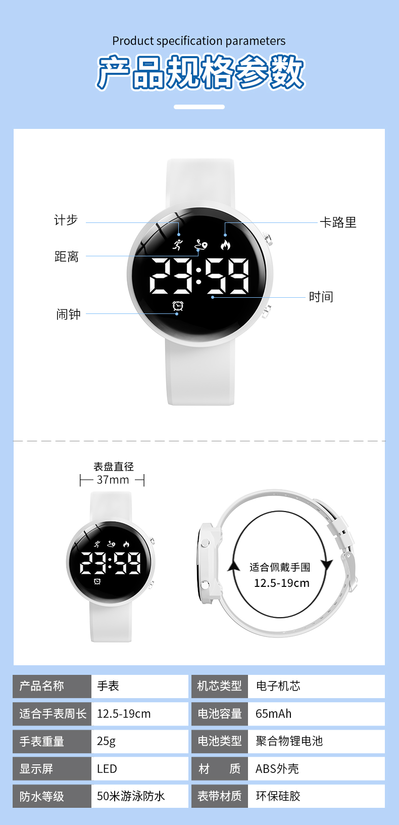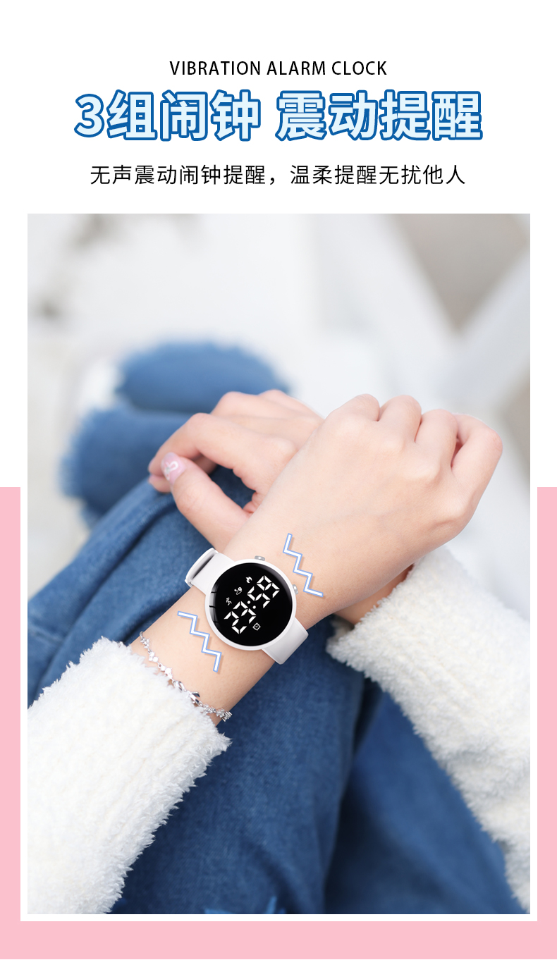 Junior High School Student Watch for Female Students, Special Alarm Clock for Middle and High School Students, Only Shows Time, Waterproof Children's Electronic Watch for Girls