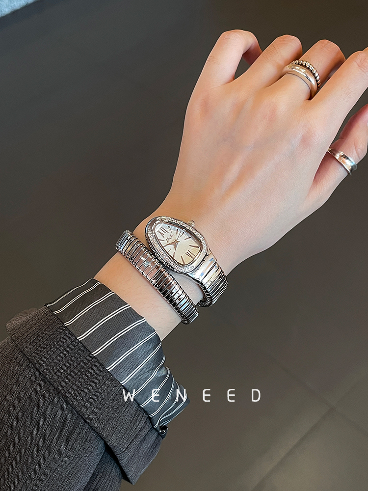 Weneed Snake-Shaped Bracelet Watch for Women 2025 New Light Luxury Niche High-End Women's Watch with Snake Head and Diamond Inlay