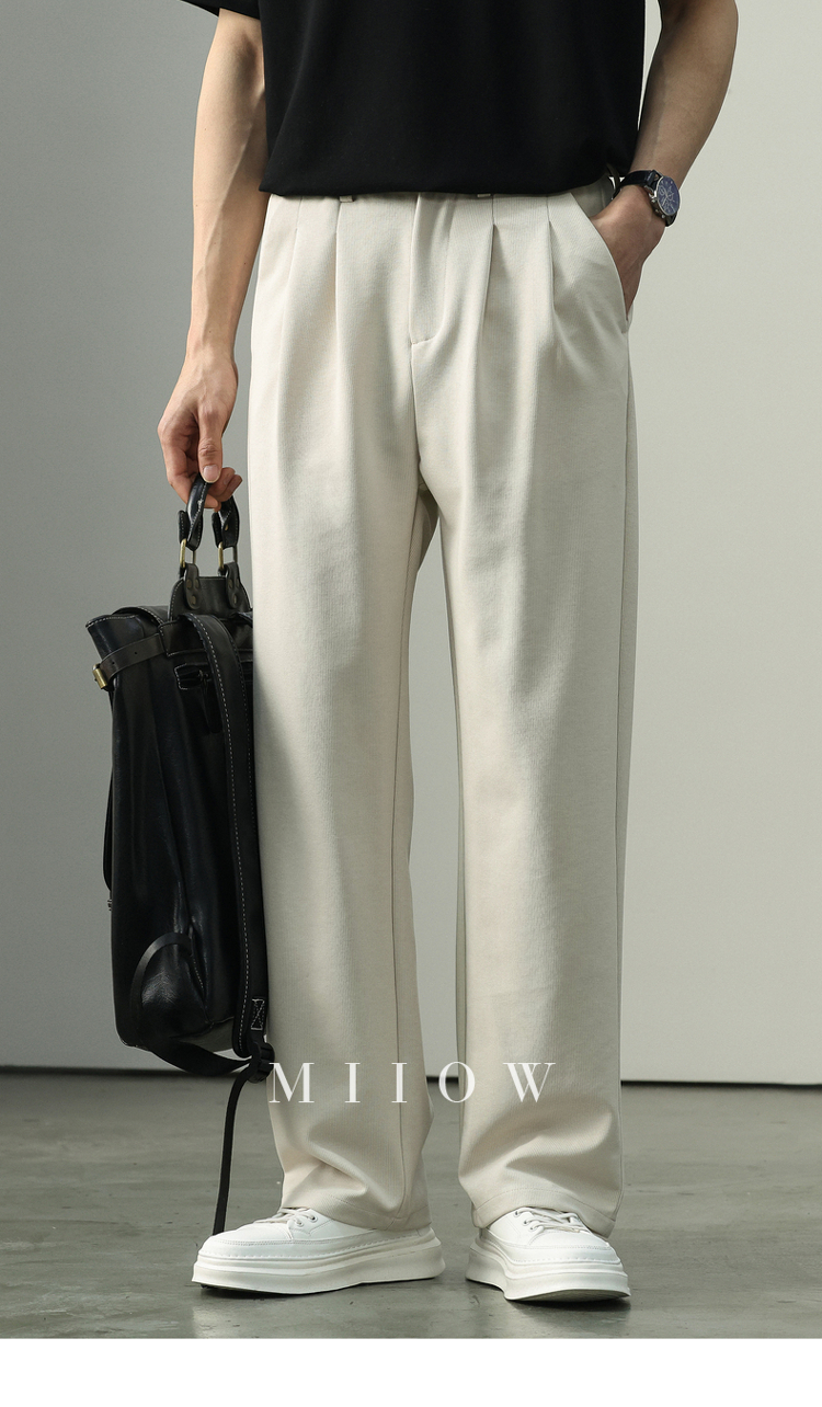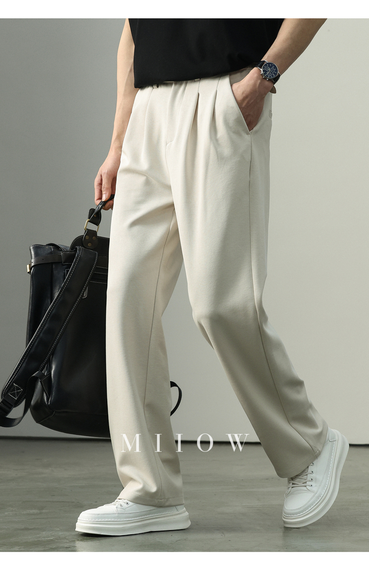 Catman High-End Knitted Drape-Effect Dress Pants for Men 2025 New Versatile Light Mature Style Commuting Business Straight-Leg Casual Pants