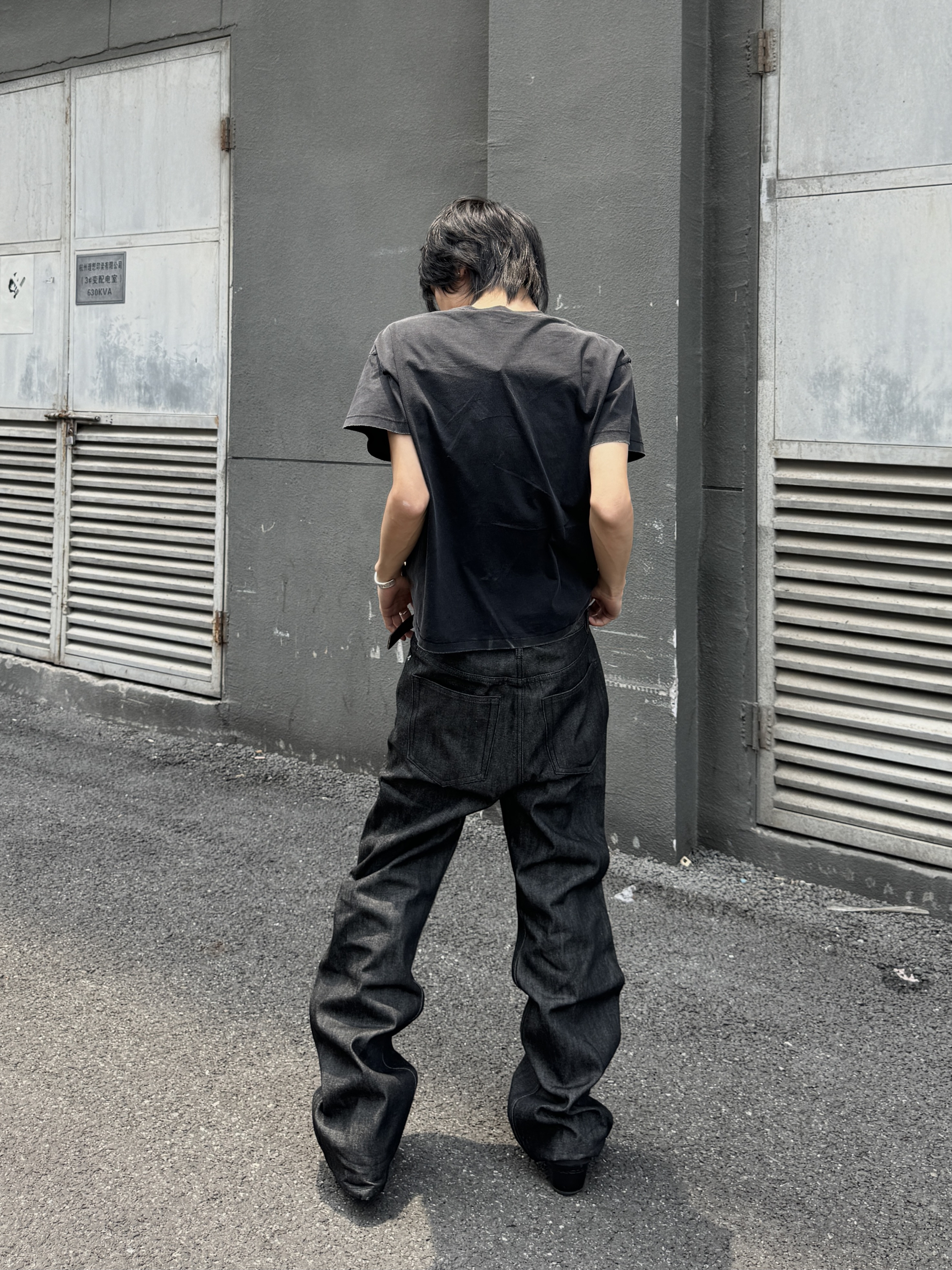 Farsta Original Vintage Black Washed Heavy-Duty 646 Selvedge Denim 13oz Flared Versatile Jeans