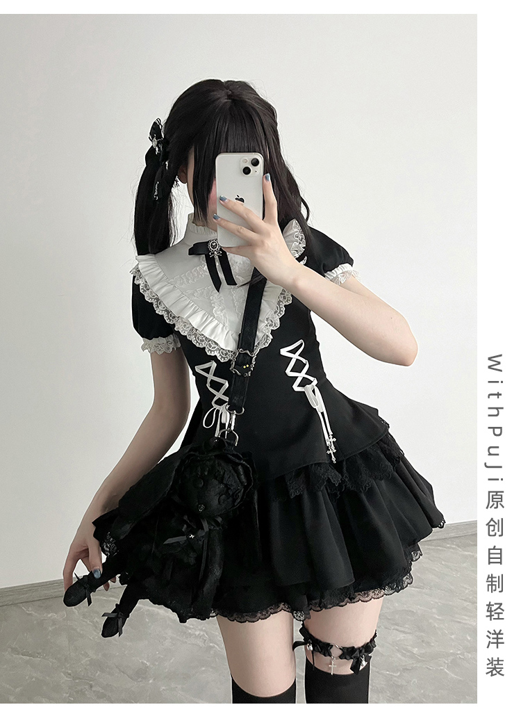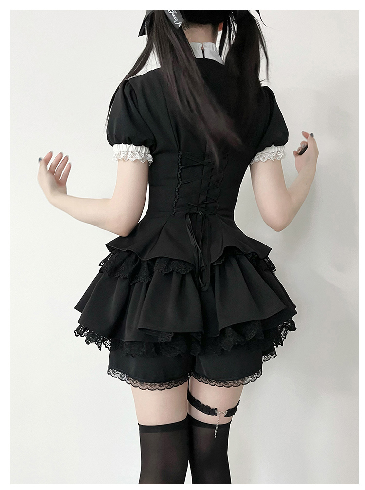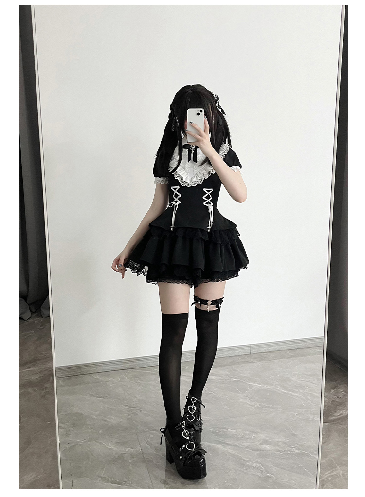 【Doki!】Withpuji Original Design Sweet and Cool Ruffle Hem Op/Pocket Shorts Twin Lolita
