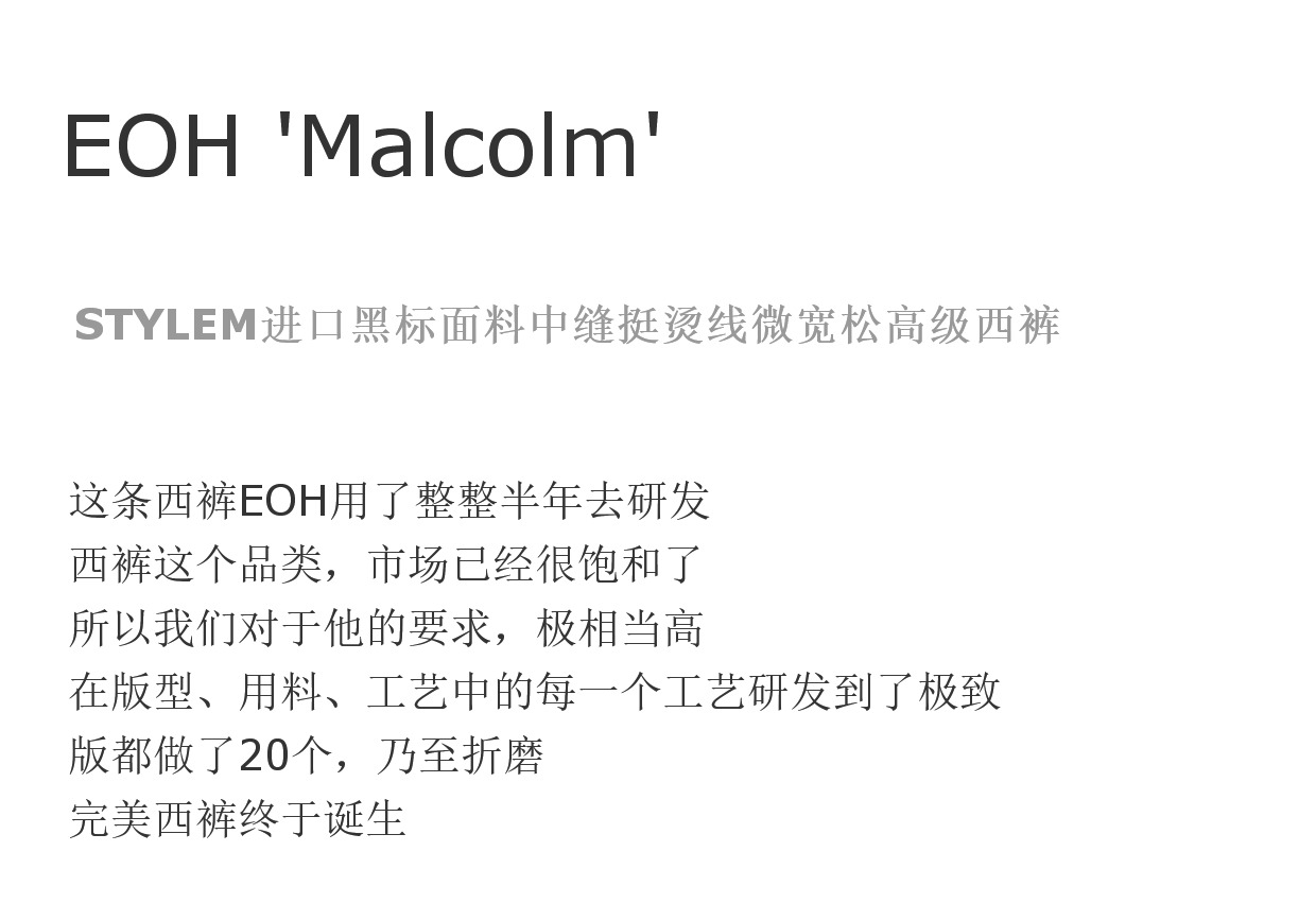Eoh'Malcolm' 2.0 Stylem Imported Fabric Semi-Permanent Center Seam High-End Minimalist Dress Pants