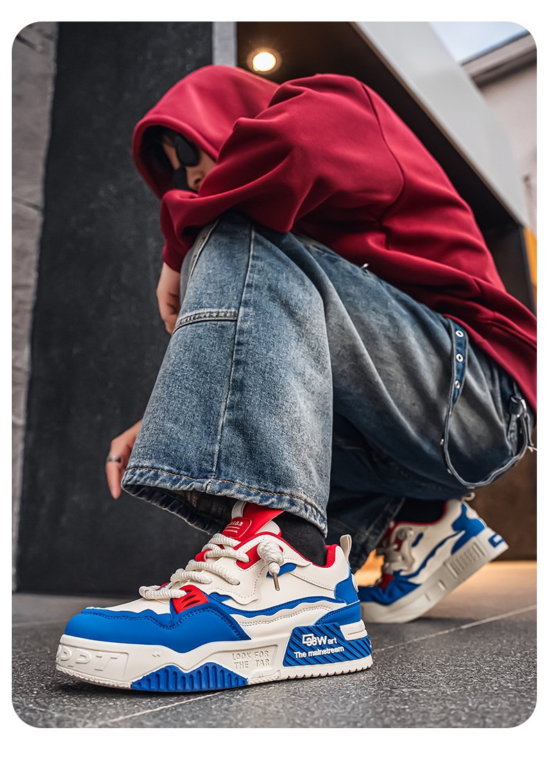 Lee&Vgg Trendy Red Men's Shoes 2025 New Niche Casual Sneakers Thick-Soled Height-Increasing Large Size Sports Trendy Shoes