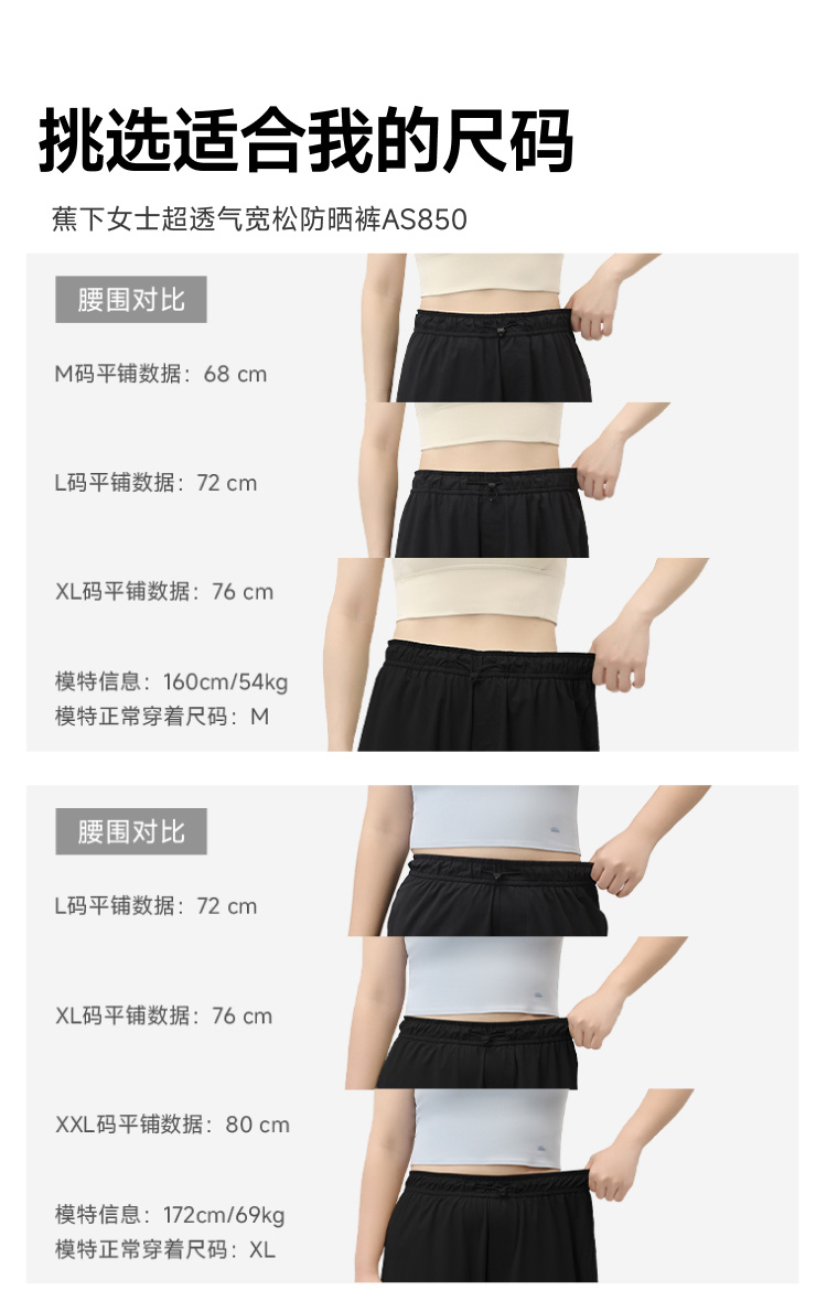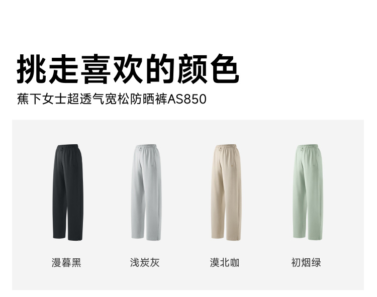 Banana under Women's Breathable Loose Cool Sun Protection Pants As850 Sweat-Wicking Original Fabric Sun Protection Upf100+ Wide Leg Pants
