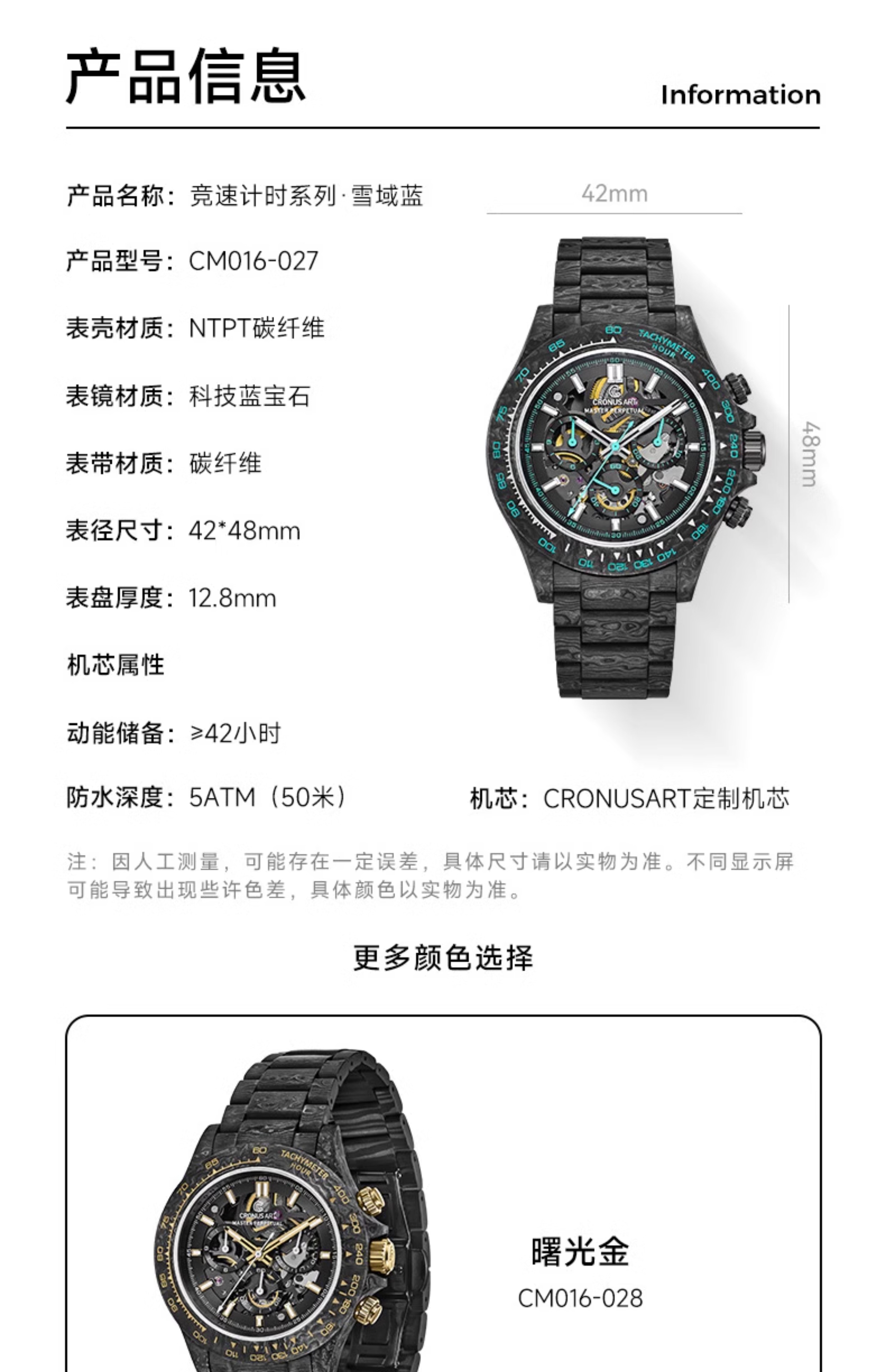Cronusart Cross Daytona Full Carbon Fiber Chronograph Mechanical Watch Trendy Fashion Automatic Watch