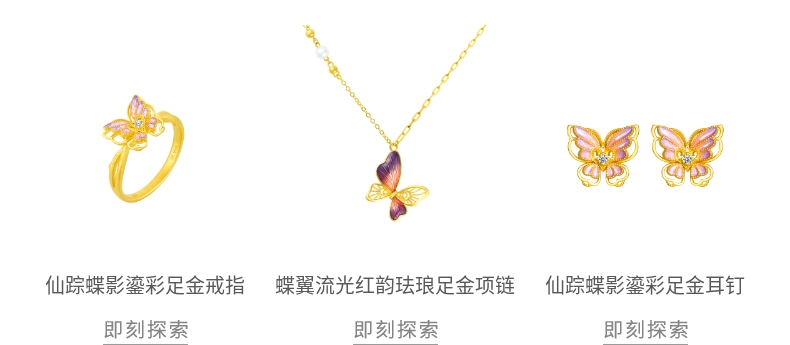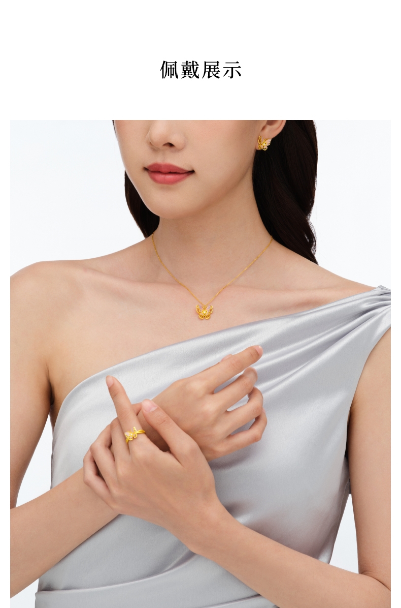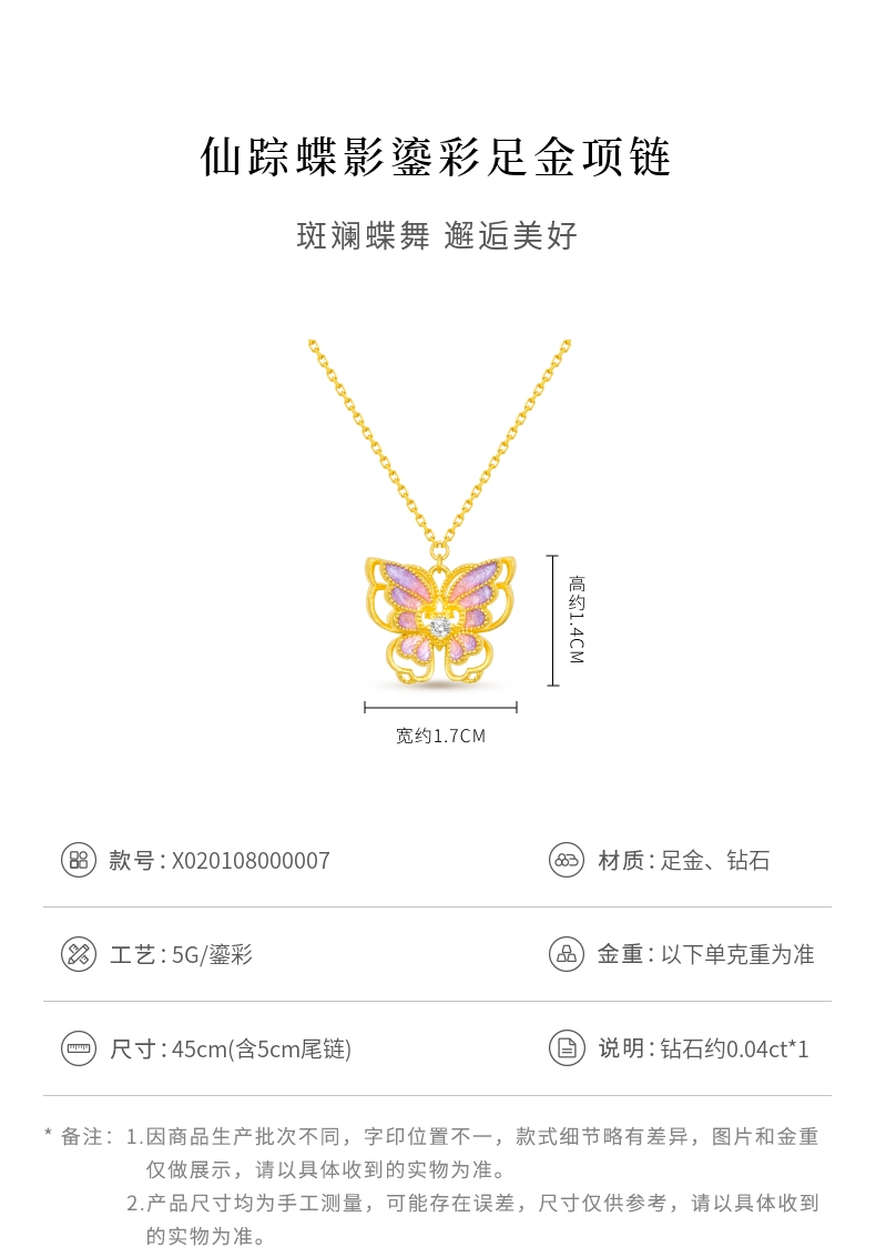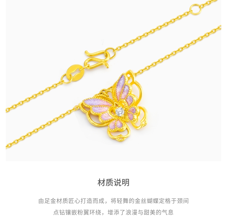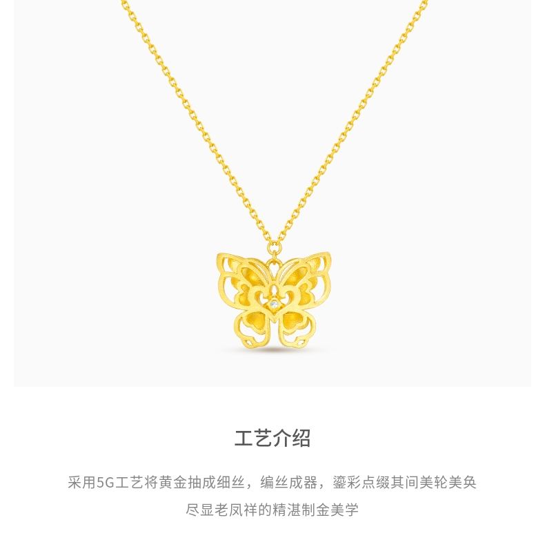 Lao Fengxiang Fairy Shadow Butterfly Hollow Carved Butterfly with Gold and Diamond Inlay Necklace for Women - Price to Be Determined