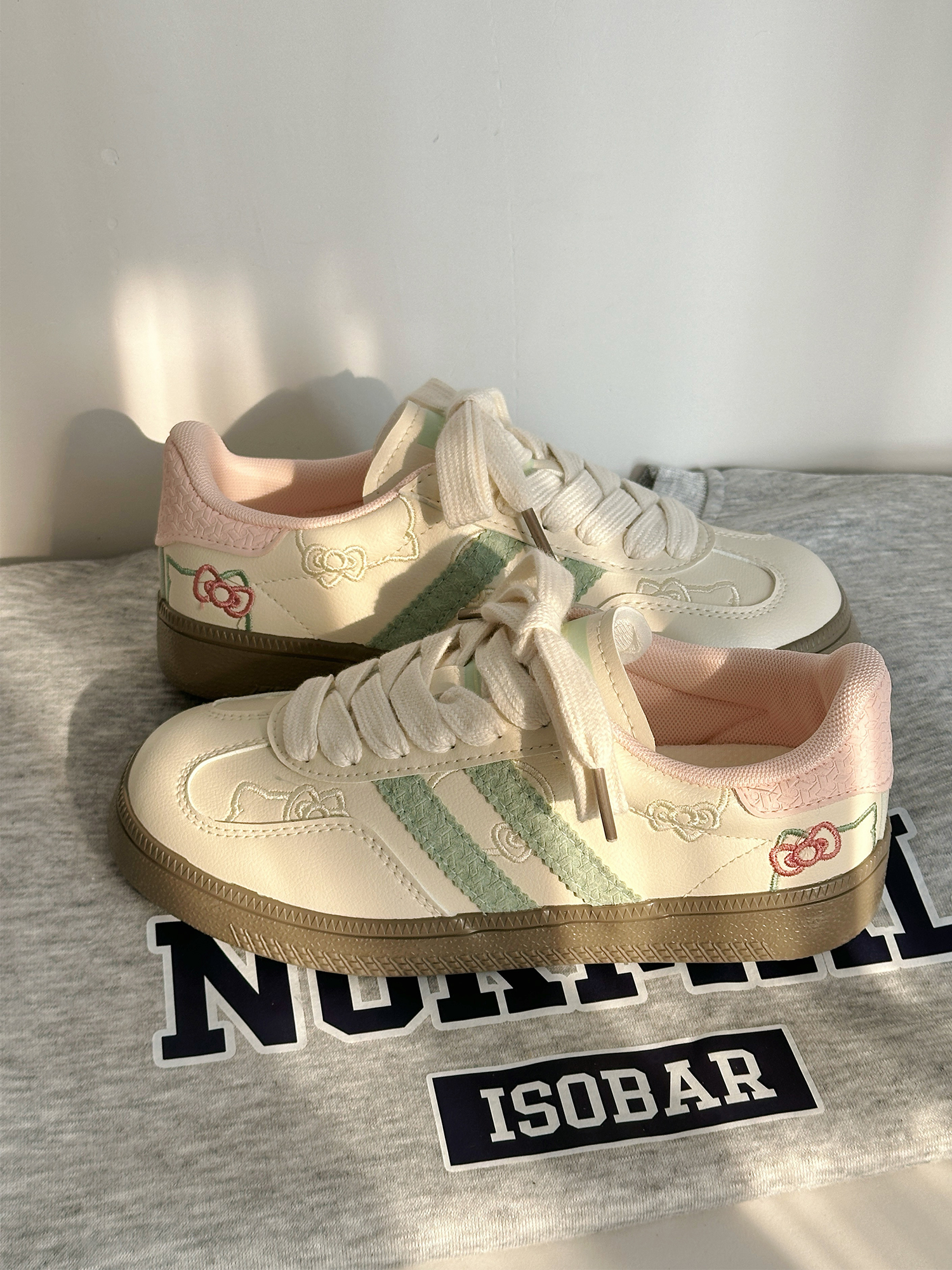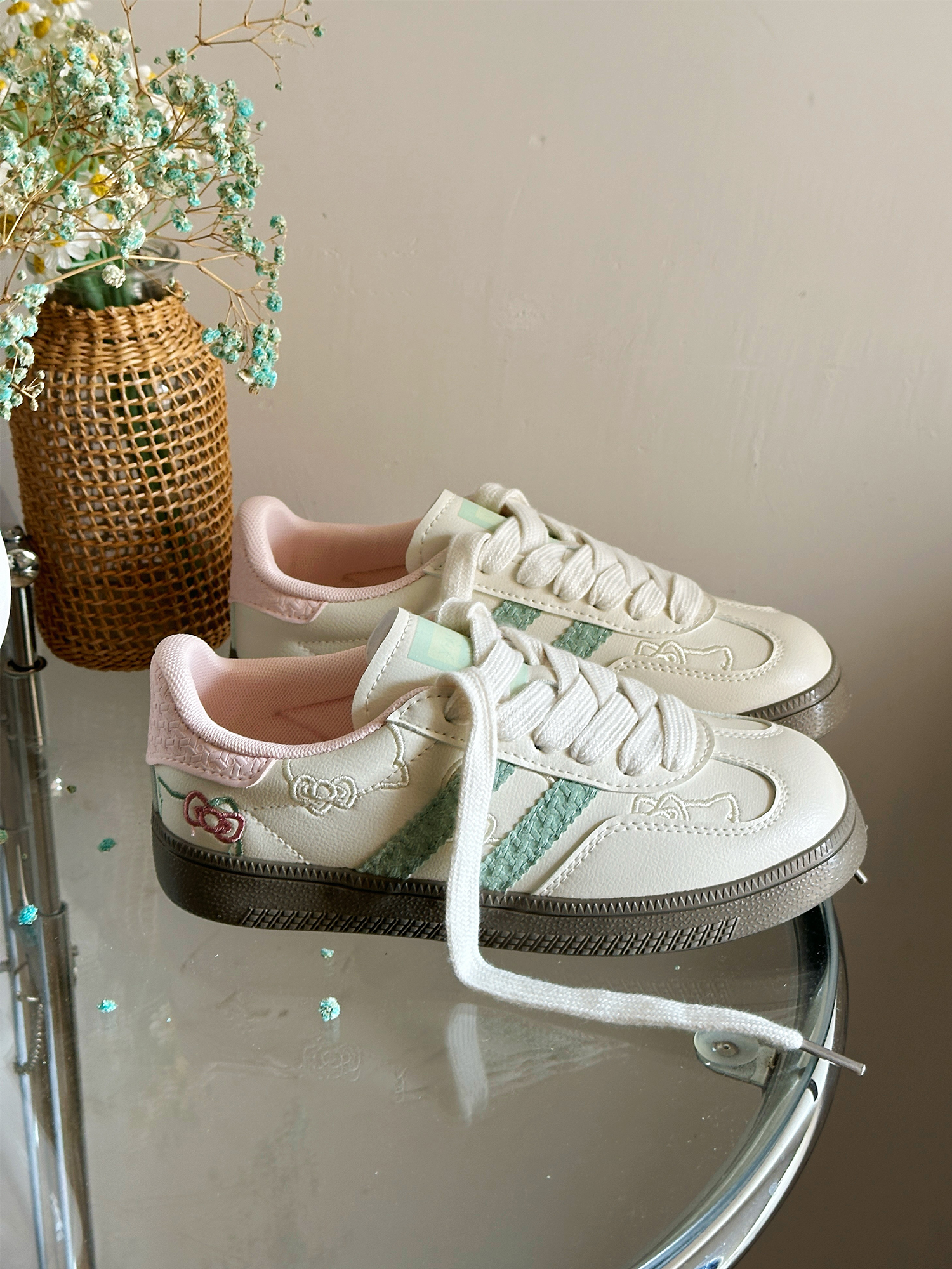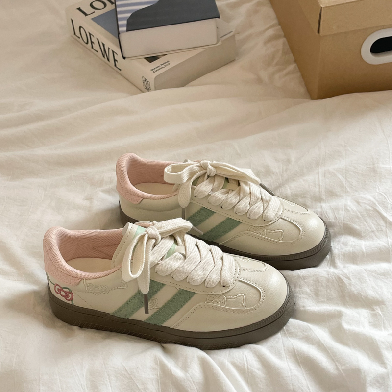 Unique Guava Pink Original Kitty Cat White Sneakers for Women, 2025 Spring New Style Versatile Sneakers, German Training Shoes