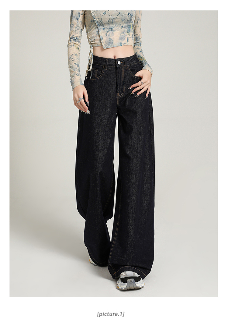 Vintage A-Line Wide-Leg Jeans for Women, Fleece-Lined, New Autumn Style, Pear-Shaped, Loose, Bf Lazy Style, Straight-Leg, Baggy Pants