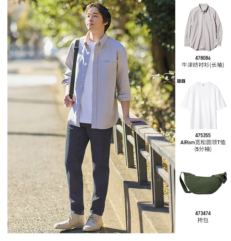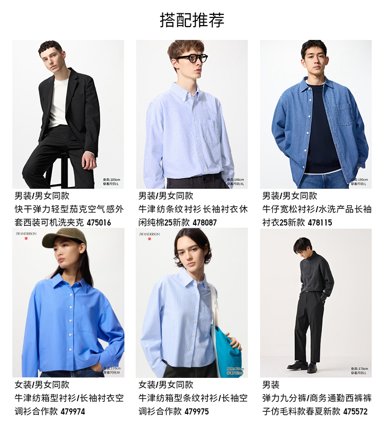 Uniqlo Men's and Women's Oxford Fabric Shirts Long-Sleeved Shirts Casual Plain Casual Commuting 478086 475998