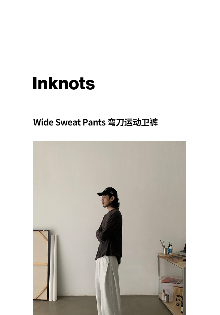 Inknots Simple Retro Sports Casual Fleece-Lined Scimitar Sweatpants Unisex American Style Lazy Relaxed Wide-Leg Pants