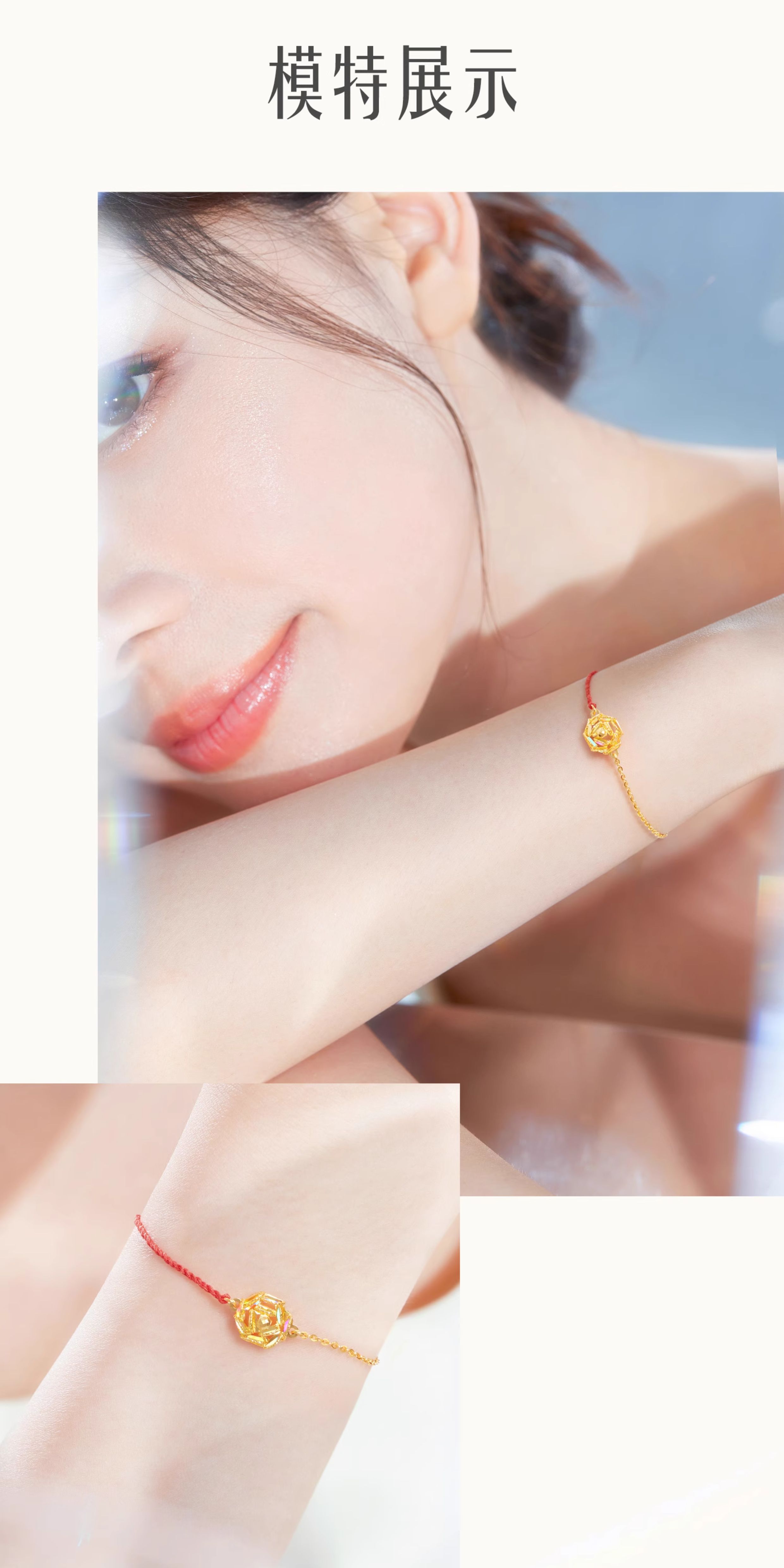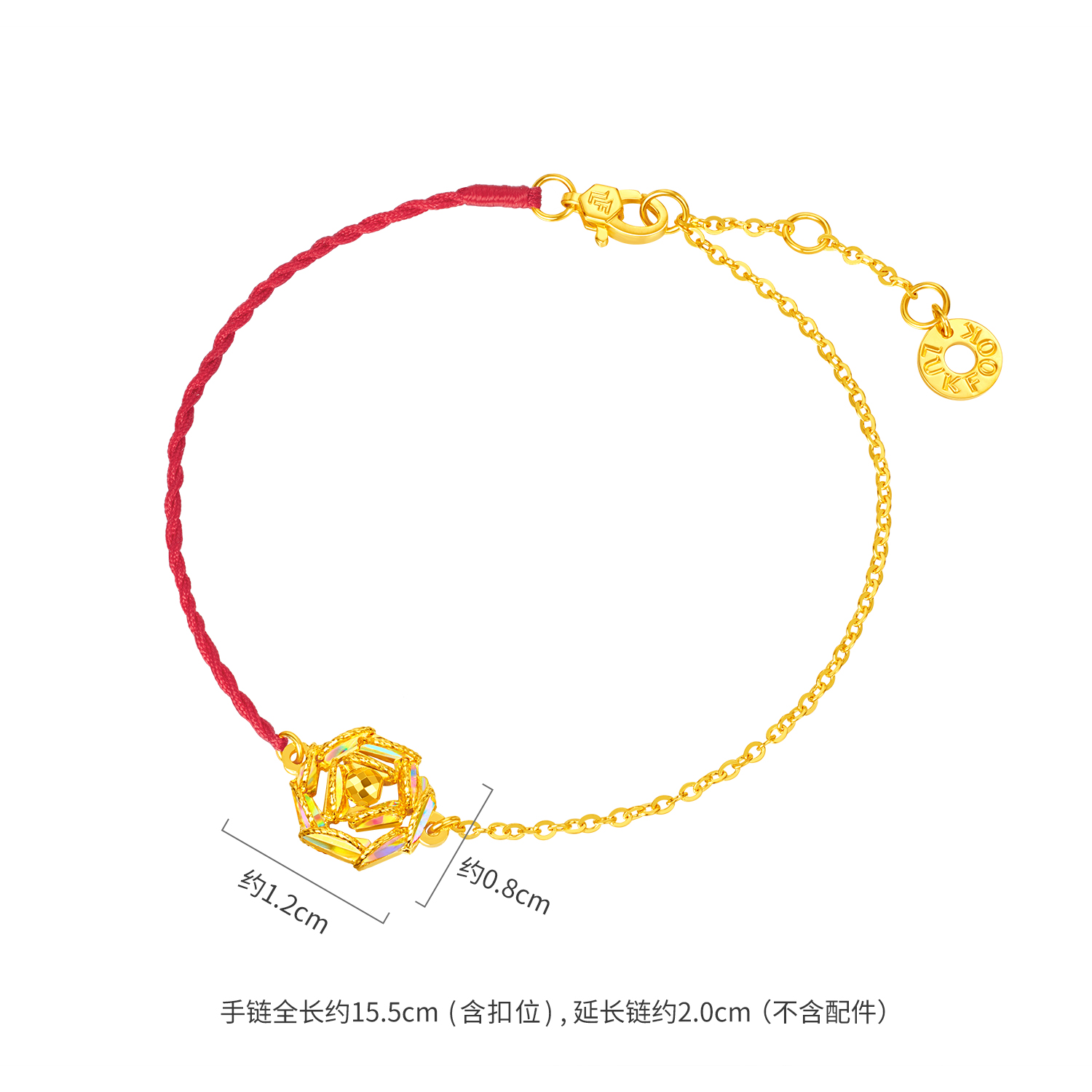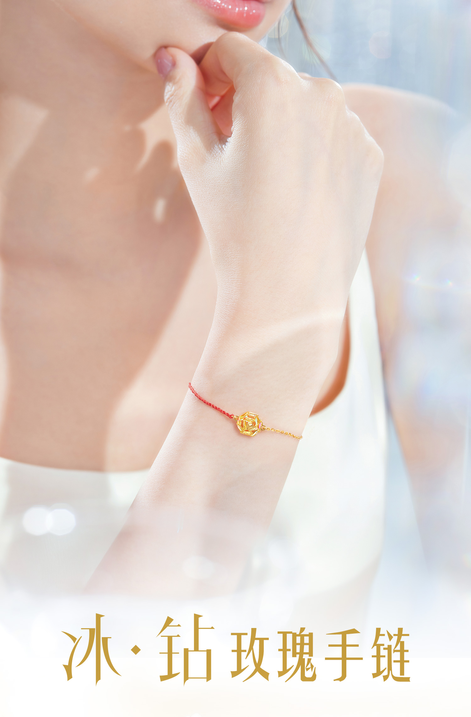 [Same Style as Cheng Yi] Liufu Jewelry Ice Diamond Rose Gold Bracelet with Dazzling Colorful Red String, Priced 029591Bc