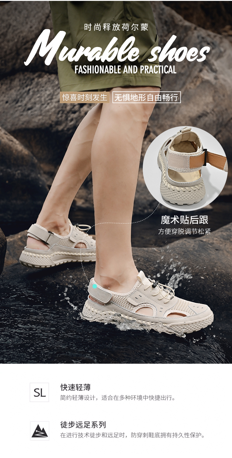 Camel Dynamic Sandals Men's Outer Wear Cut Out Men's Beach Shoes Casual Sports Outdoor Non-Slip Wading Shoes Mesh Shoes