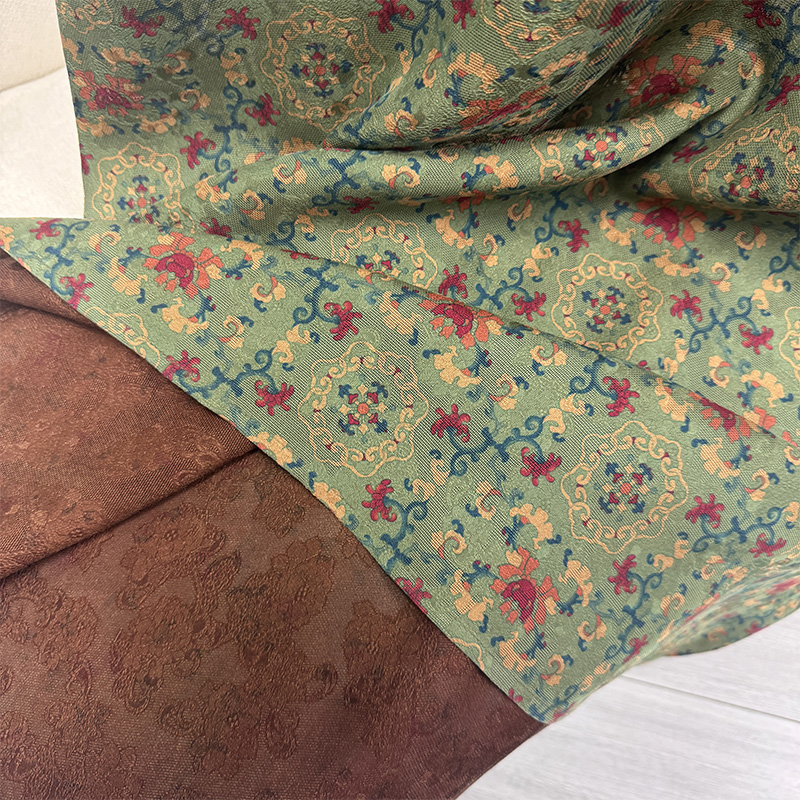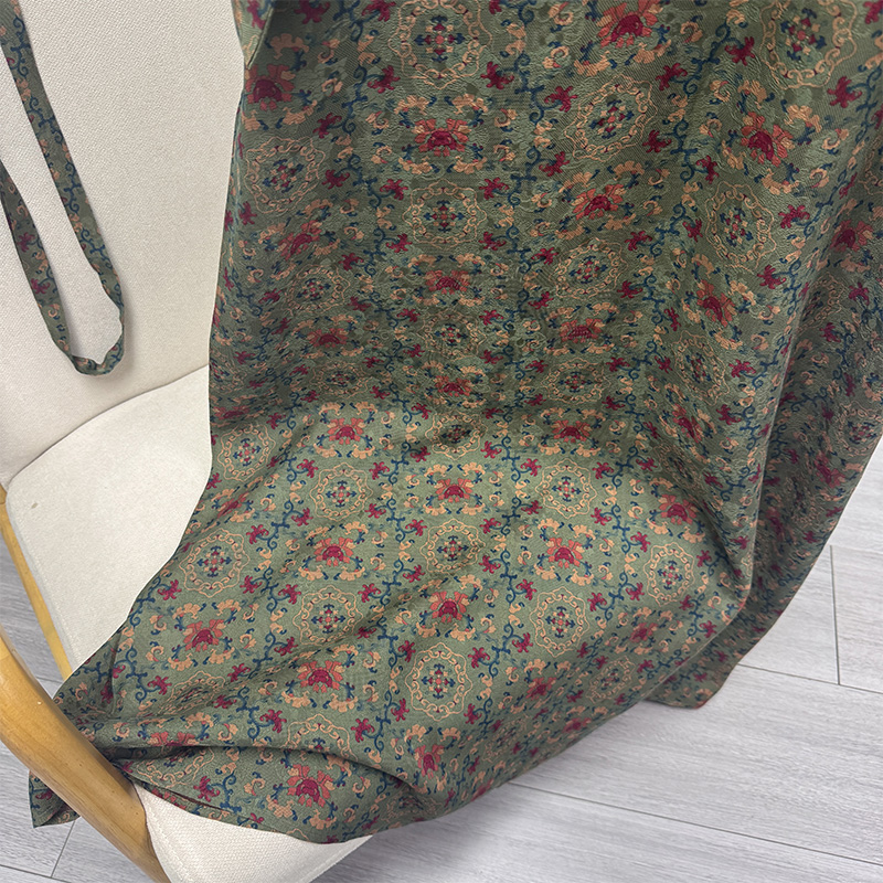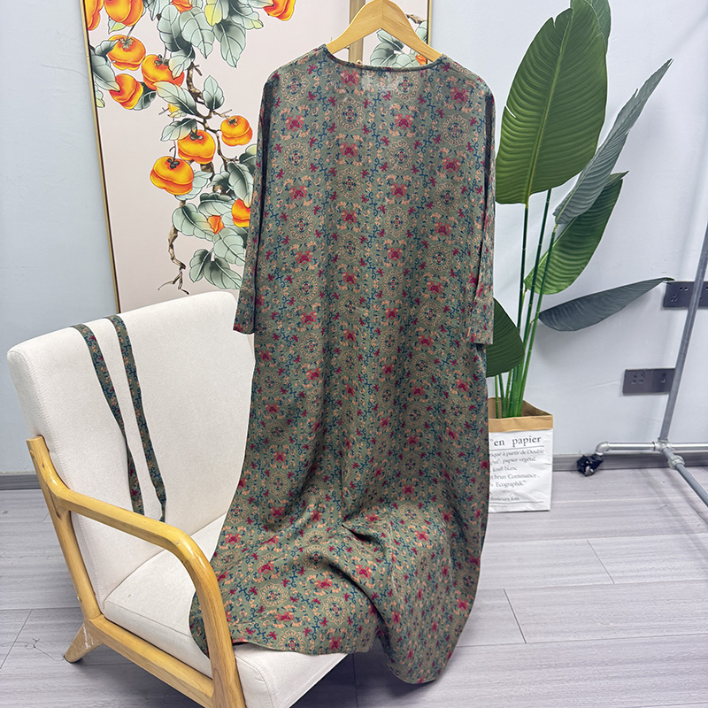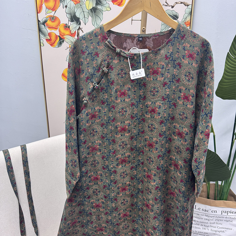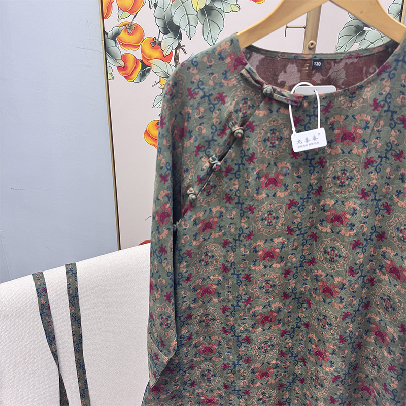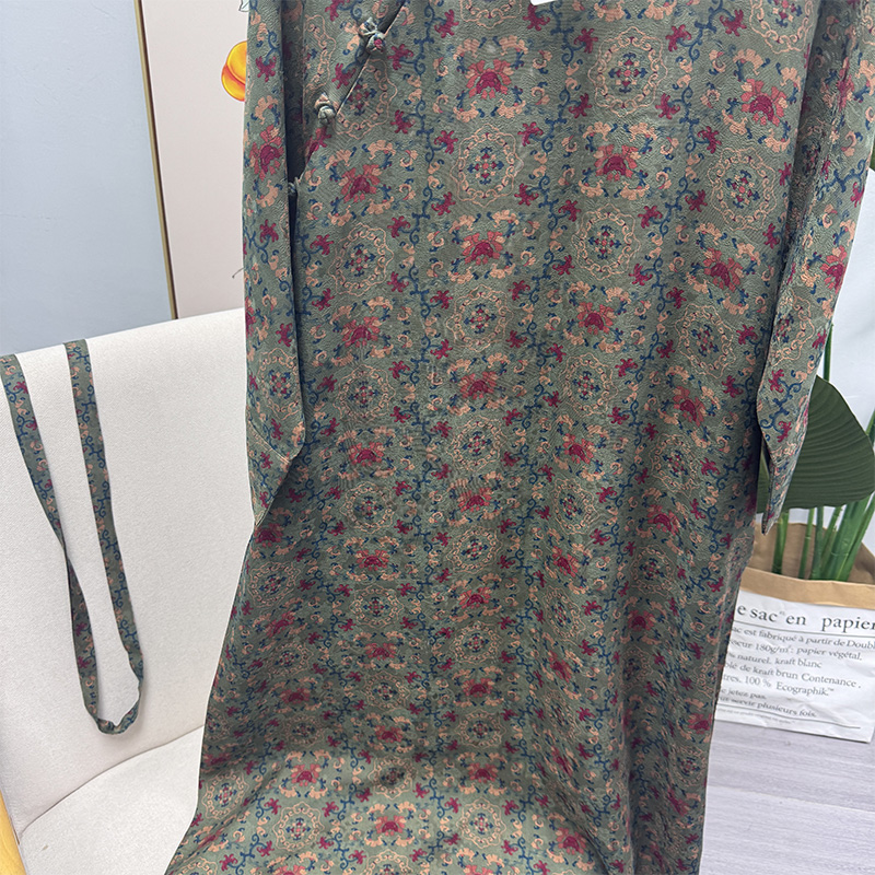 Pre-9Th Grade 100% Mulberry Silk Handmade Green Floral Fragrant Cloud Yarn Five Blessings Button Robe Dress