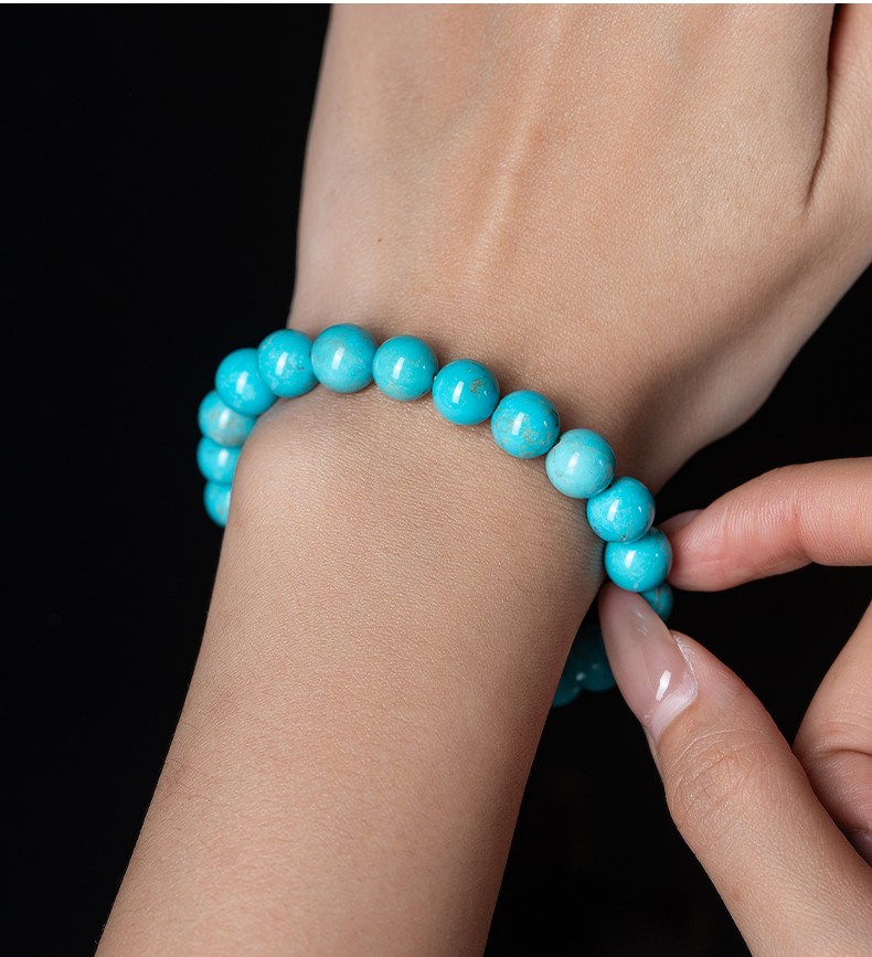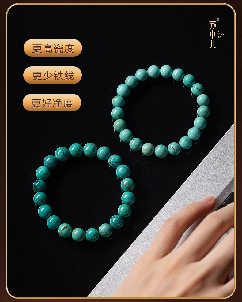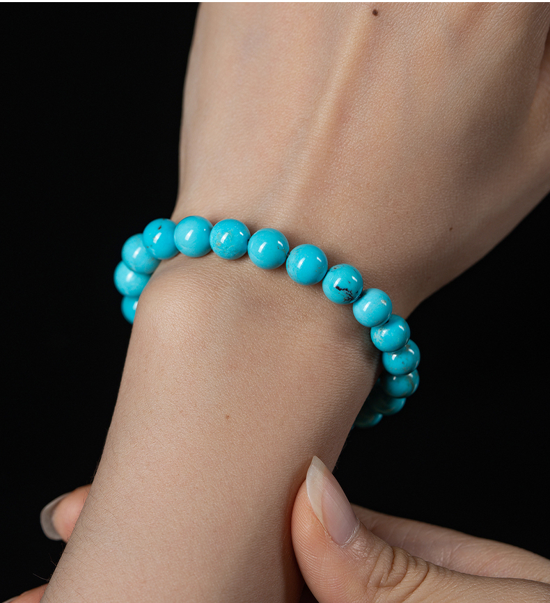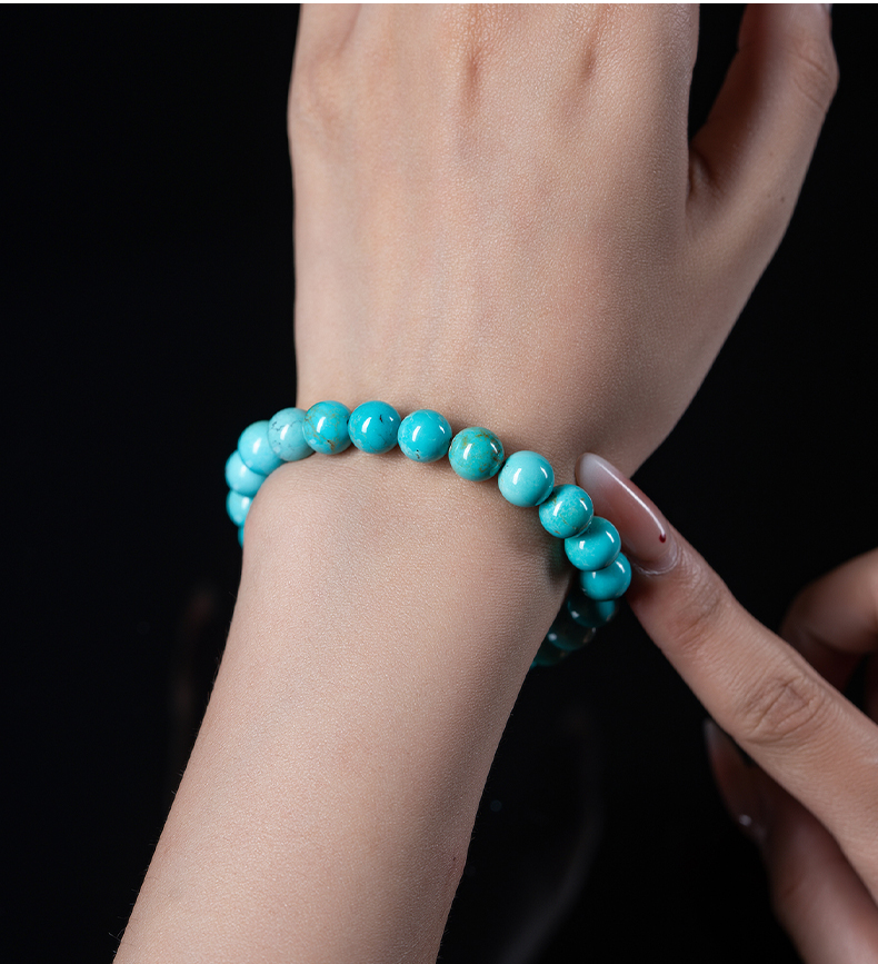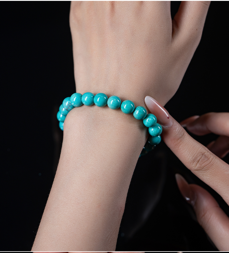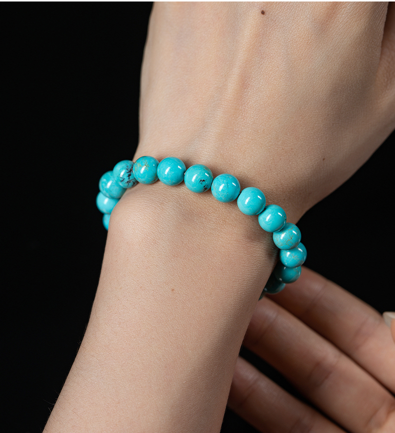 Su Xiaobei Hubei Natural Raw Turquoise Bracelet Single Circle Round Bead Bracelet High Porcelain Jelly Jade Material Unisex