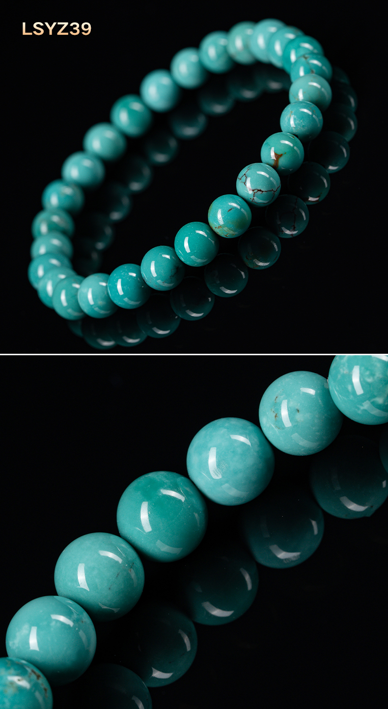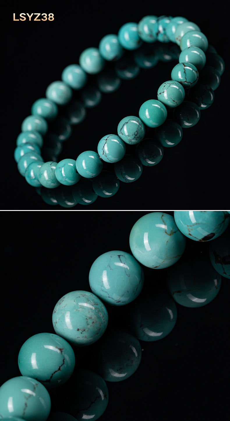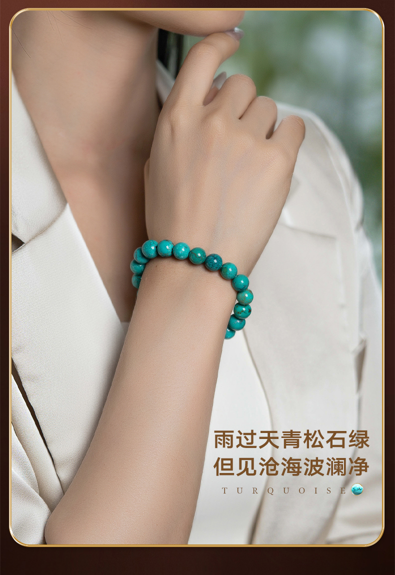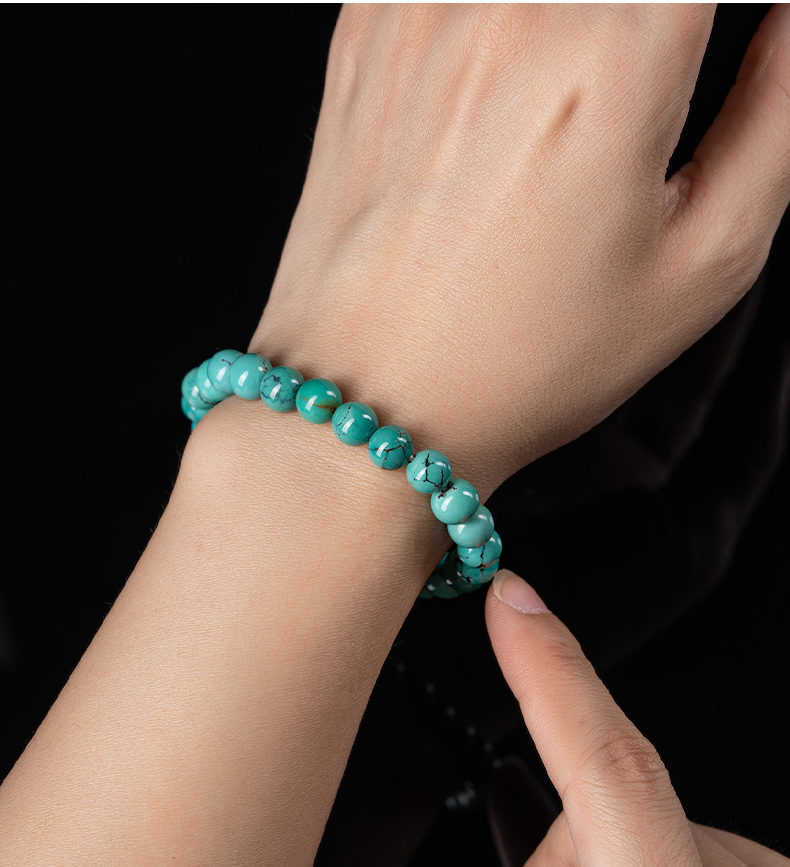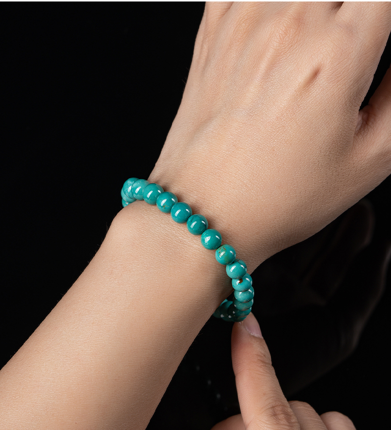 Su Xiaobei Hubei Natural Raw Turquoise Bracelet Single Circle Round Bead Bracelet High Porcelain Jelly Jade Material Unisex
