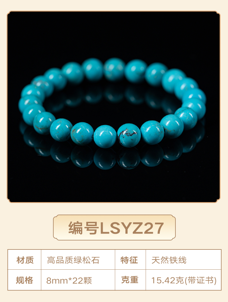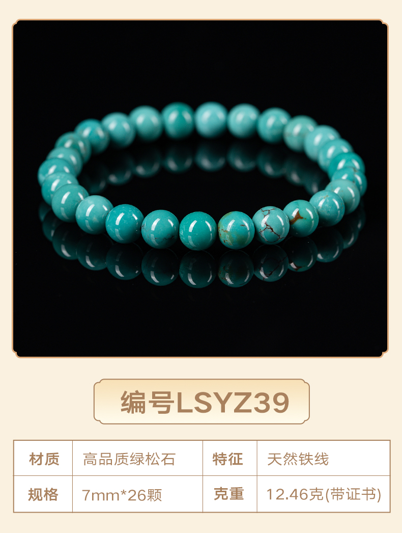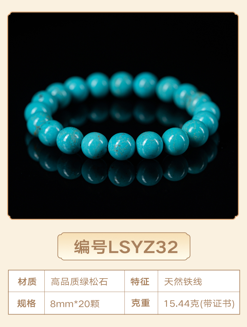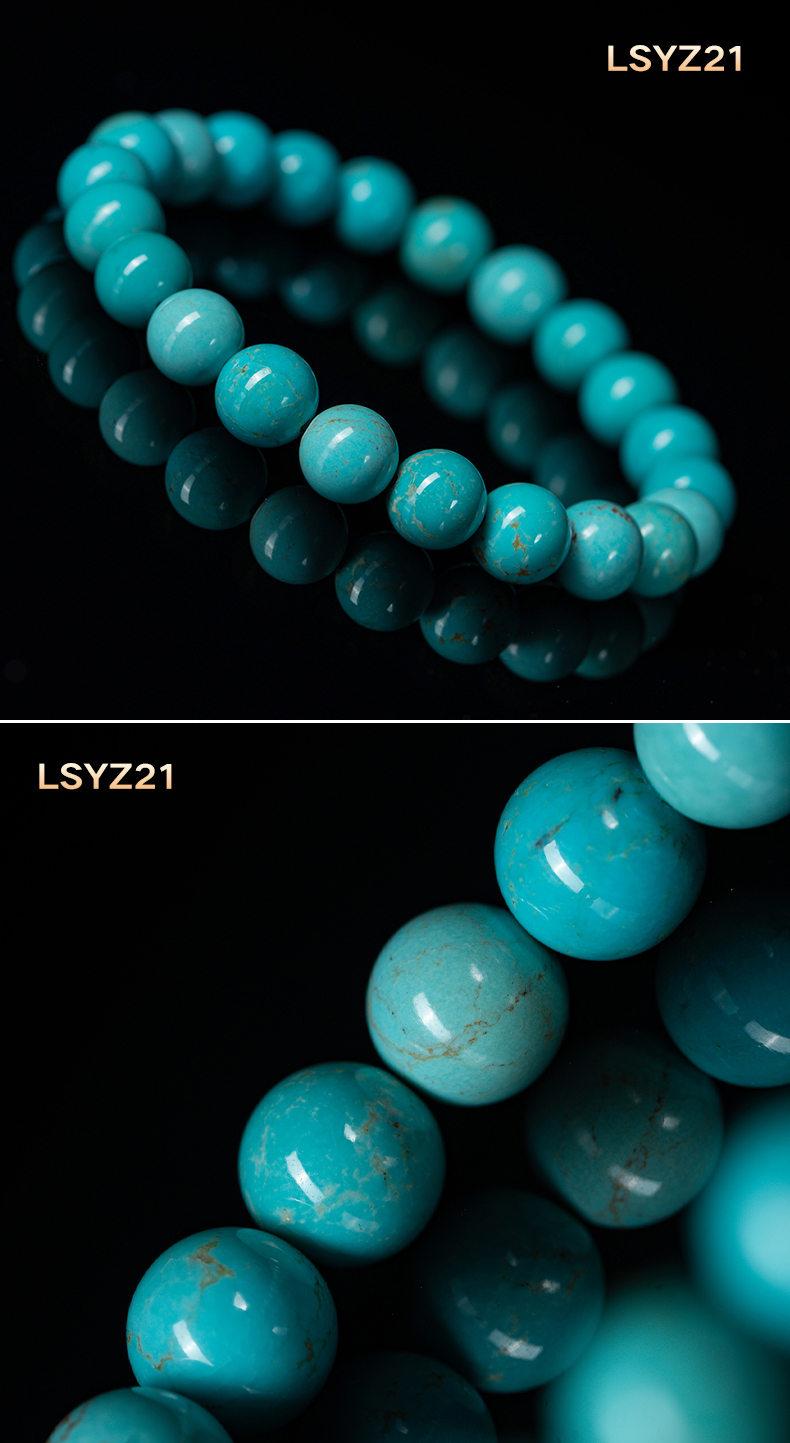 Su Xiaobei Hubei Natural Raw Turquoise Bracelet Single Circle Round Bead Bracelet High Porcelain Jelly Jade Material Unisex