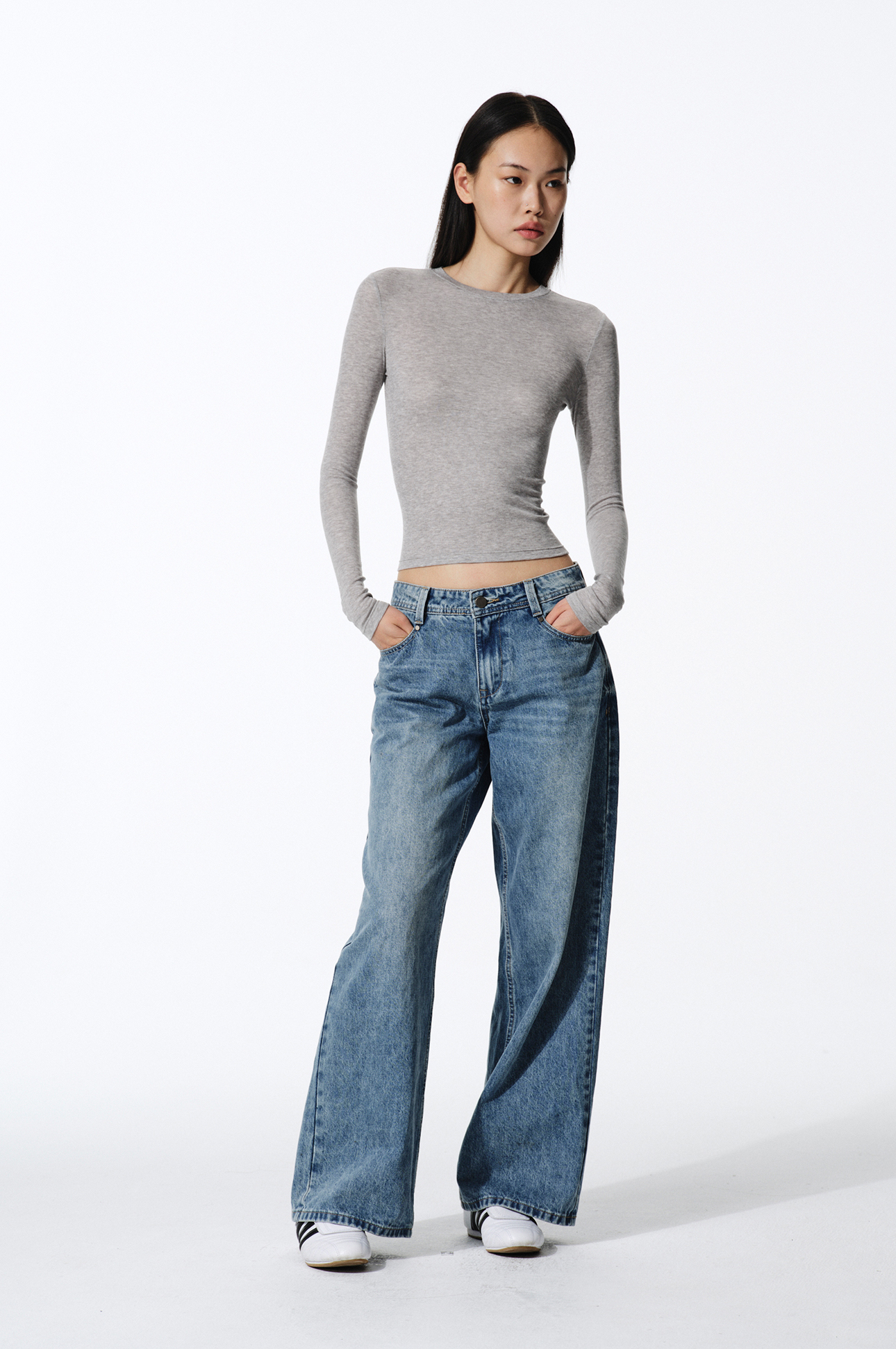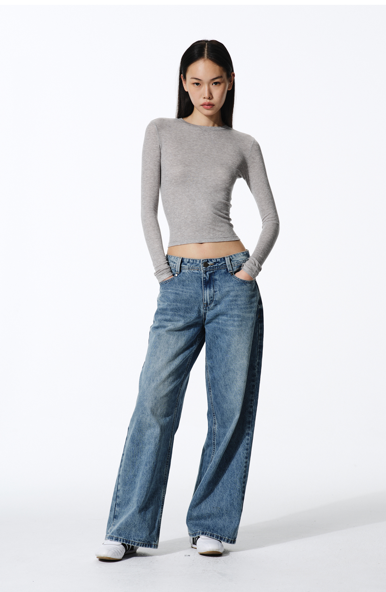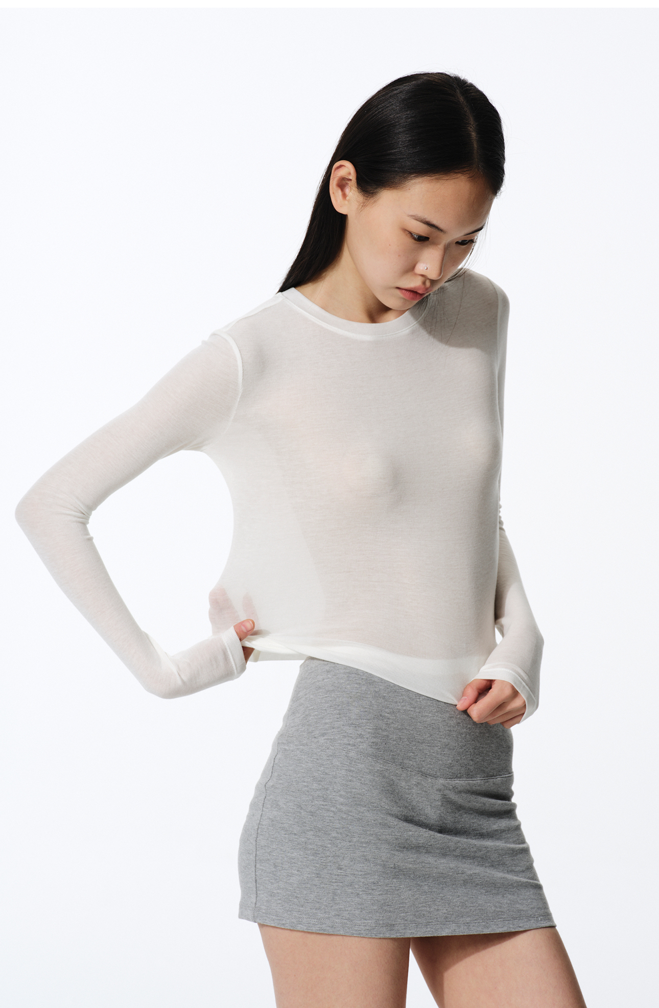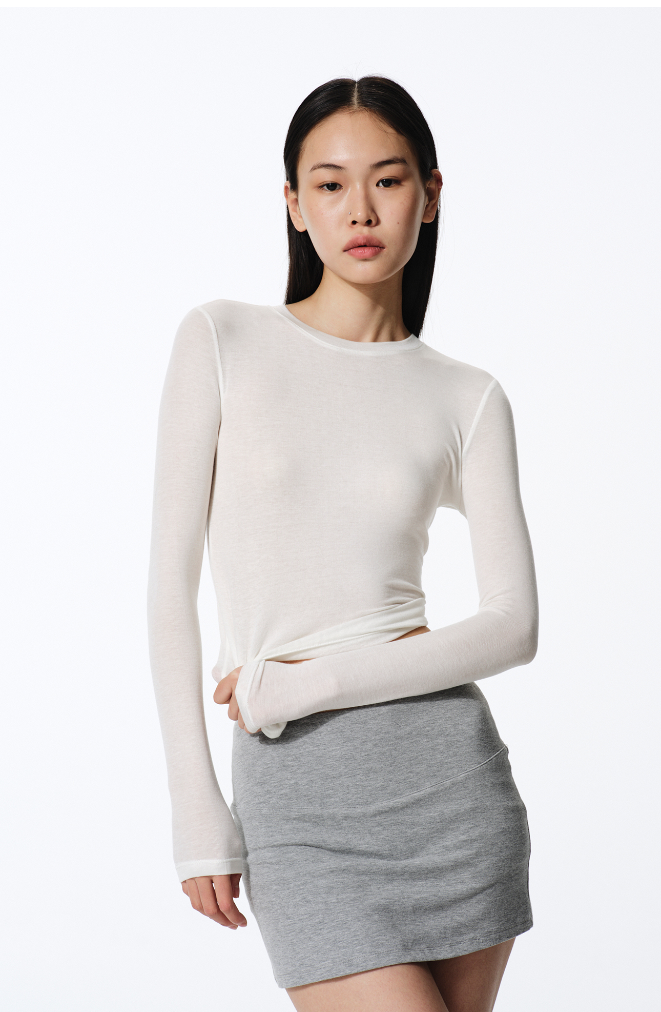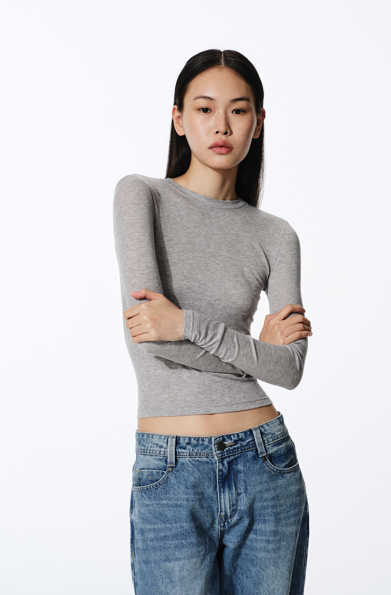 Asomesome American-Style Tencel Wool Slightly See-Through Long-Sleeve T-Shirt for Women, Autumn Inner Layer Base Shirt, Gray Tight-Fitting Top