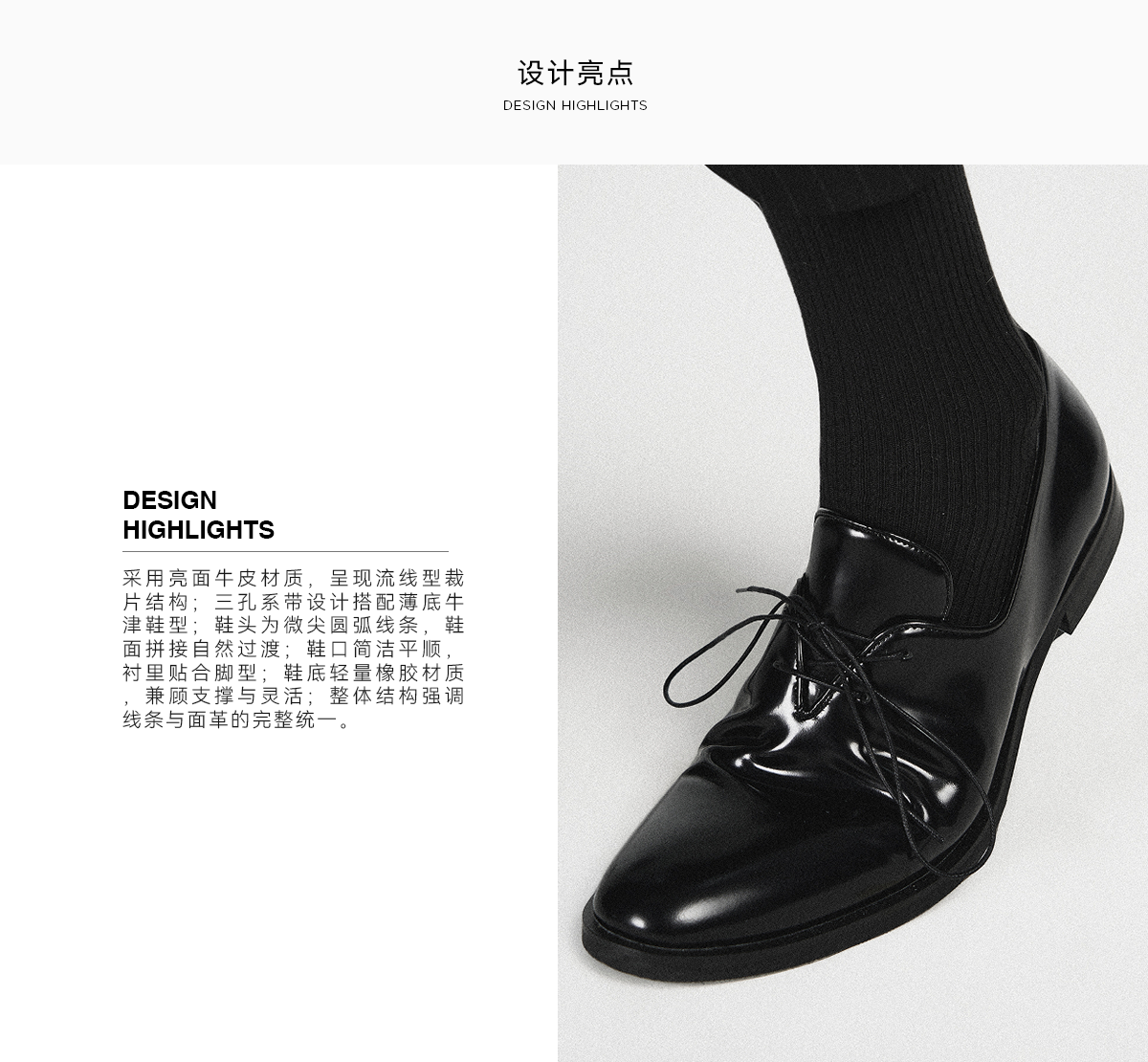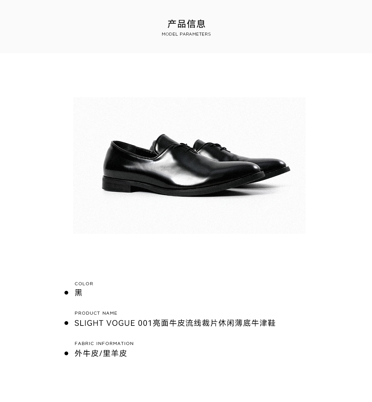Slight Vogue 001 Glossy Leather Streamlined Cut Casual Thin-Soled Oxford Shoes