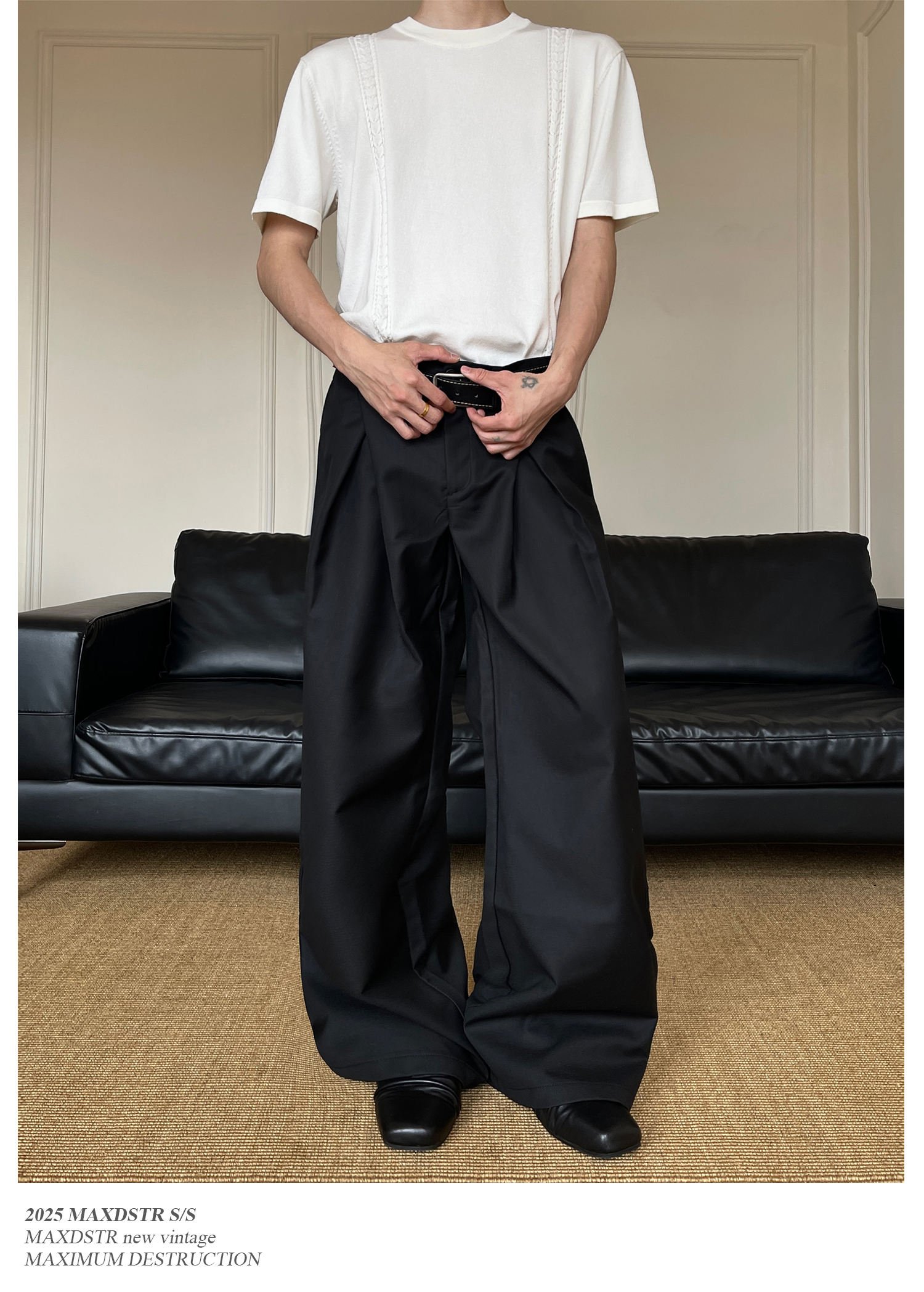 Maxdstr Stereo Double-Pleated A-Line Cleanfit Casual Trousers for Men and Women, American Old Money Style Long Pants, Trendy