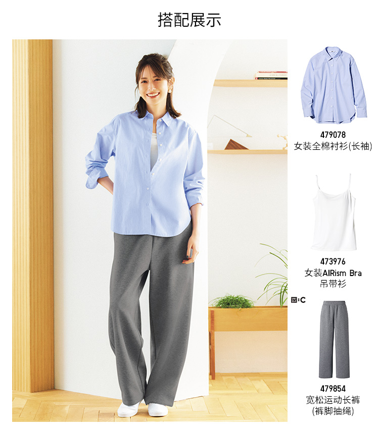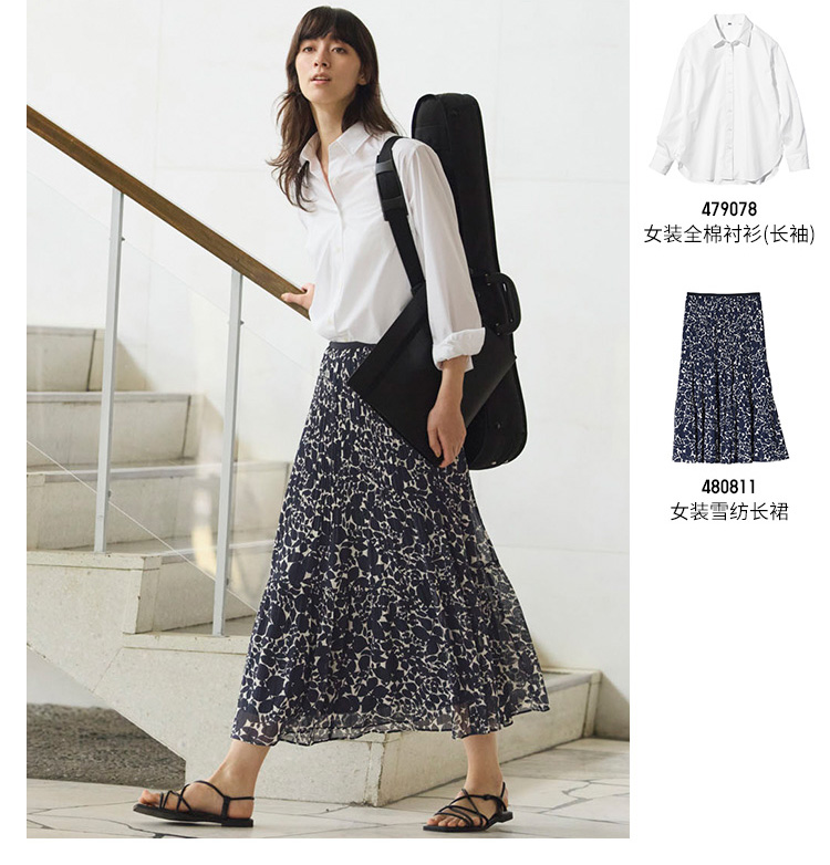 Uniqlo Women's Cotton Shirt/Long-Sleeved Shirt Thin Jacket Commuter Long-Staple Cotton New Style 479078