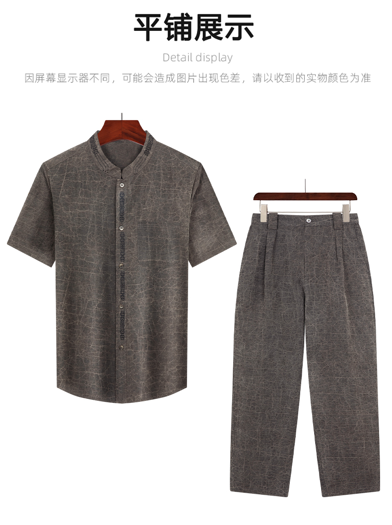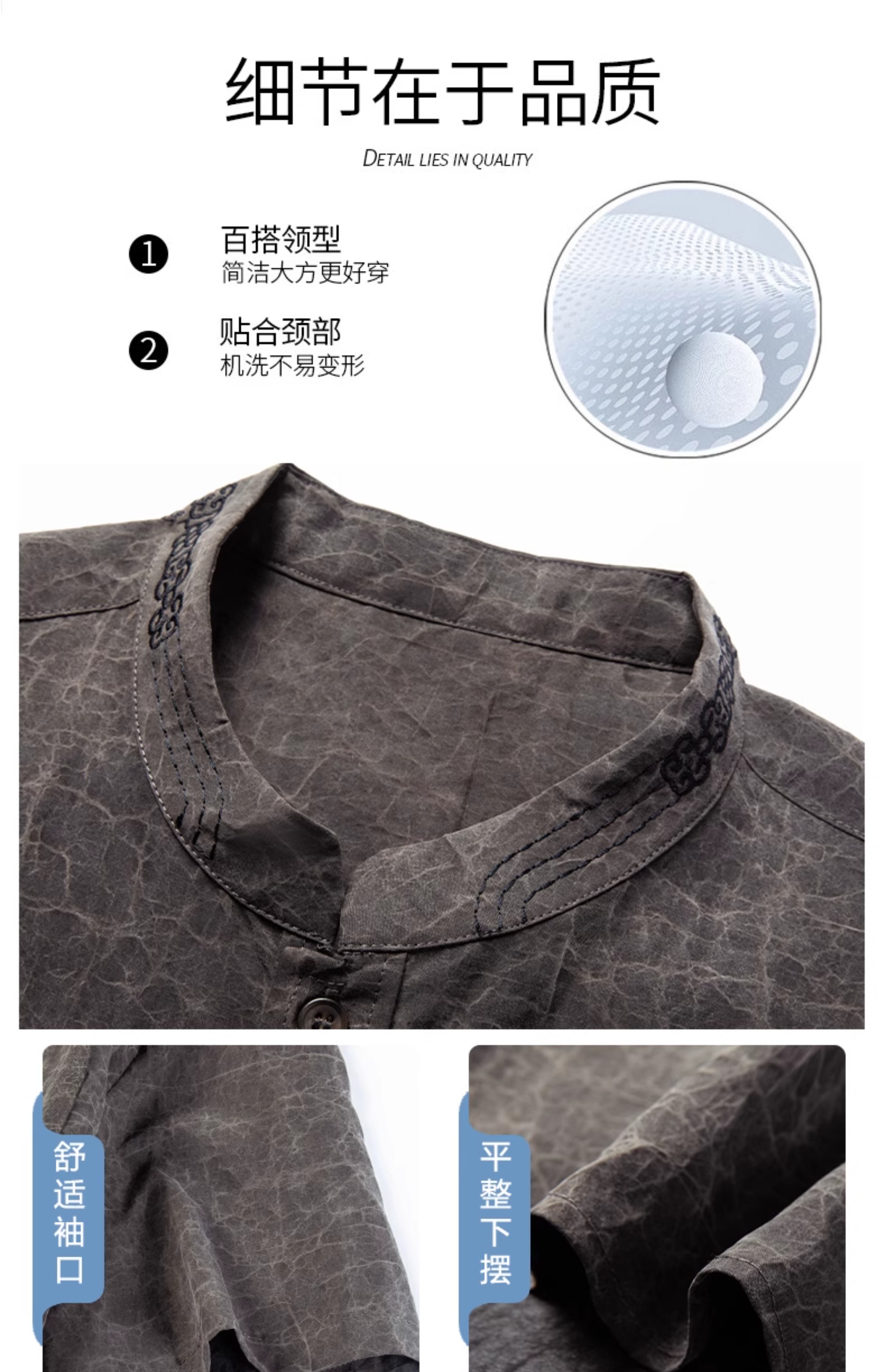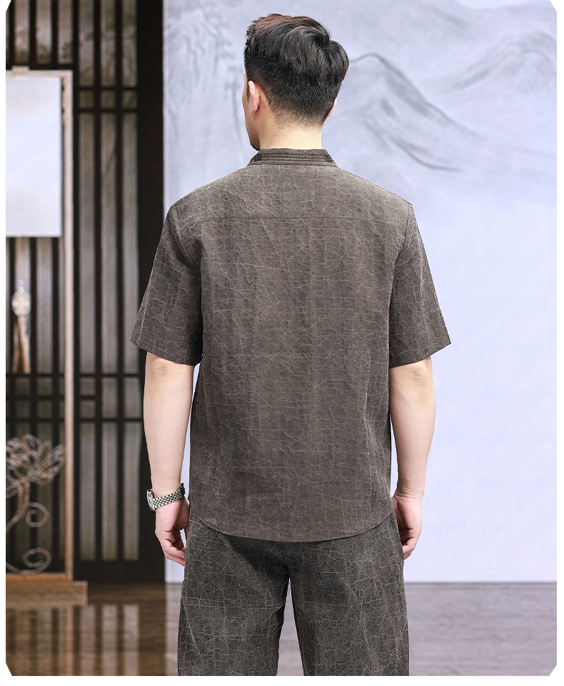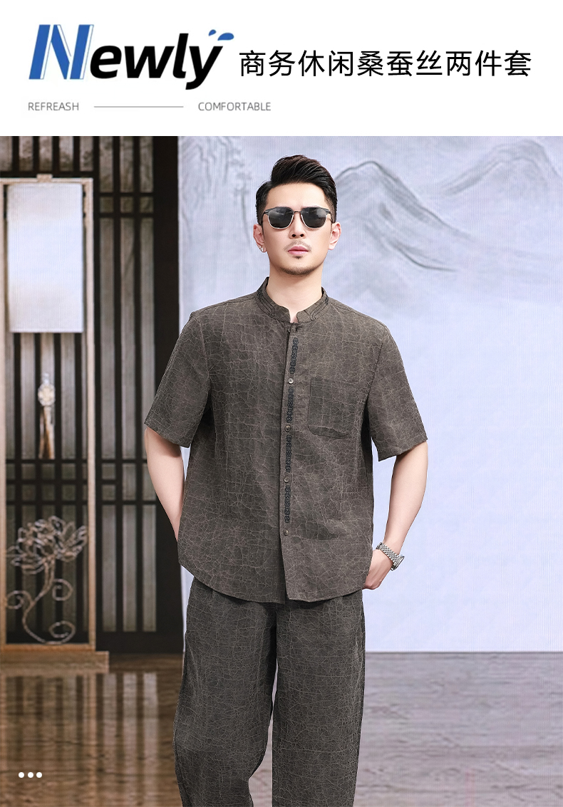 Romon Summer 100% Mulberry Silk Short-Sleeve Stand-Up Collar Shirt Tang Suit for Men, High-End Sand Turtle Silk Xiangyun Yarn New Chinese Style Suit