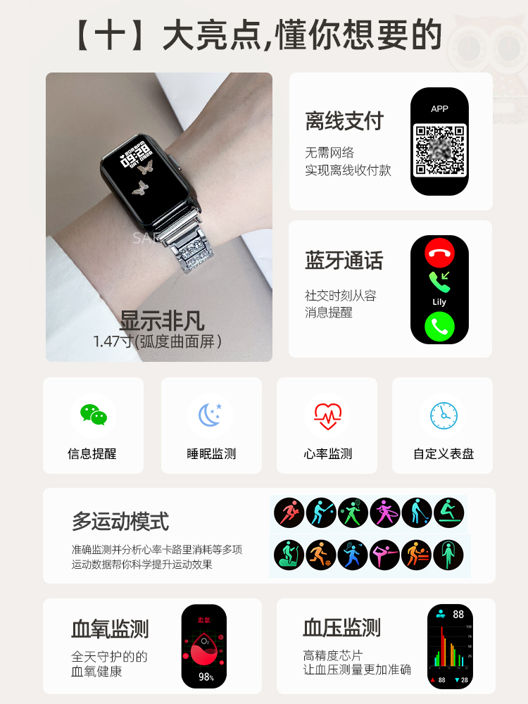 Women's Smart Sports Bracelet 9Pro Heart Rate Blood Pressure Multifunctional Payment Pedometer Watch 2025 New Model