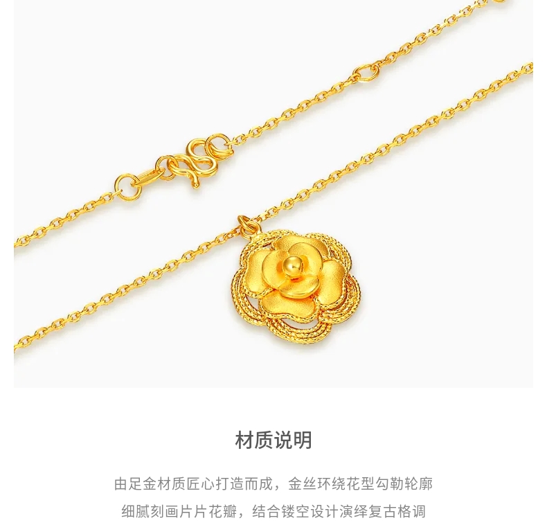 Lao Fengxiang Vintage Blooming Rose Gold Pure Gold Necklace for Women Gift - Price Calculation