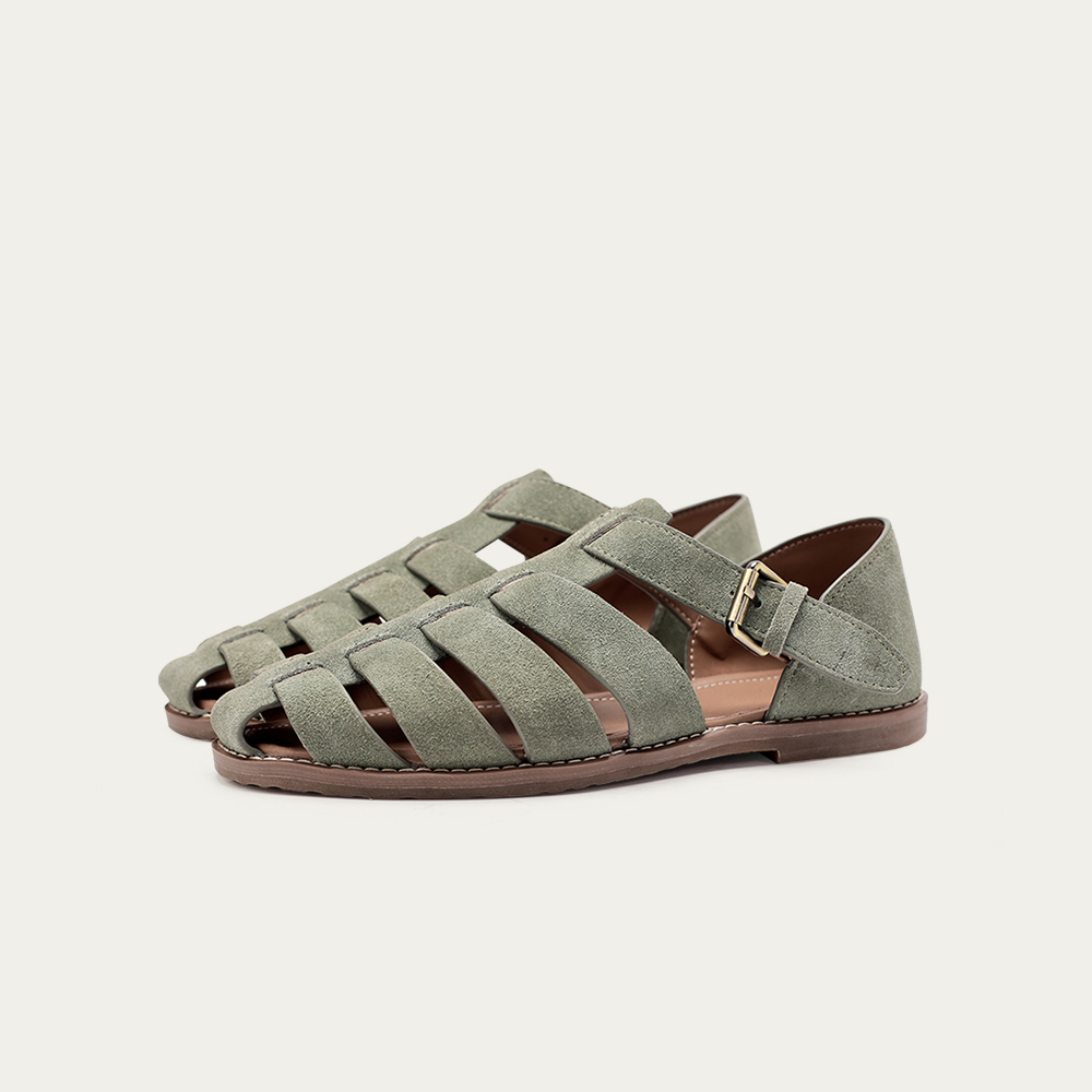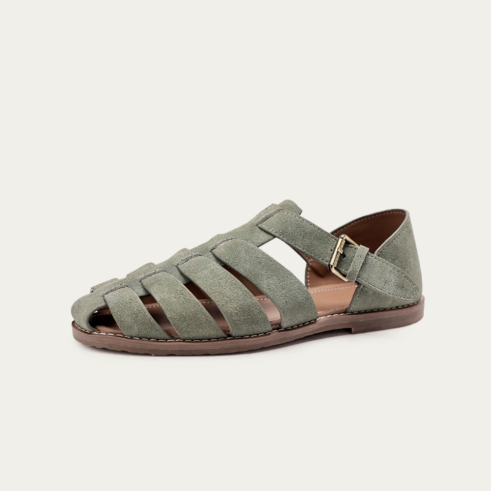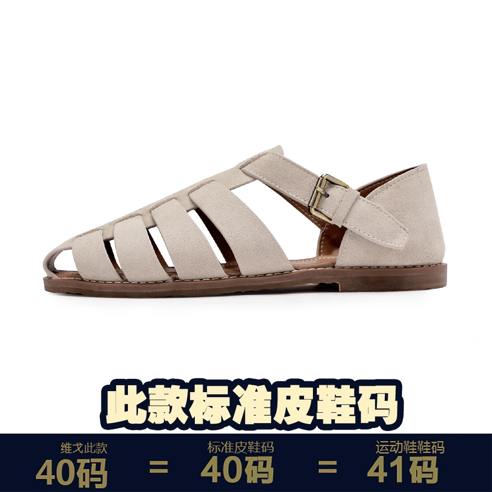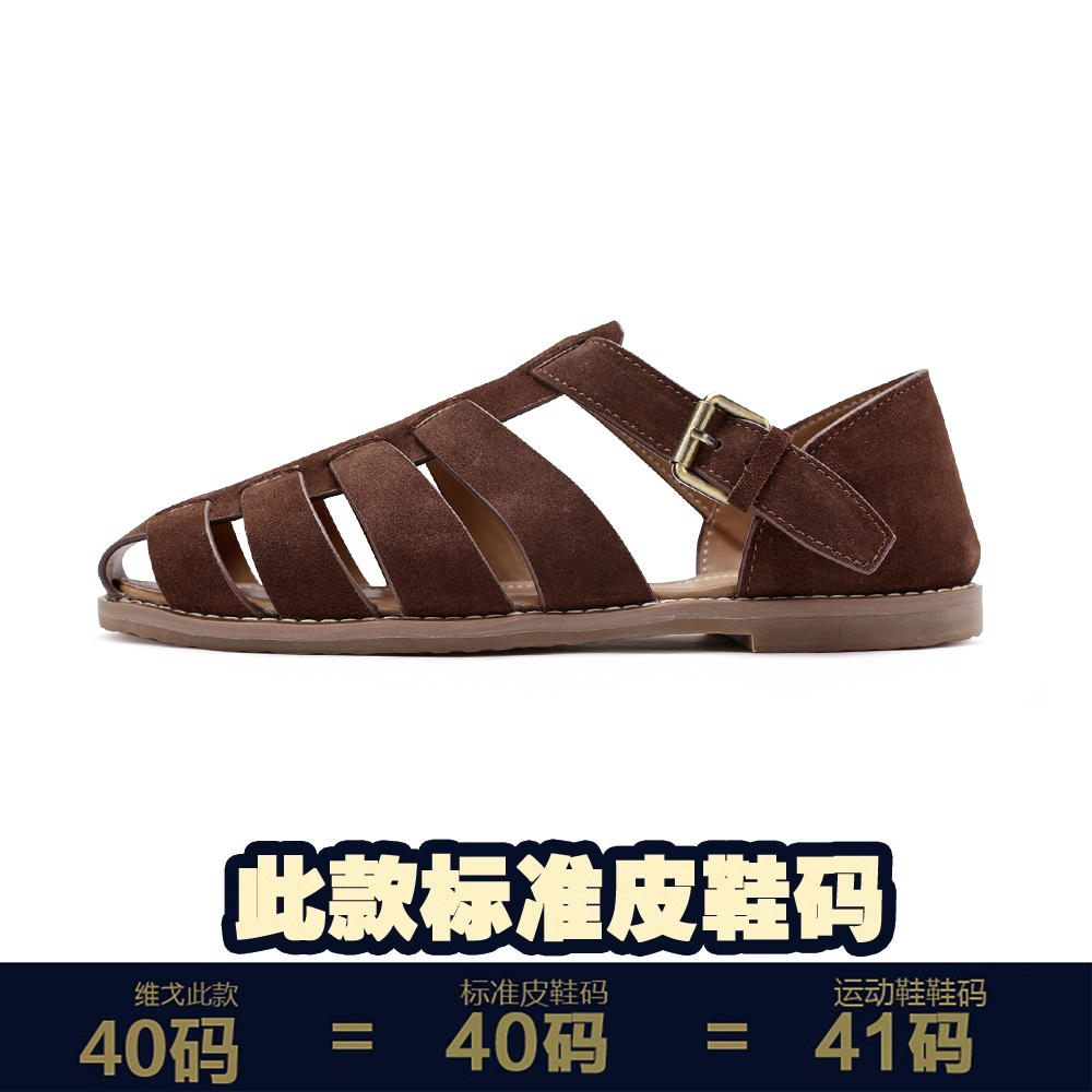 Summer Genuine Leather Breathable Casual Sandals for Men, Retro Business Hollow Toe Shoes, Fashionable Flat Roman Beach Shoes, Trendy