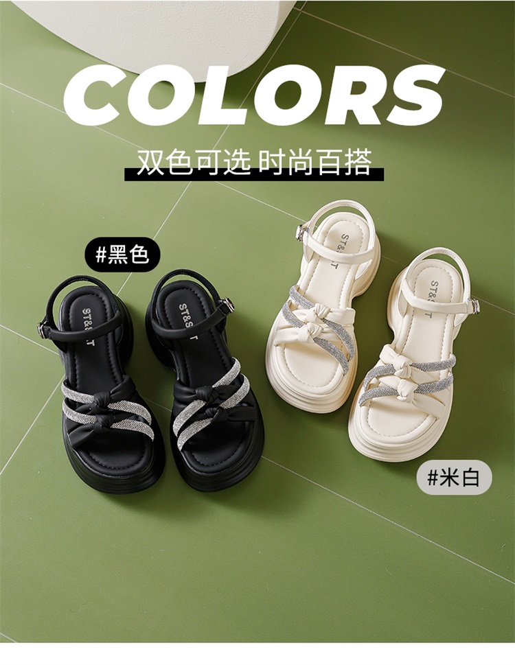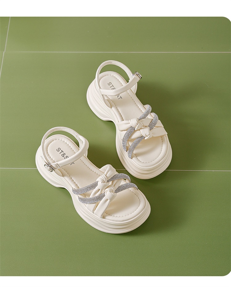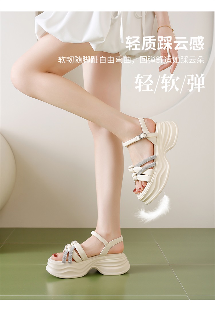 Saturday Fairy Style Sandals for Women 2025 New Summer Rhinestone Sandals to Match Dresses, Single Strap Thick-Soled Beach Roman Shoes
