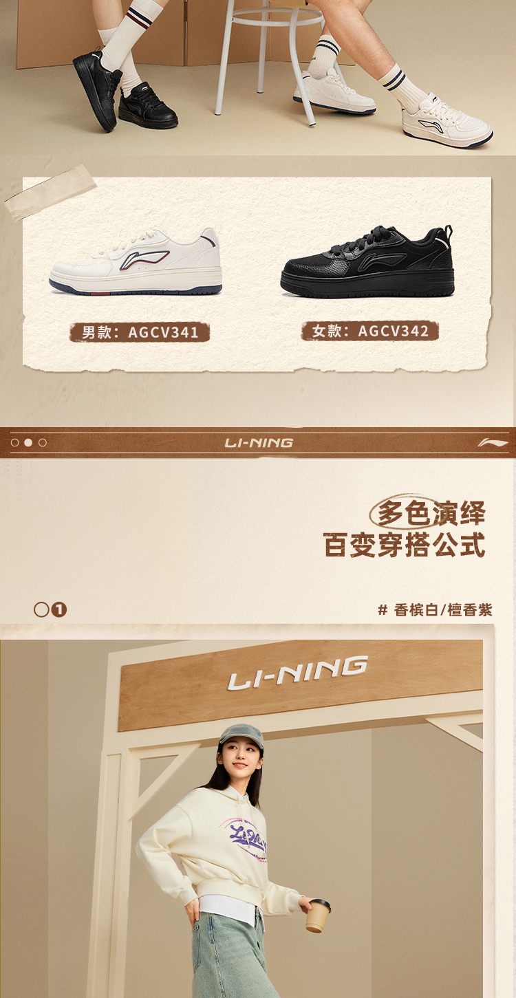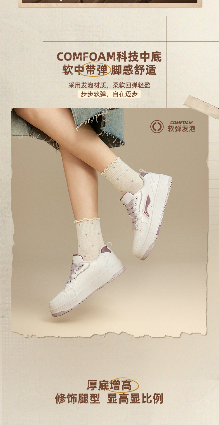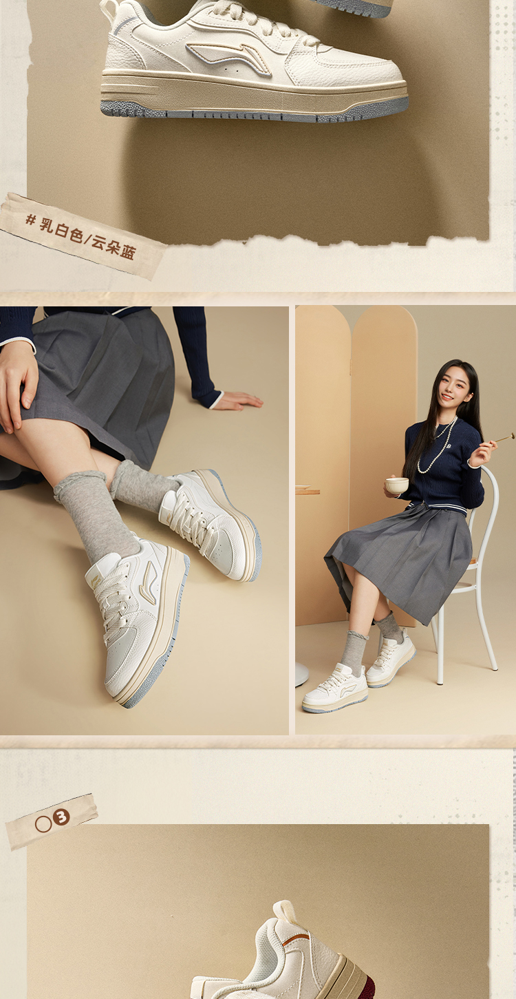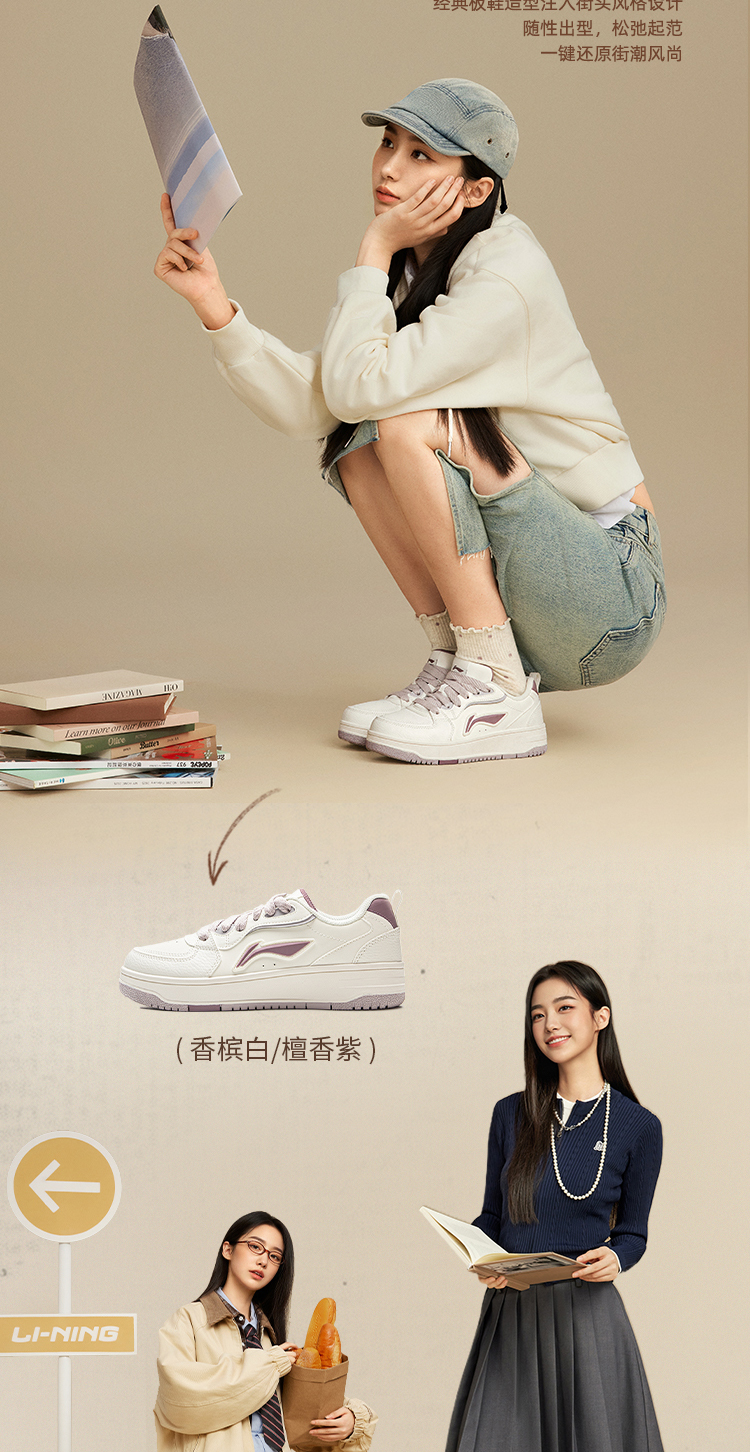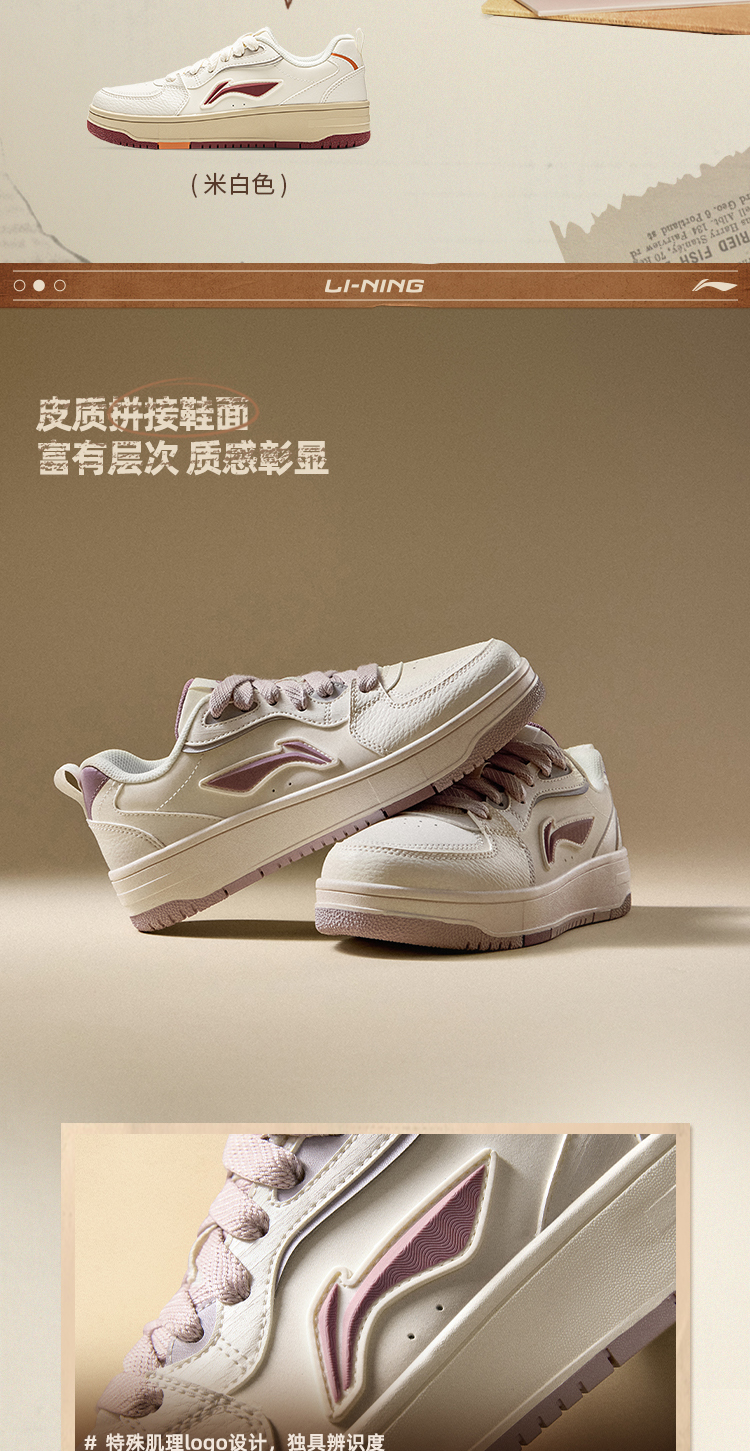 Li-Ning Tianji Soft | Casual Shoes for Women, Autumn and Winter New Classic Retro Sneakers, Comfortable White Sneakers