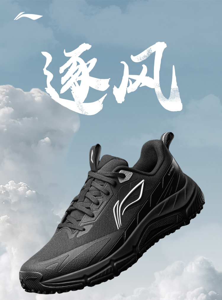 Li-Ning Zufeng丨 Trail Running Shoes Men's New Outdoor Hiking and Mountaineering Shoes Shock-Absorbing Wear-Resistant Black Sports Shoes