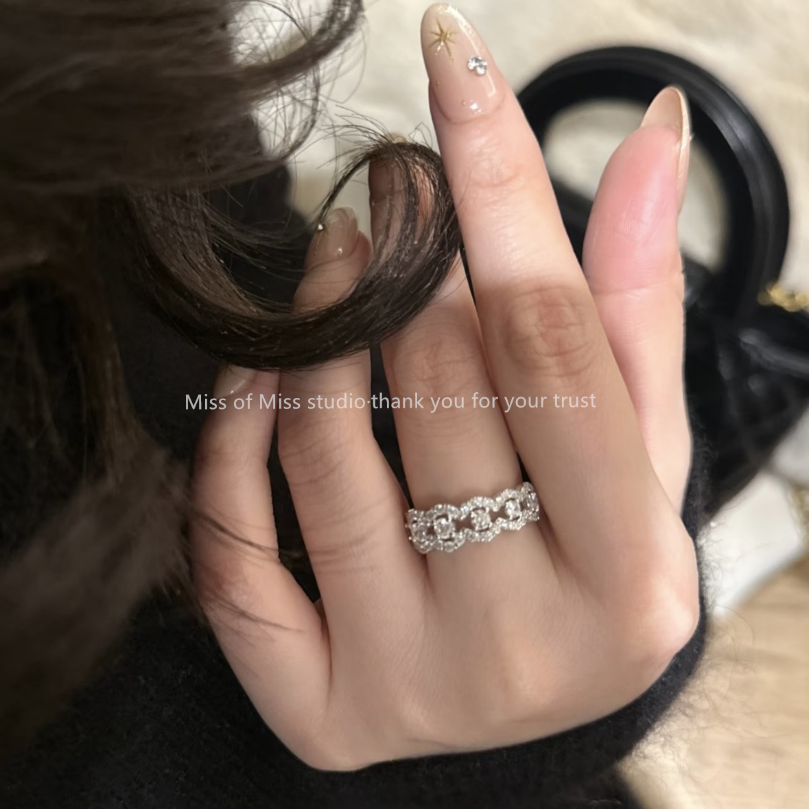 【Va Lace】Openwork Starry Sky Sterling Silver Ring 925 Silver Full of Diamonds Exquisite Light Luxury'Best Affordable Alternative'