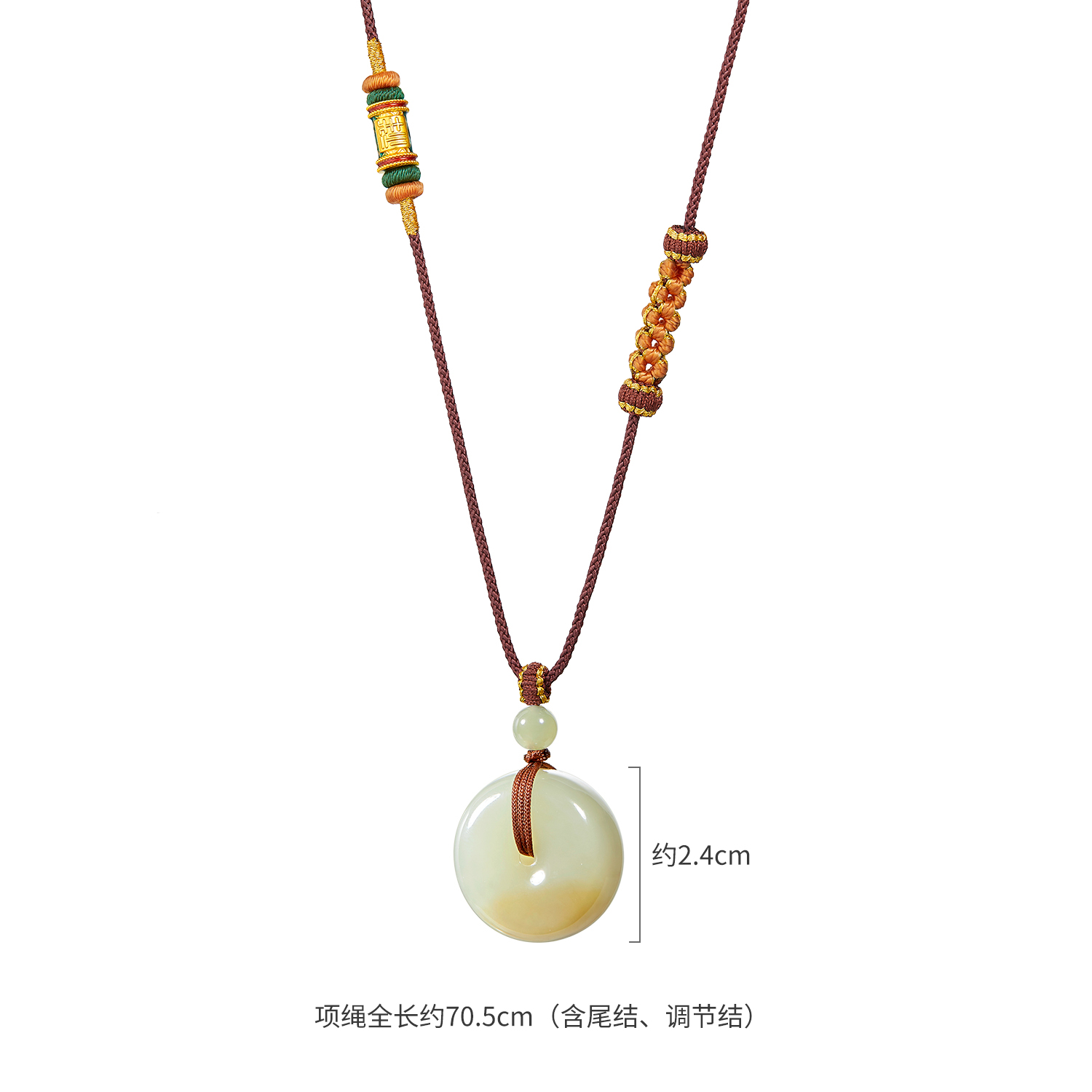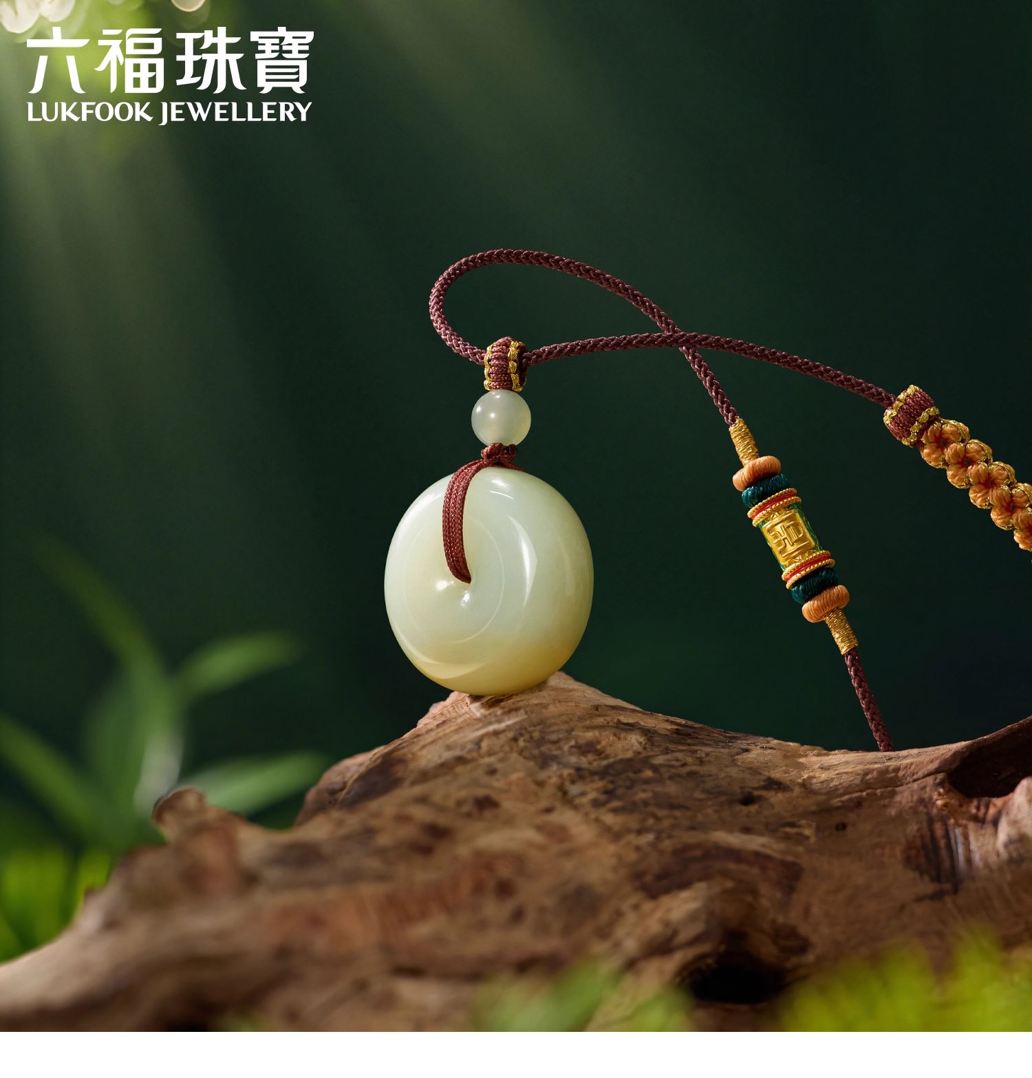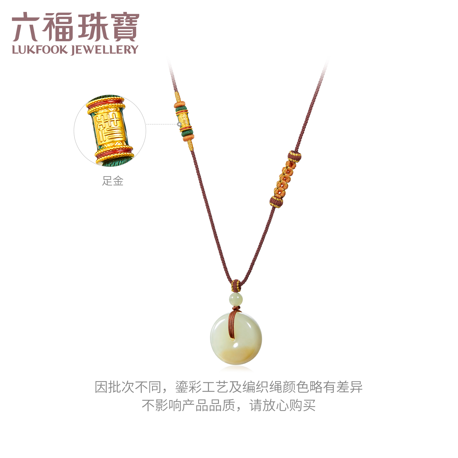 Liu Fu Jewelry Hetian Jade Peace Pendant Gold Necklace for Women with Colorful 5D Hard Gold Road to Success L74A0001Ds