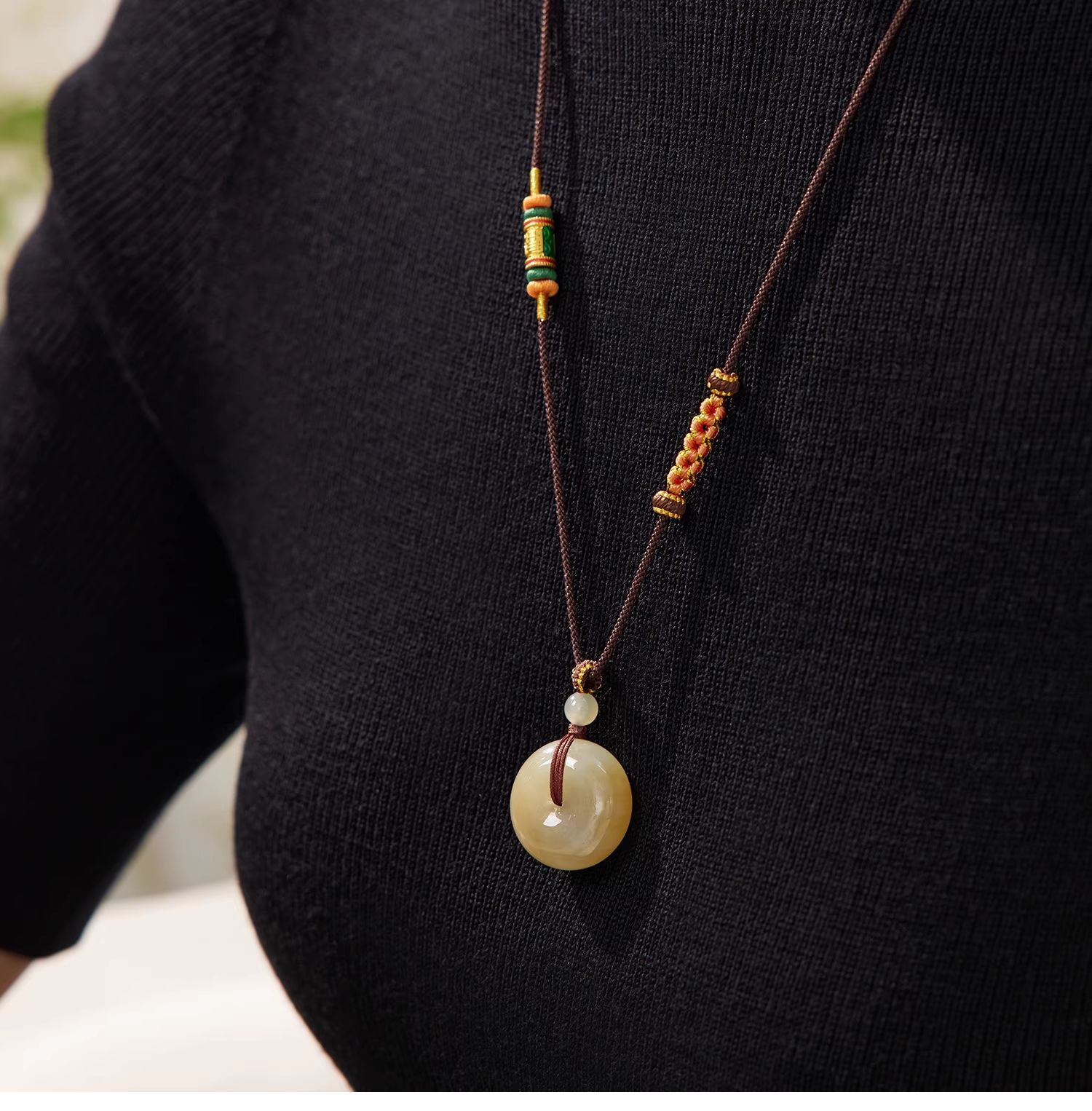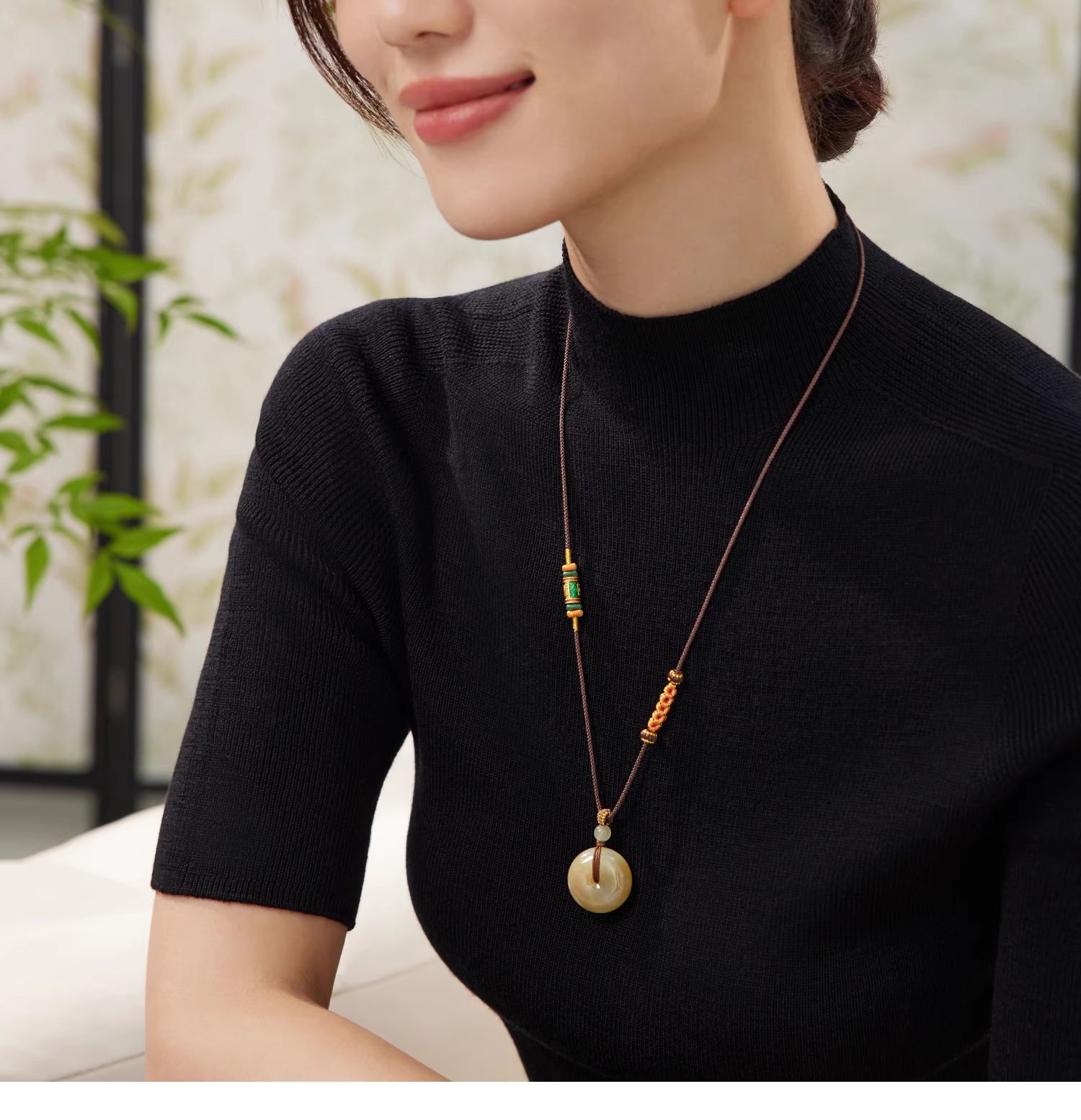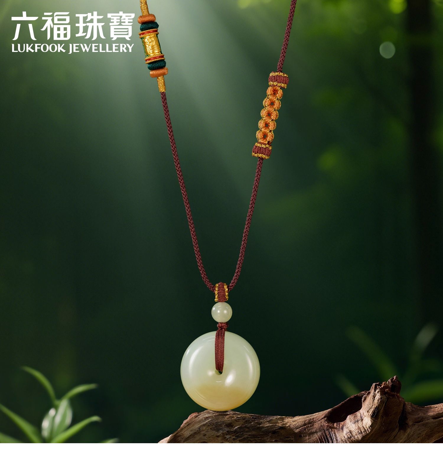 Liu Fu Jewelry Hetian Jade Peace Pendant Gold Necklace for Women with Colorful 5D Hard Gold Road to Success L74A0001Ds