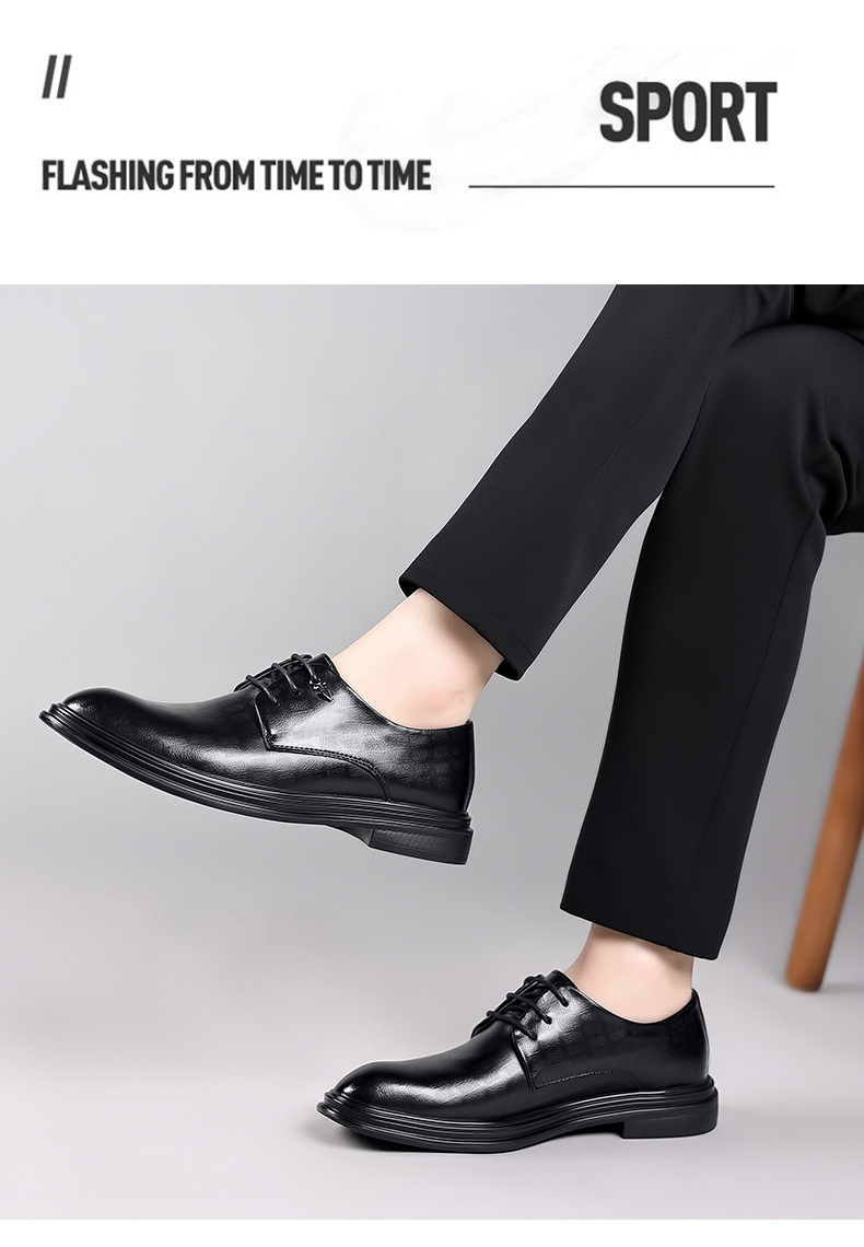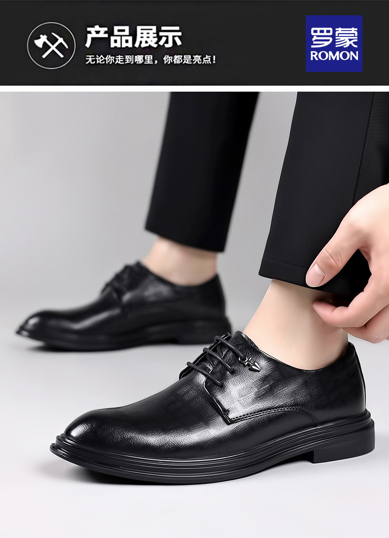 Romon Men's Leather Shoes 2025 New Winter Height-Increasing Business Formal Wear Men's Black Soft-Soled Wedding Groom Shoes Rm