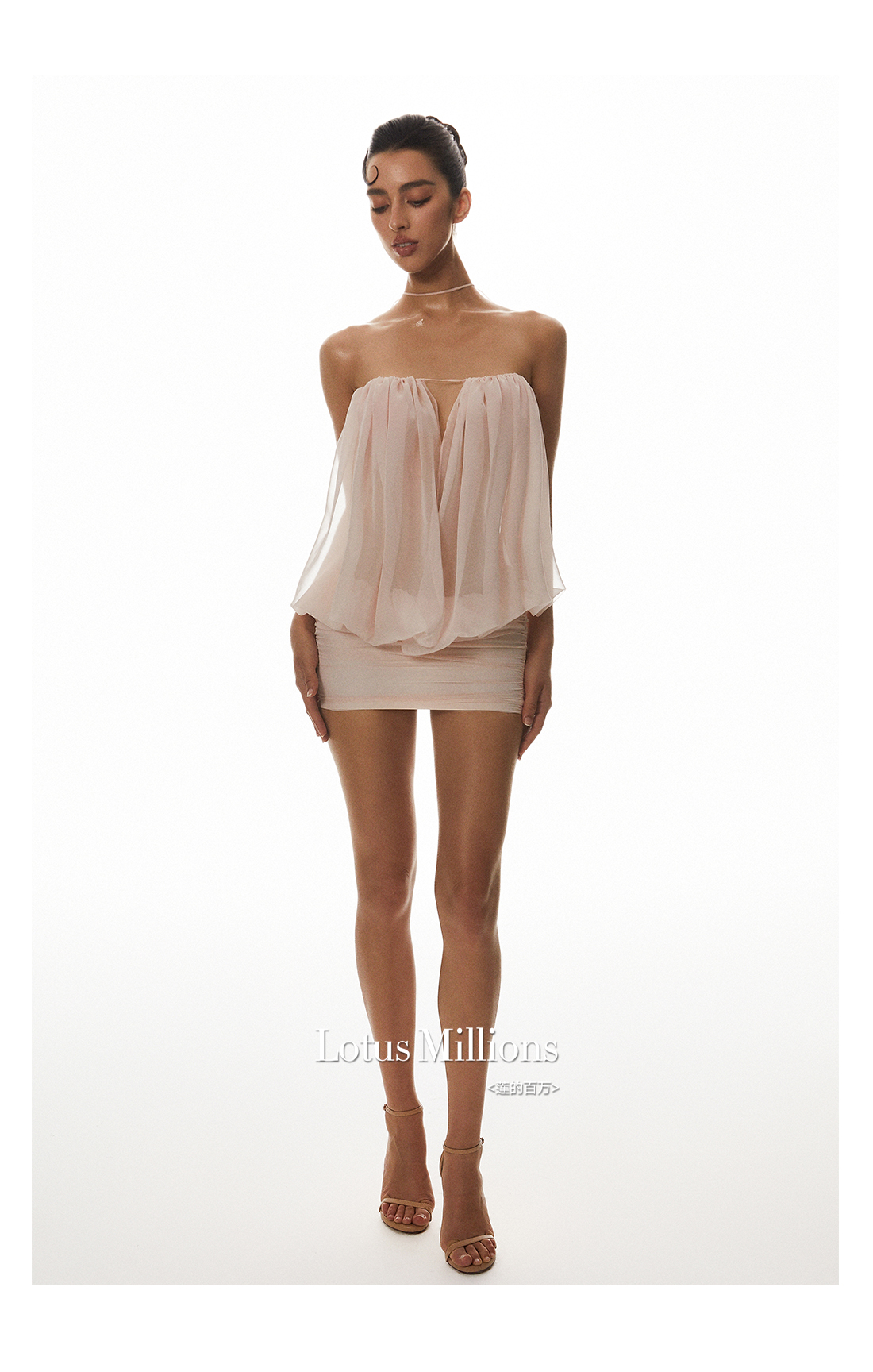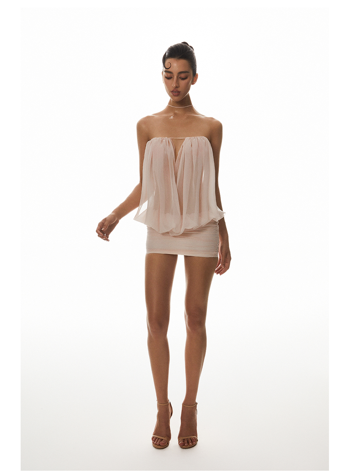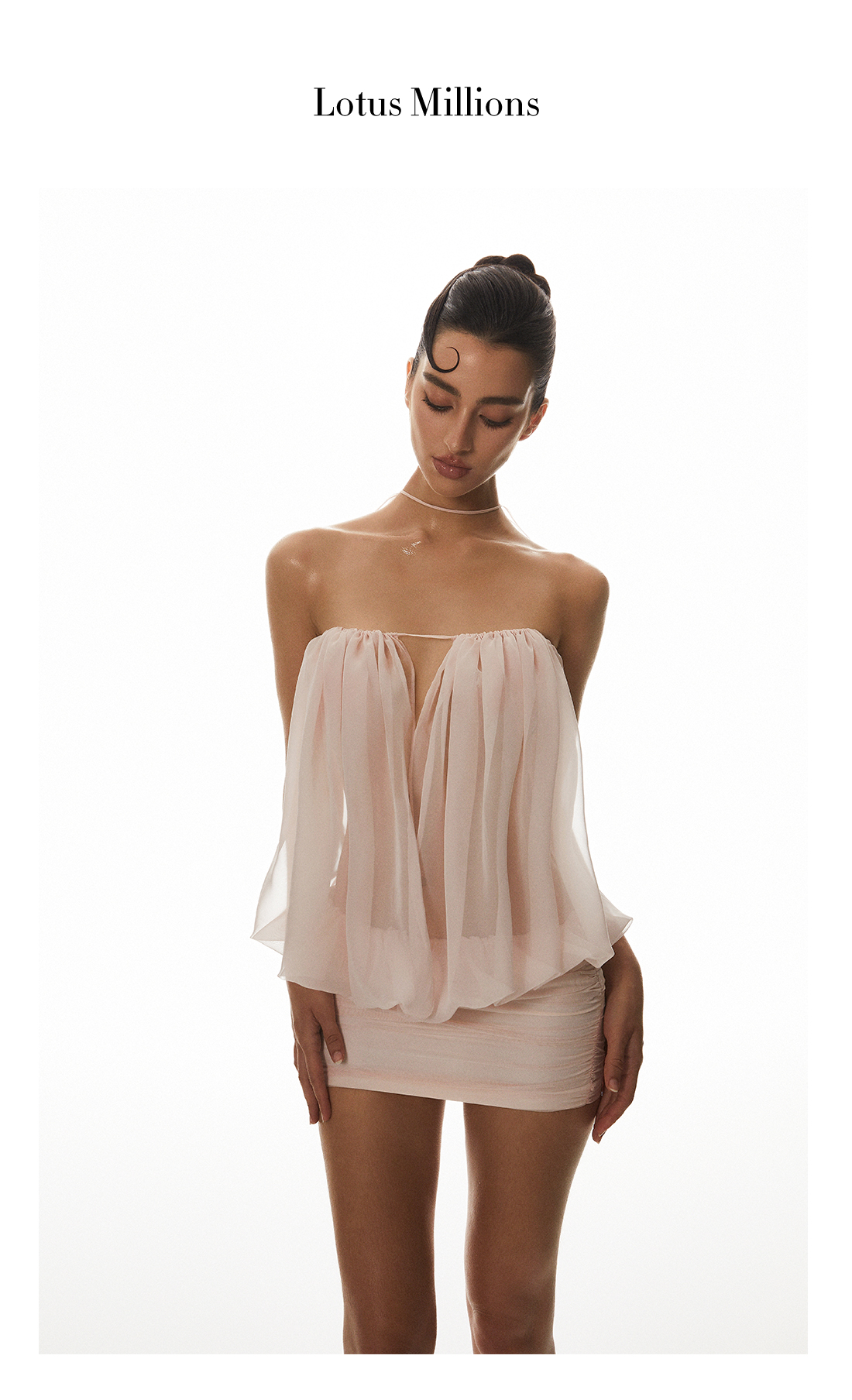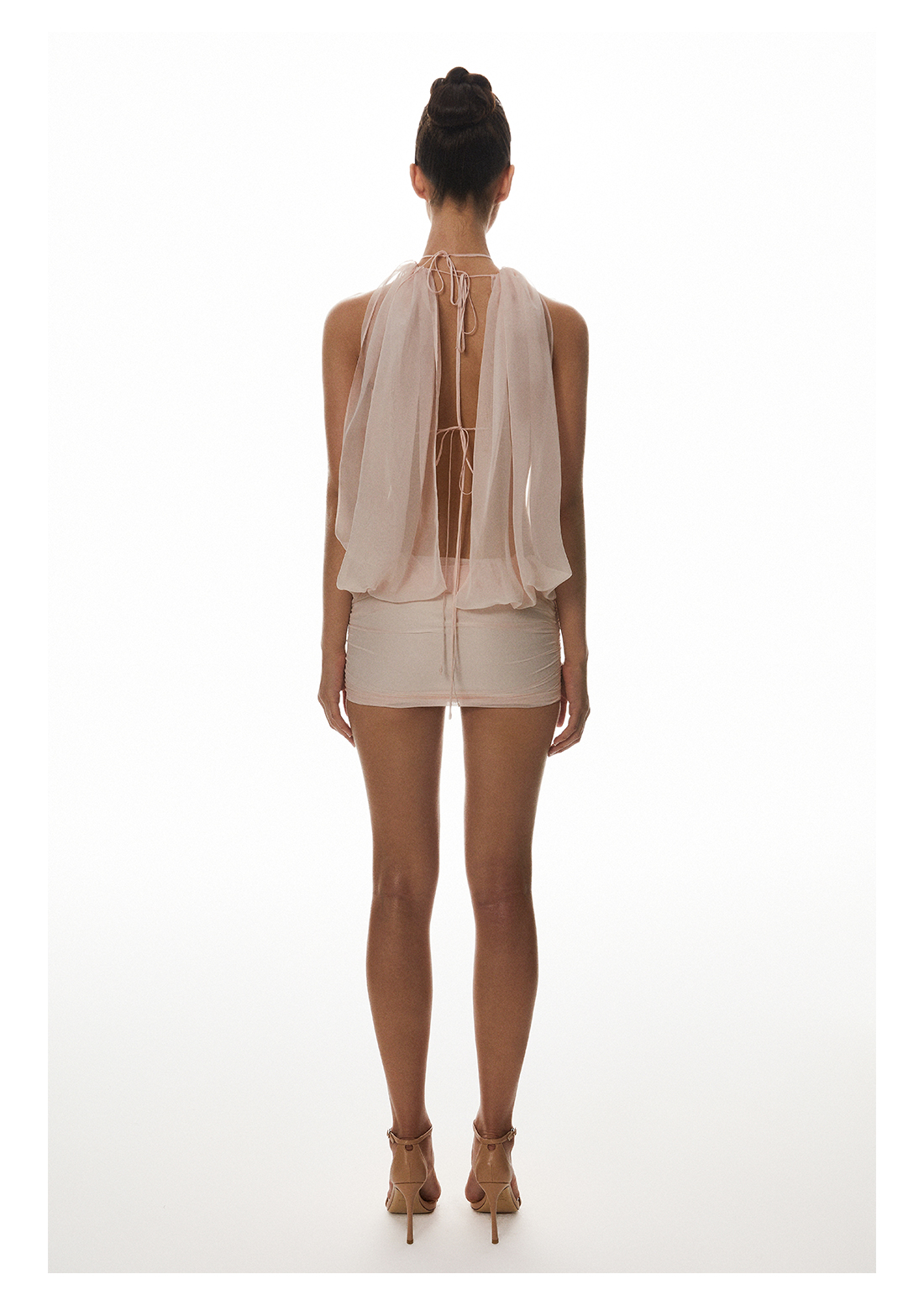 Lotus's Million Pure Desire Girl Sexy Sheer Nude Pink Halter Dress (Comes with Nude Invisible Bra)