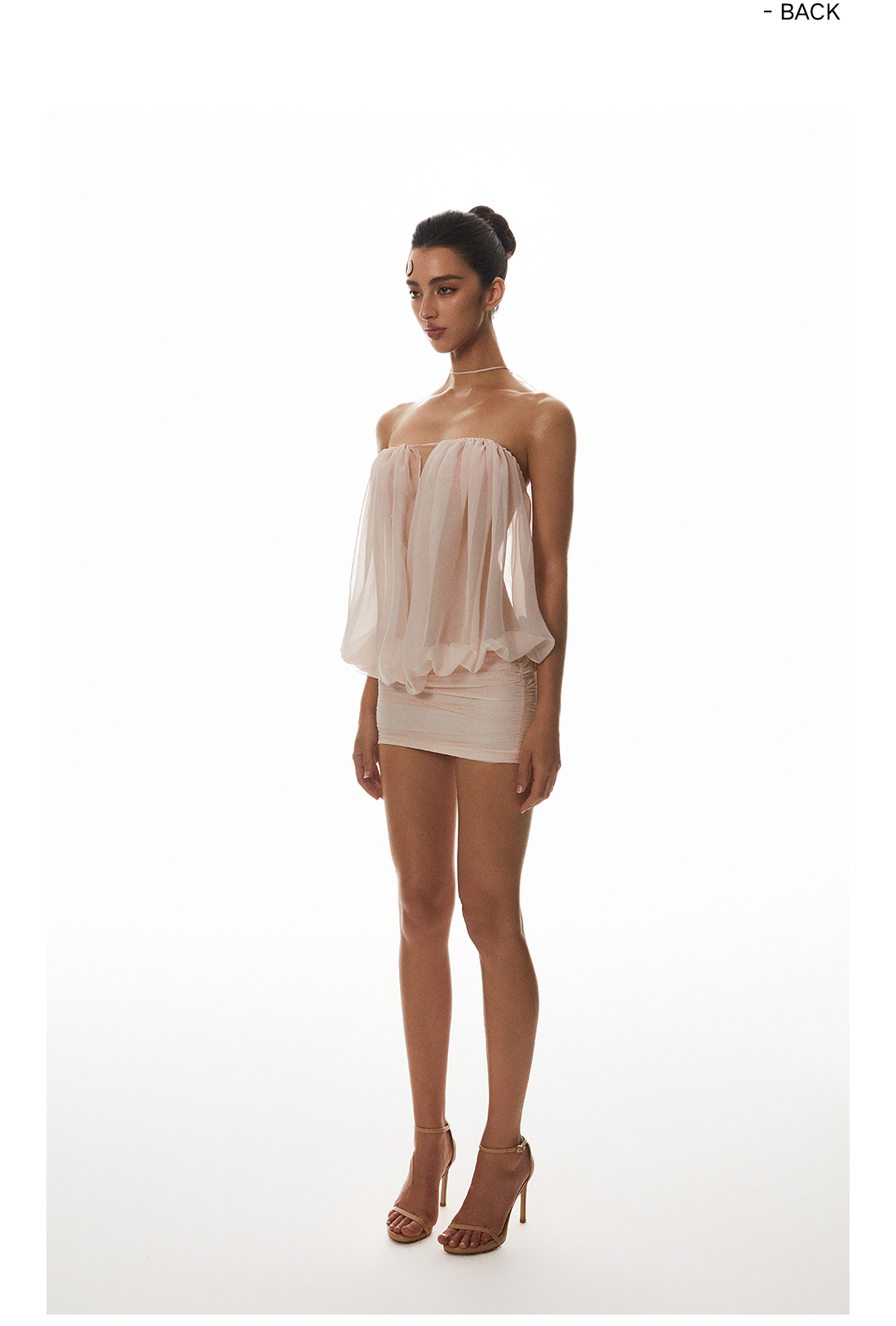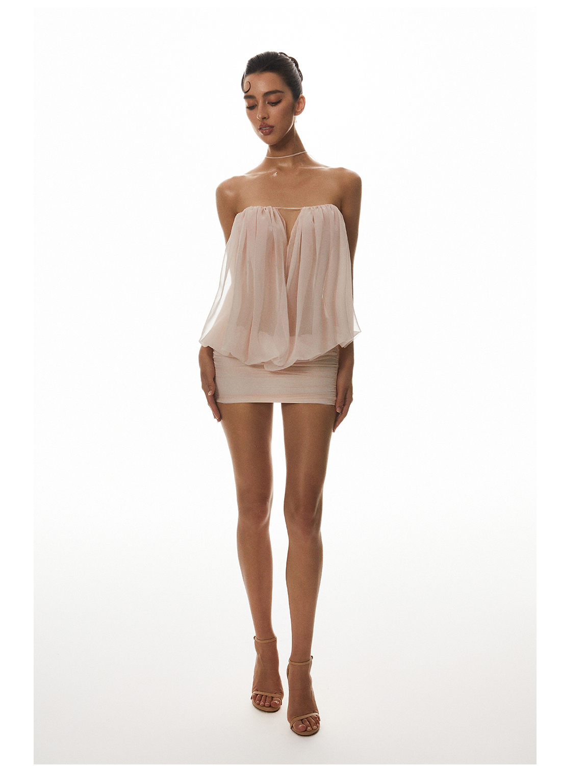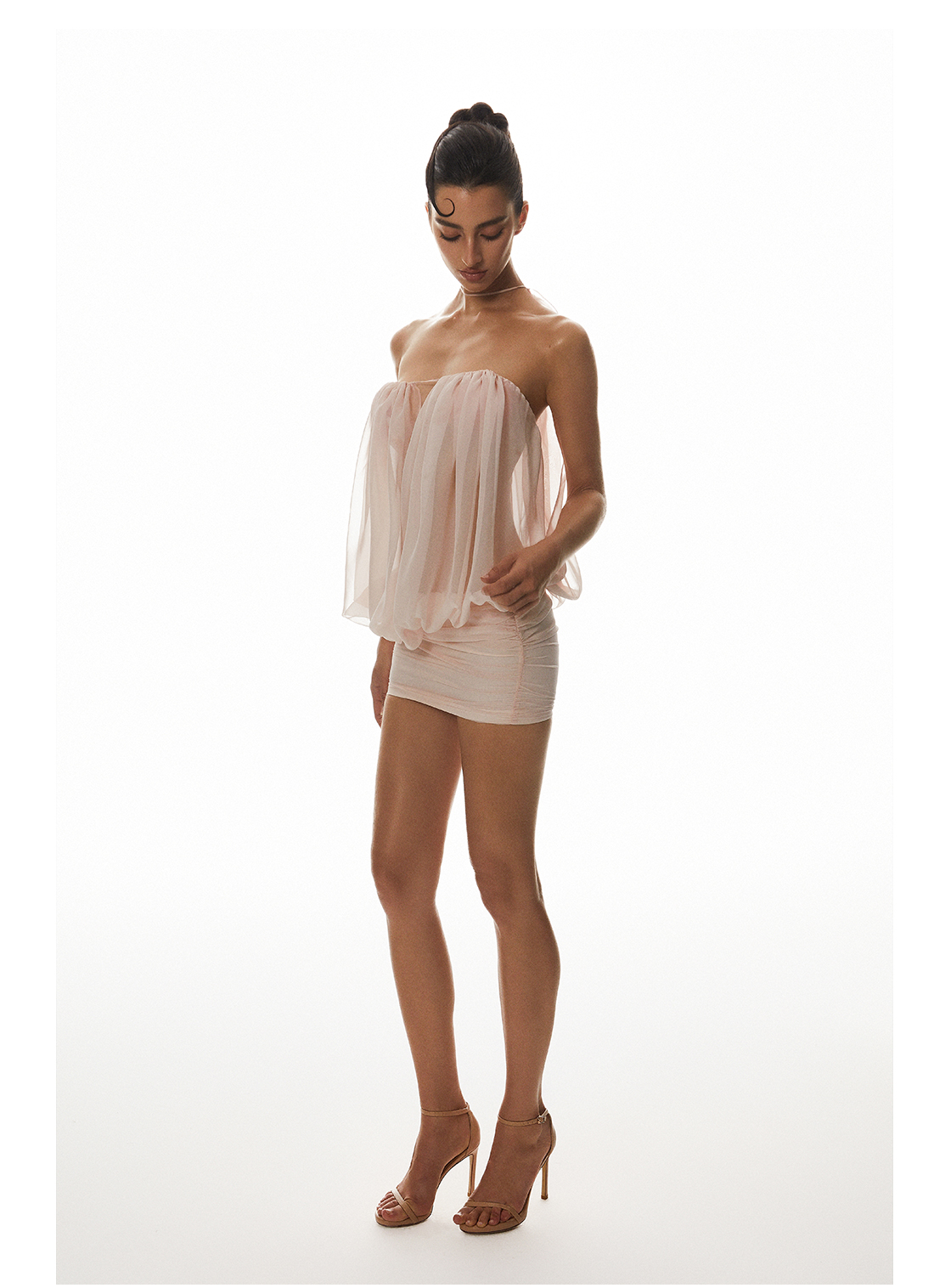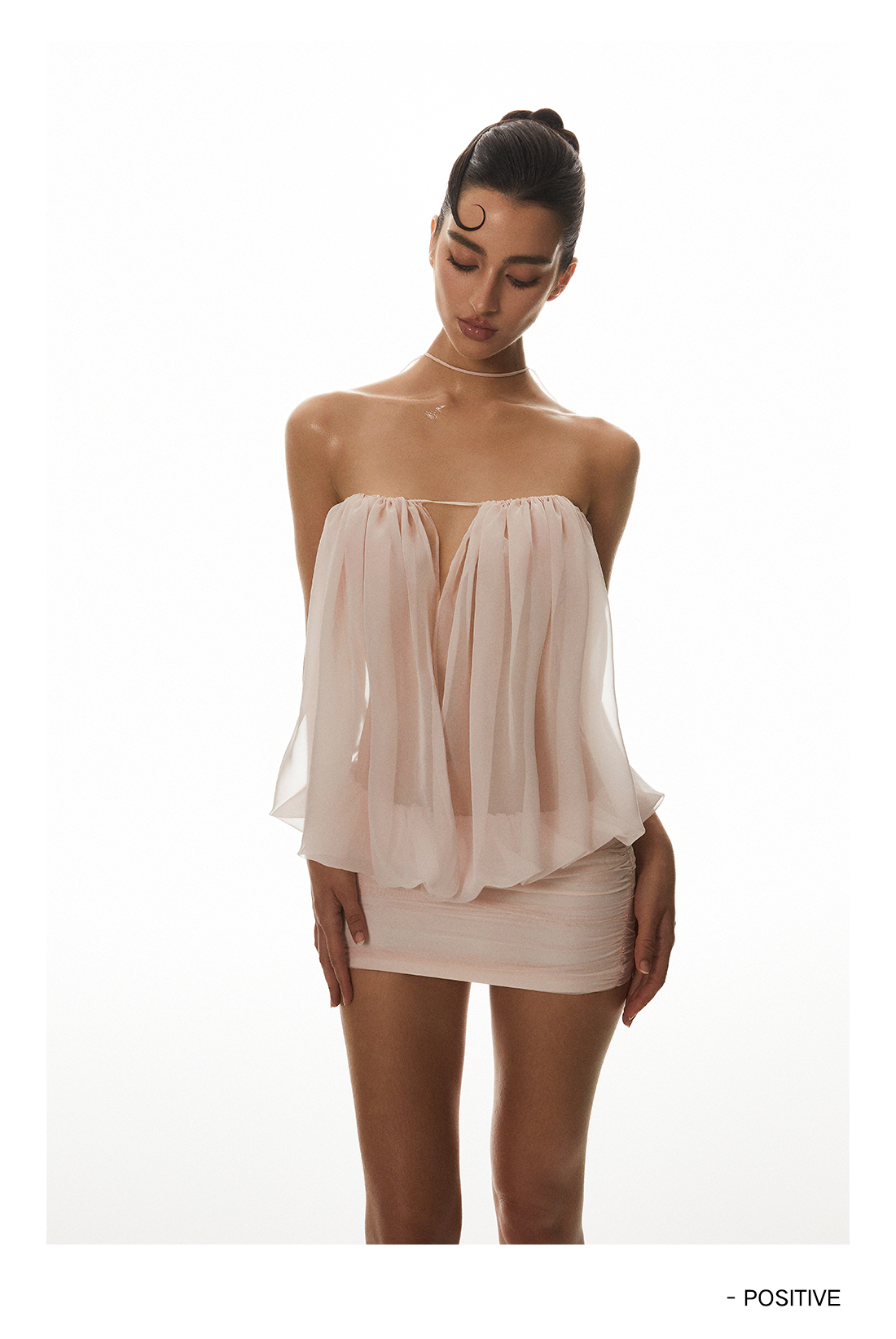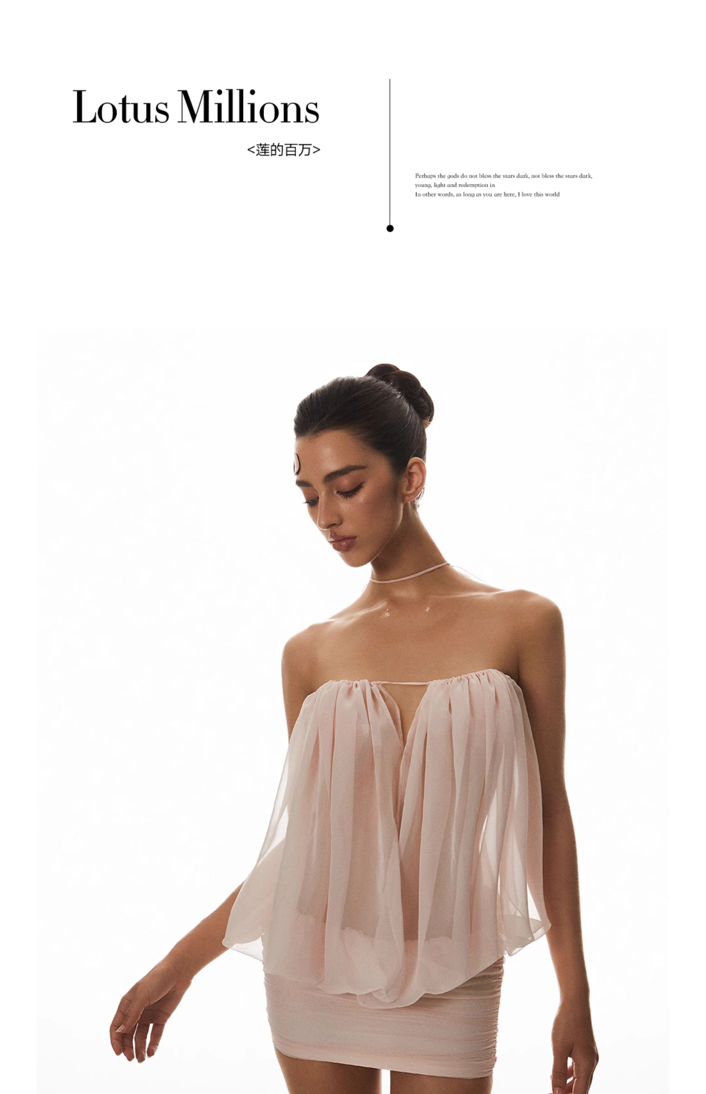 Lotus's Million Pure Desire Girl Sexy Sheer Nude Pink Halter Dress (Comes with Nude Invisible Bra)