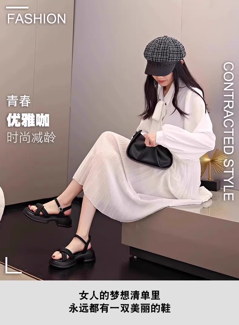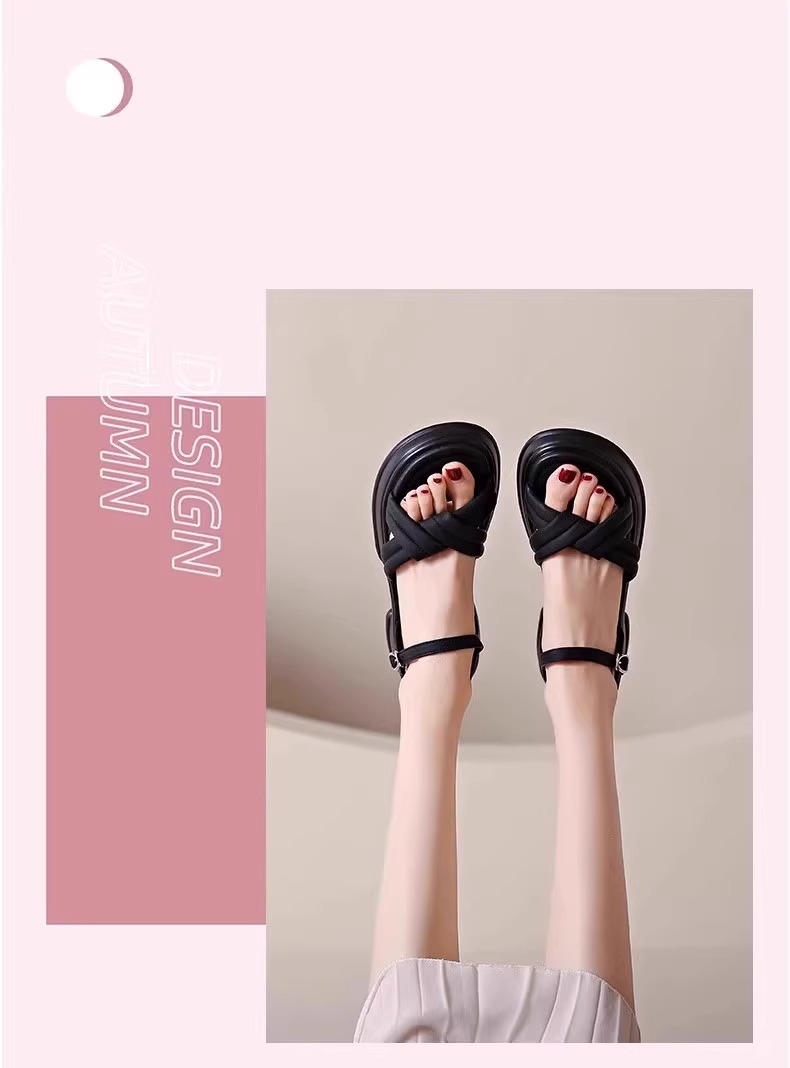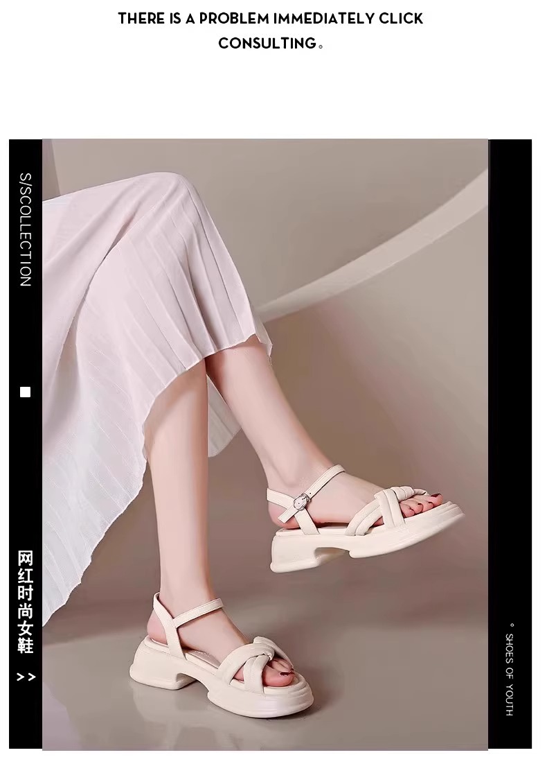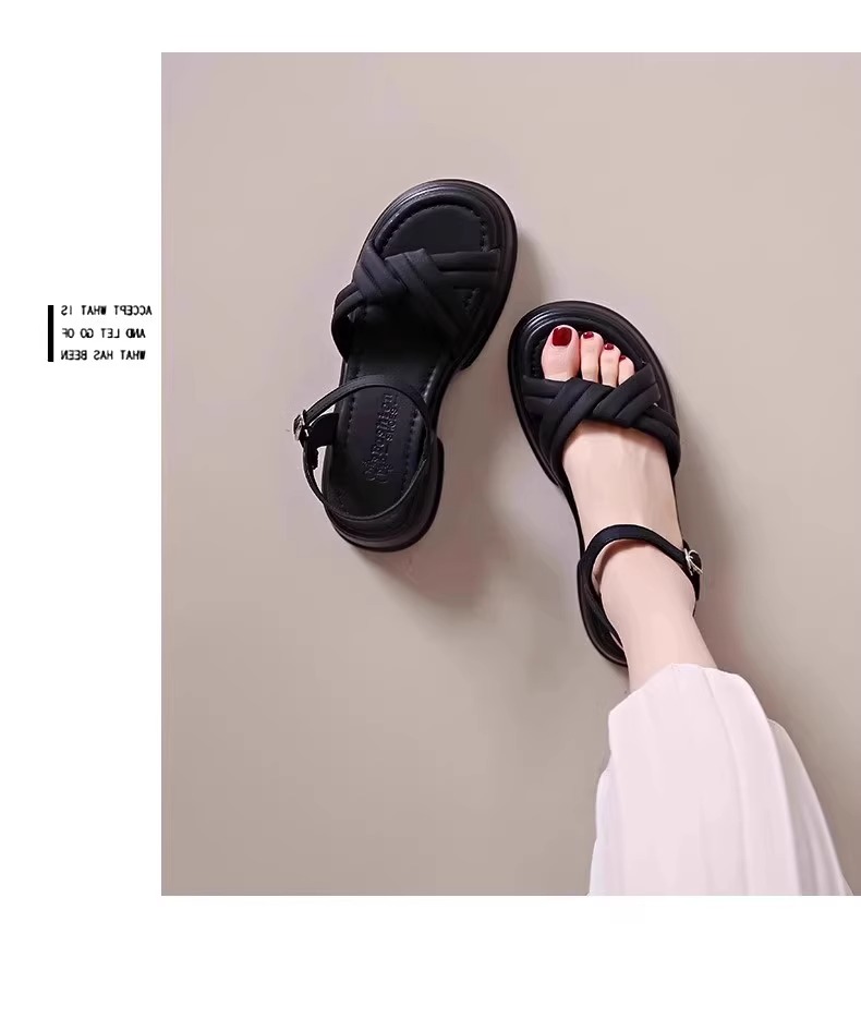 Brand Special Offer Thick-Soled French Sandals for Women, Summer Outerwear, 2025 New Style, soft sole Petite Size, Suitable for Wearing with Skirts