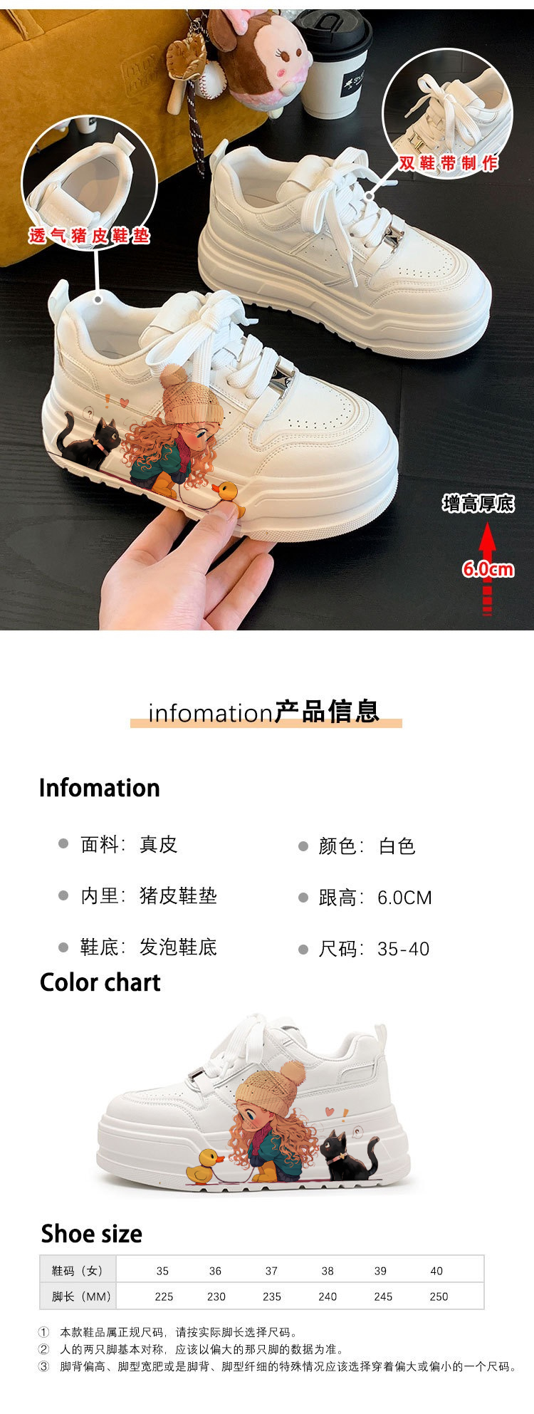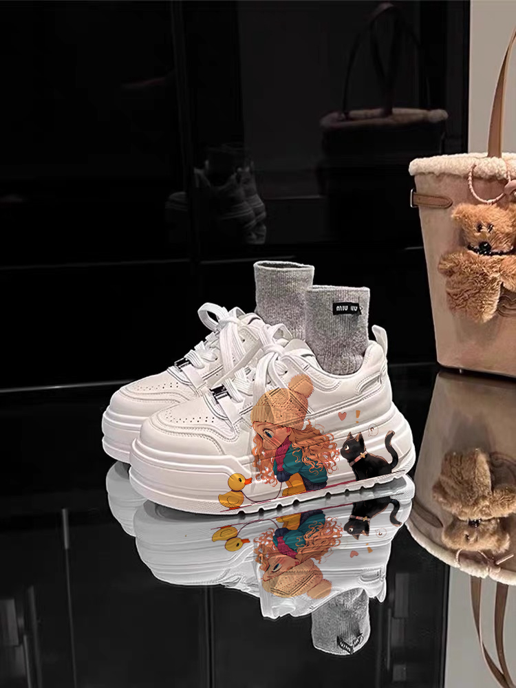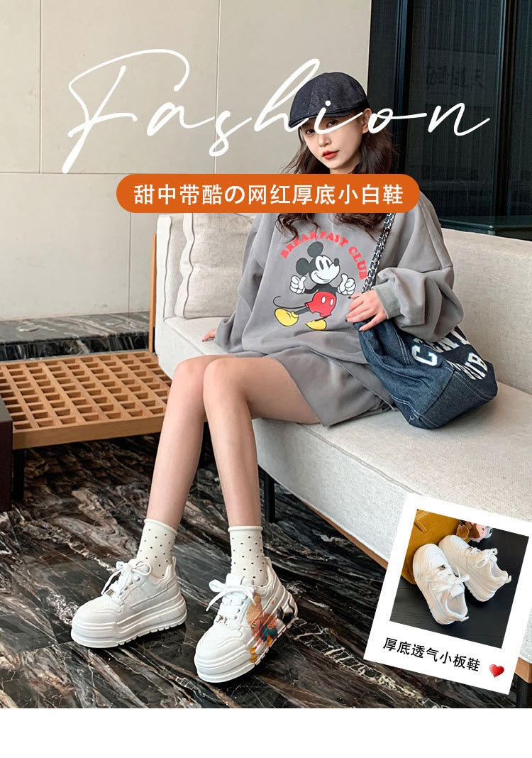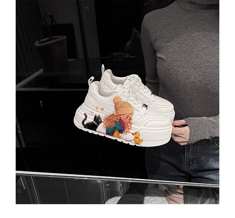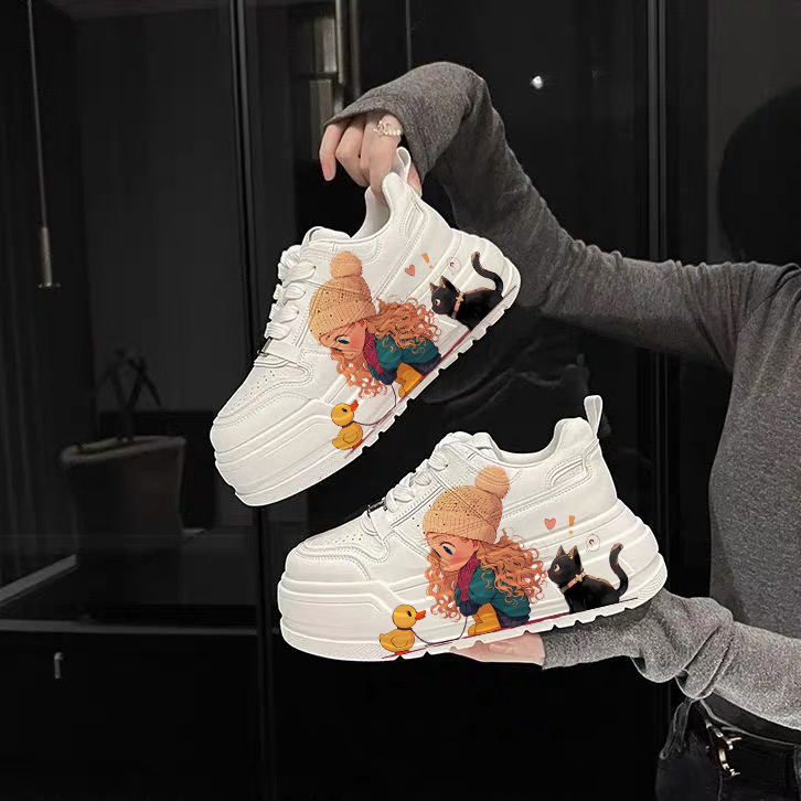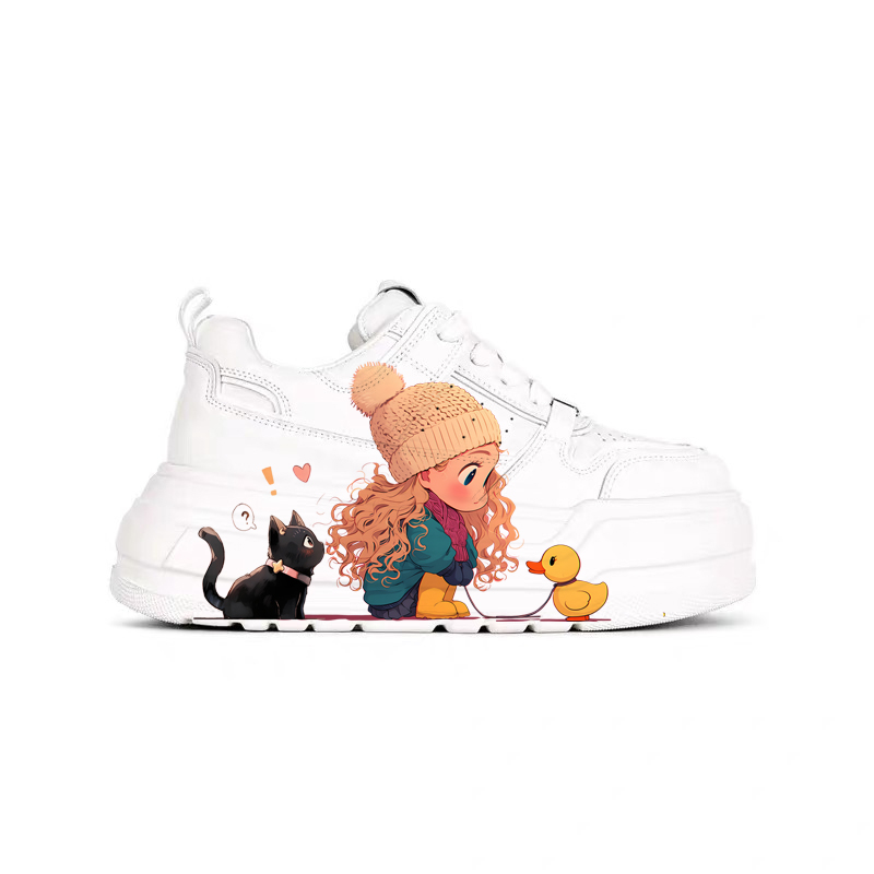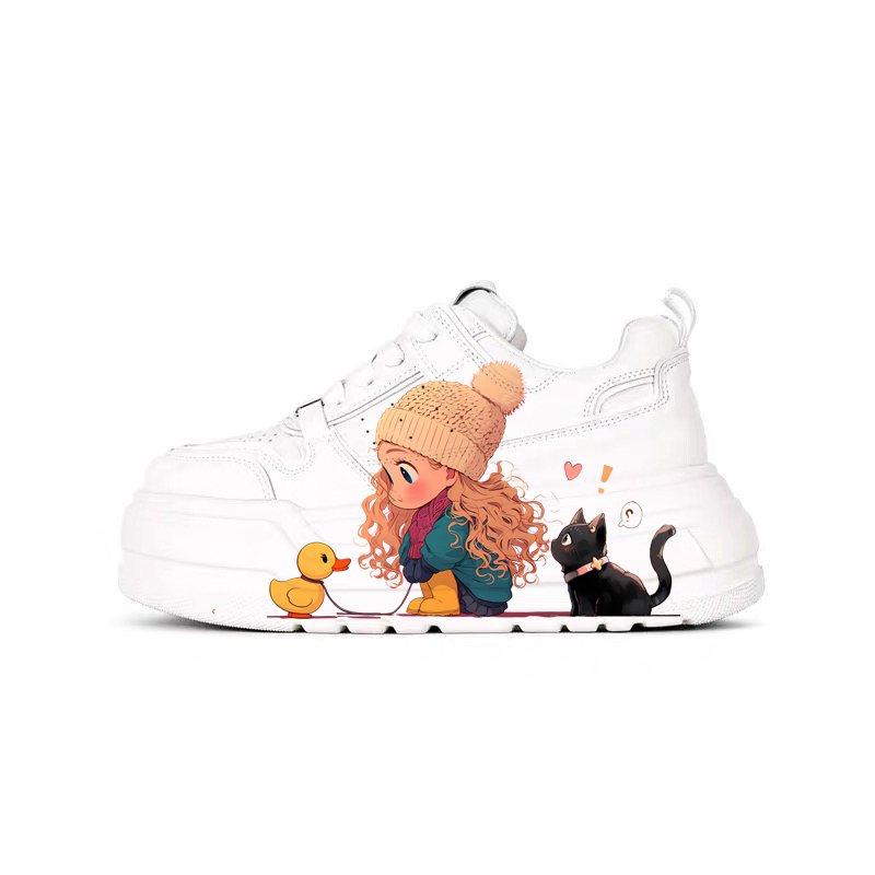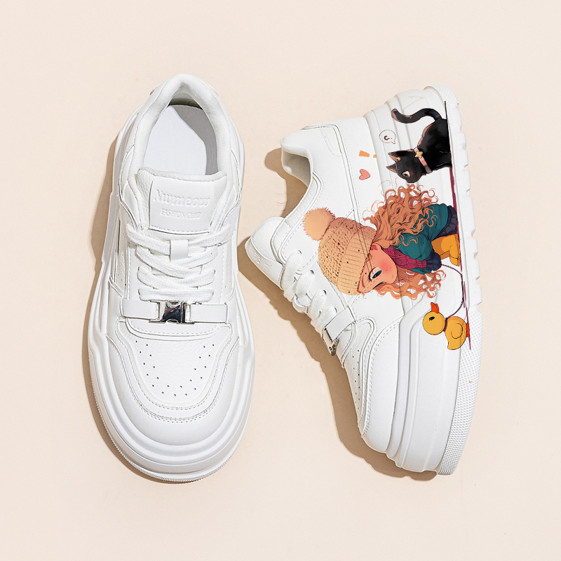 Genuine Leather Thick-Soled White Sneakers for Women, Little Yellow Duck Collaboration, New Versatile Height-Increasing Casual Sneakers for Petite Individuals