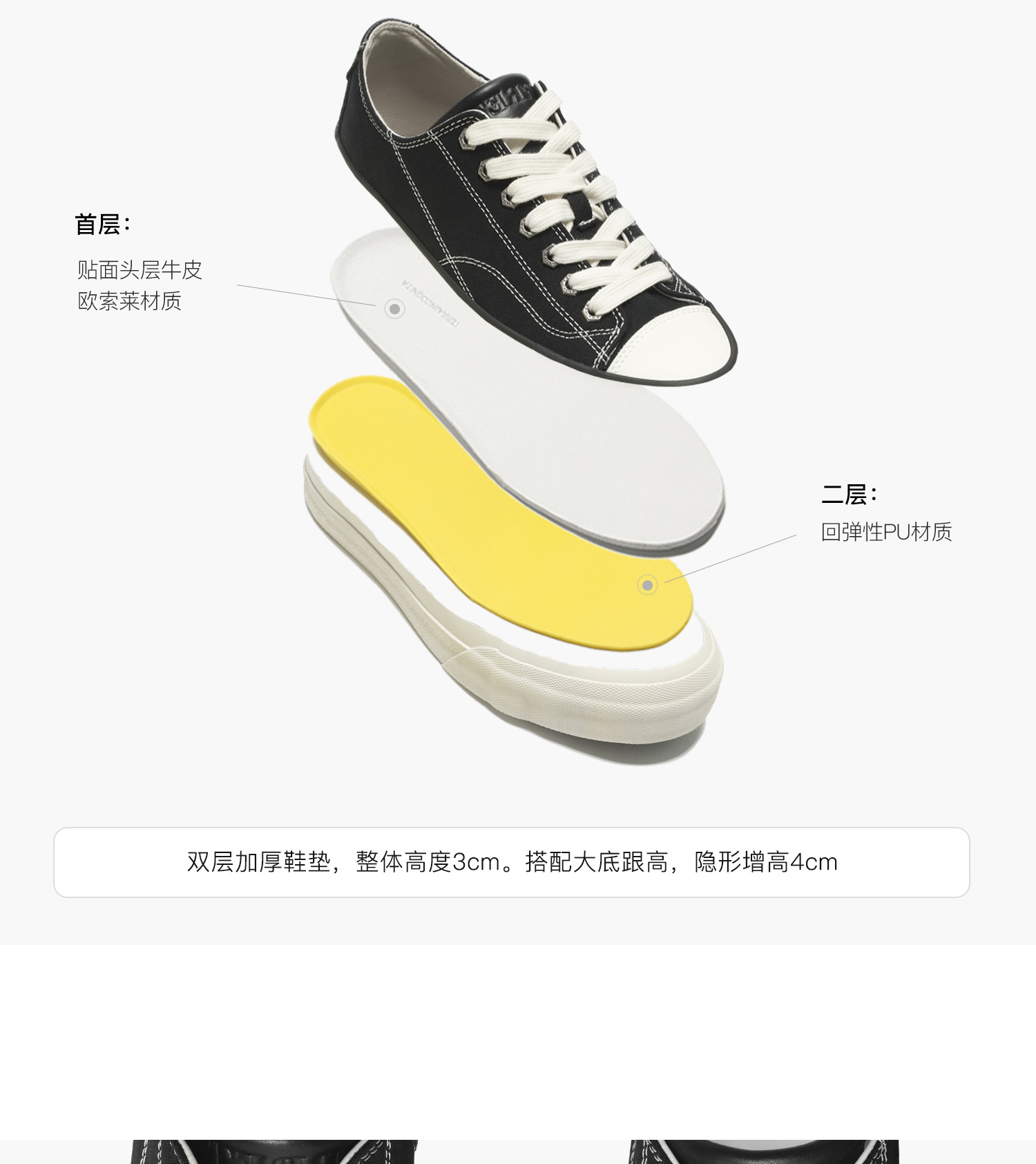 Purple Label Cowhide Spliced Vulcanized Low-Top Canvas Sneakers Casual Commuting Thick-Soled Height-Increasing Terraincognita