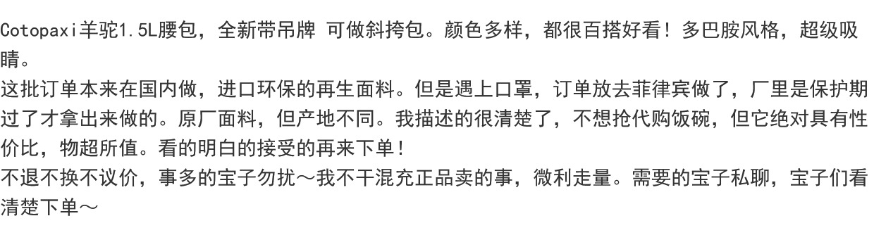 Dopamine Cotopaxi American Alpaca Bag Sports Waist Bag Crossbody Chest Bag 1.5L Suitable for Children